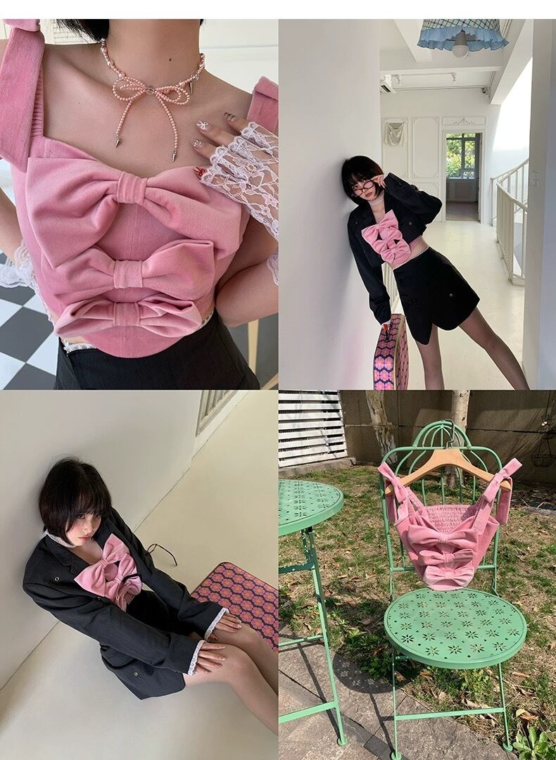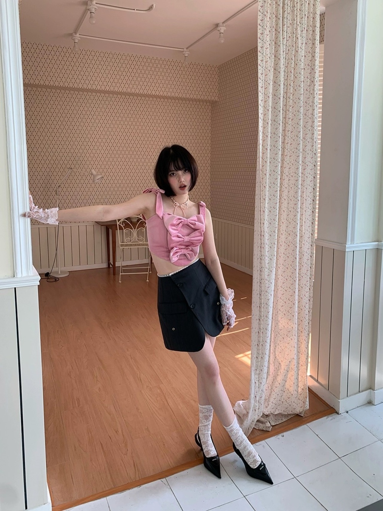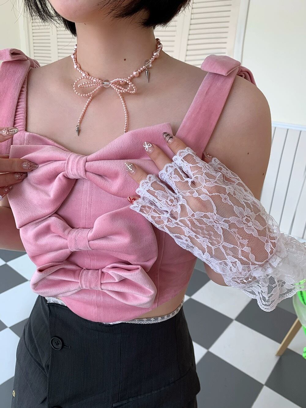 トップス ピンク リボン キャミソール 可愛い ブラウス トップス