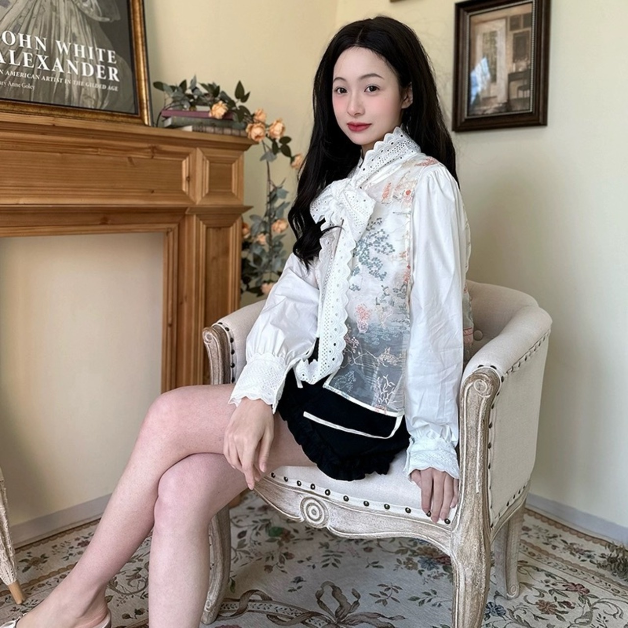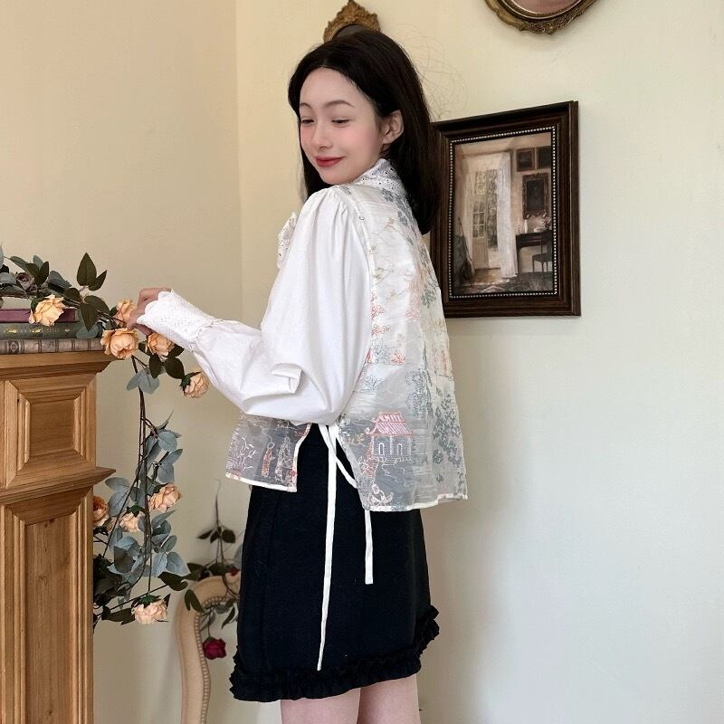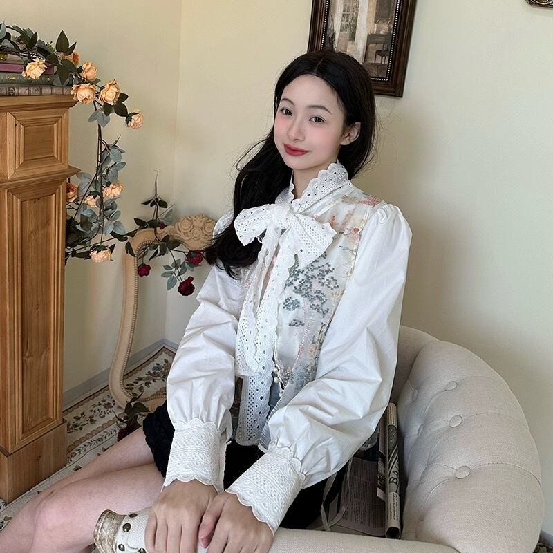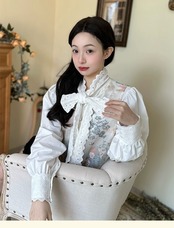 ブラウス 白 ホワイト リボン ガーリー 可愛い シンプル