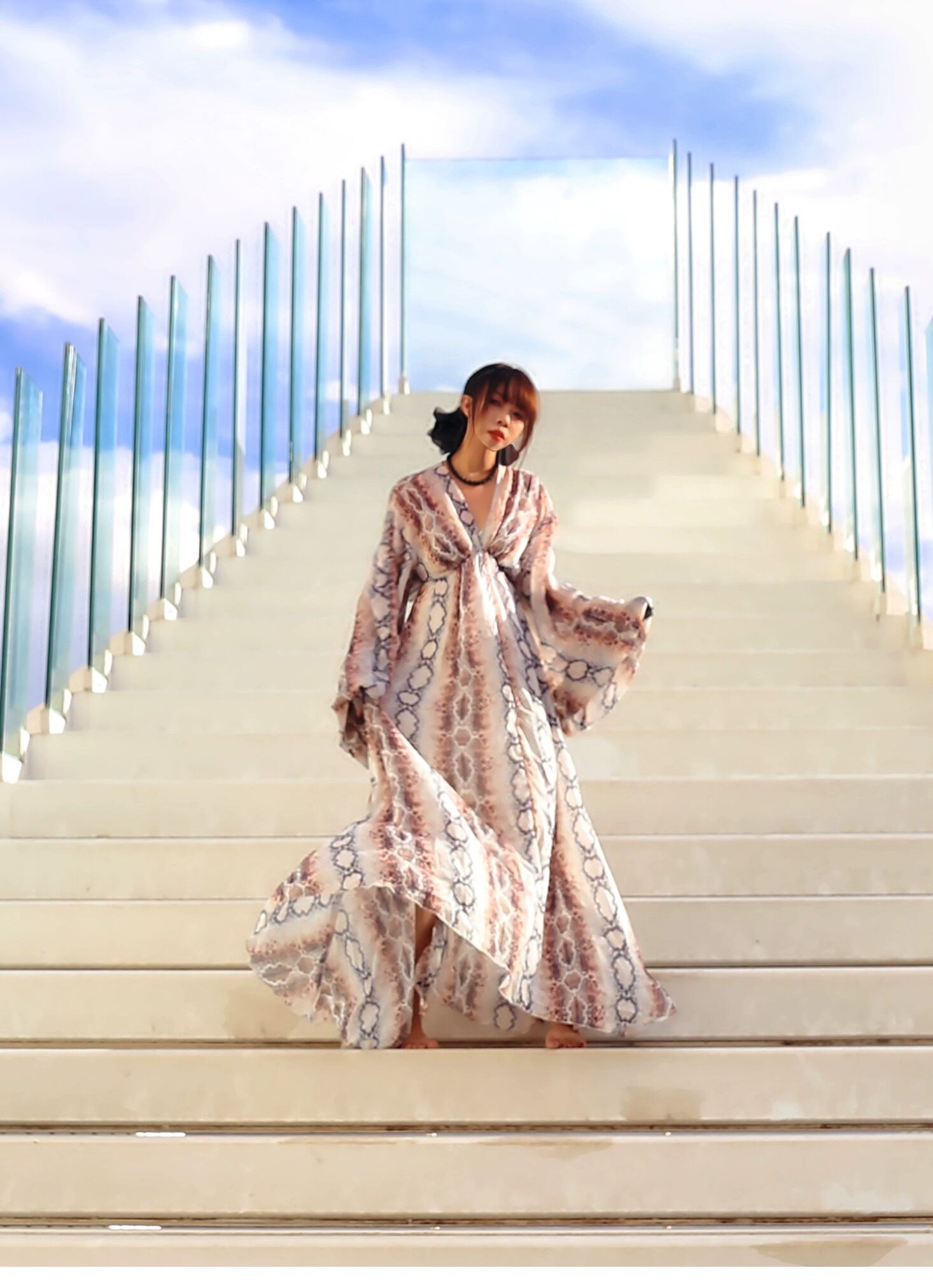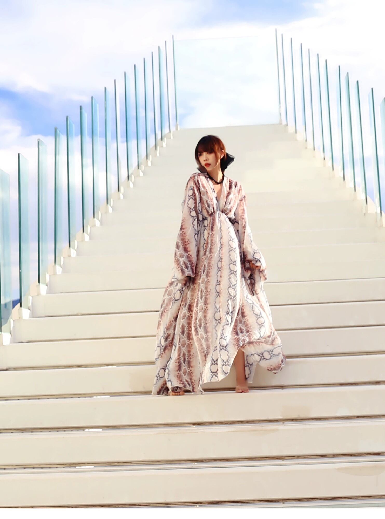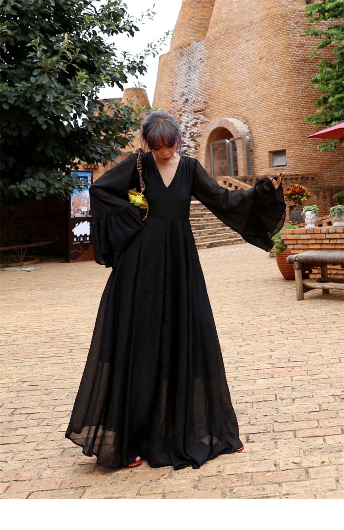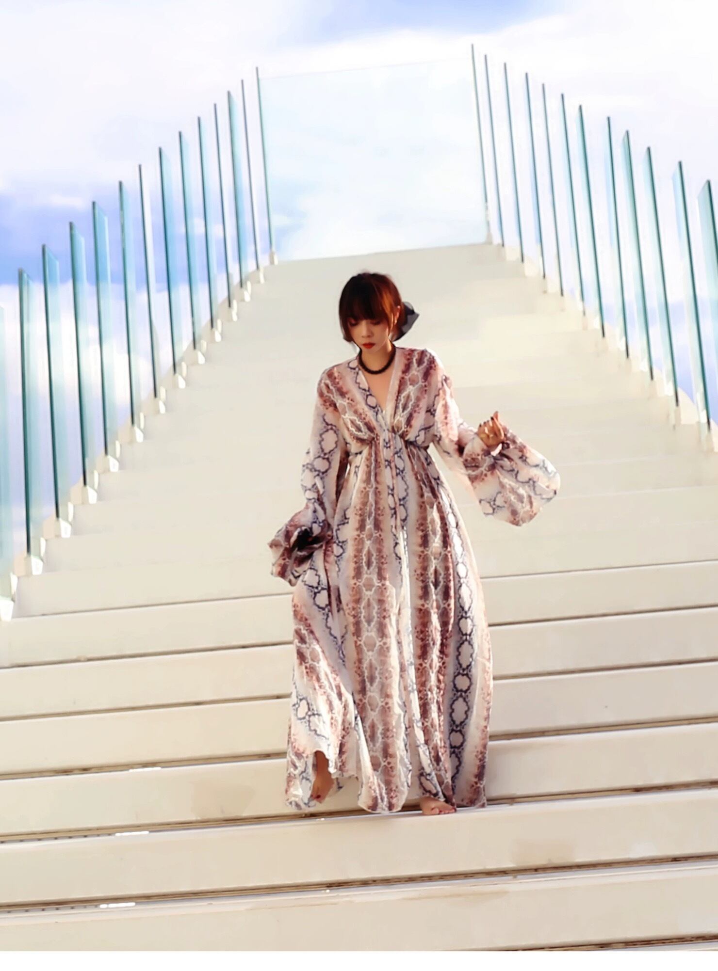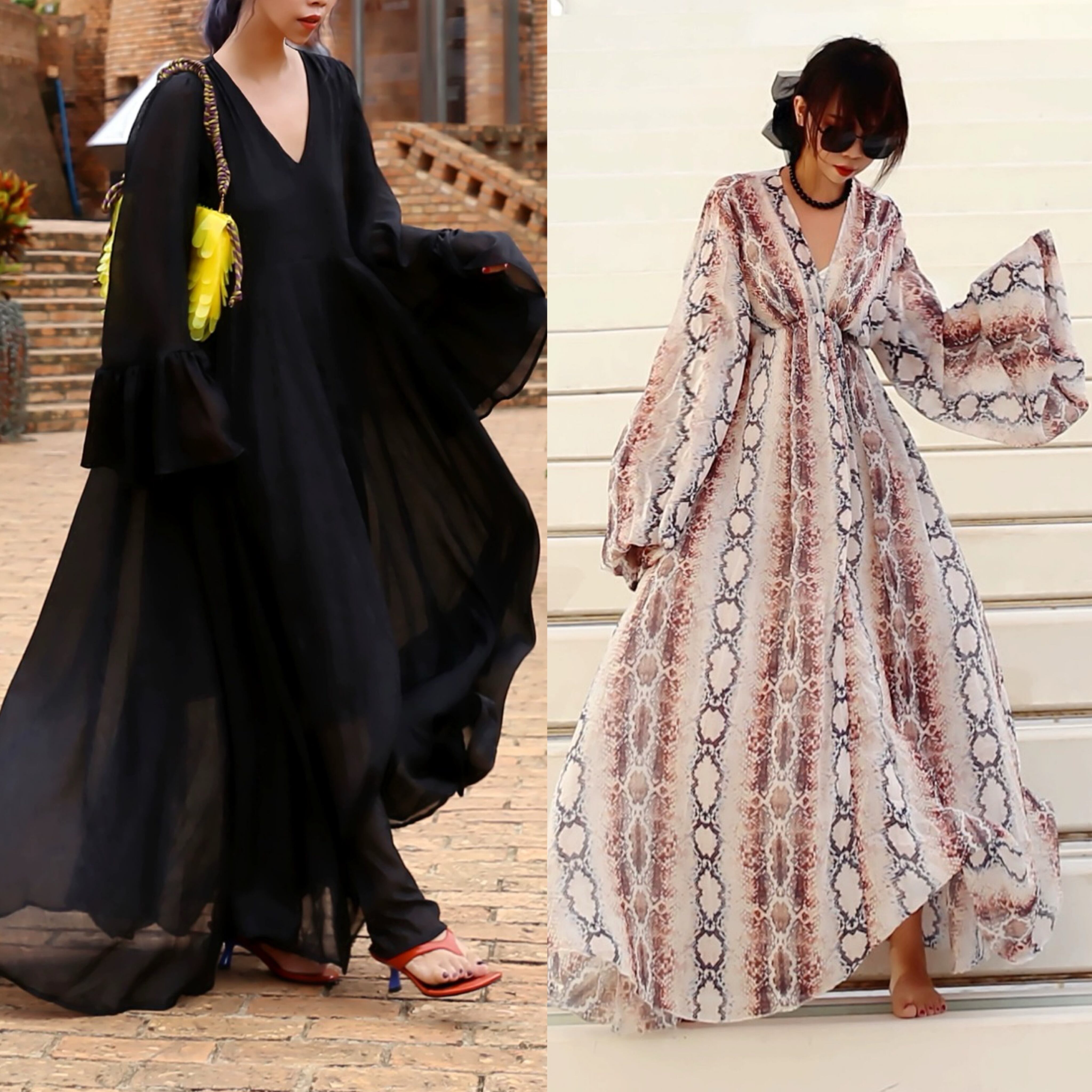 黒 パイソン アニマル ワンピース ゆったり マキシ ロング カジュアル ブラウス