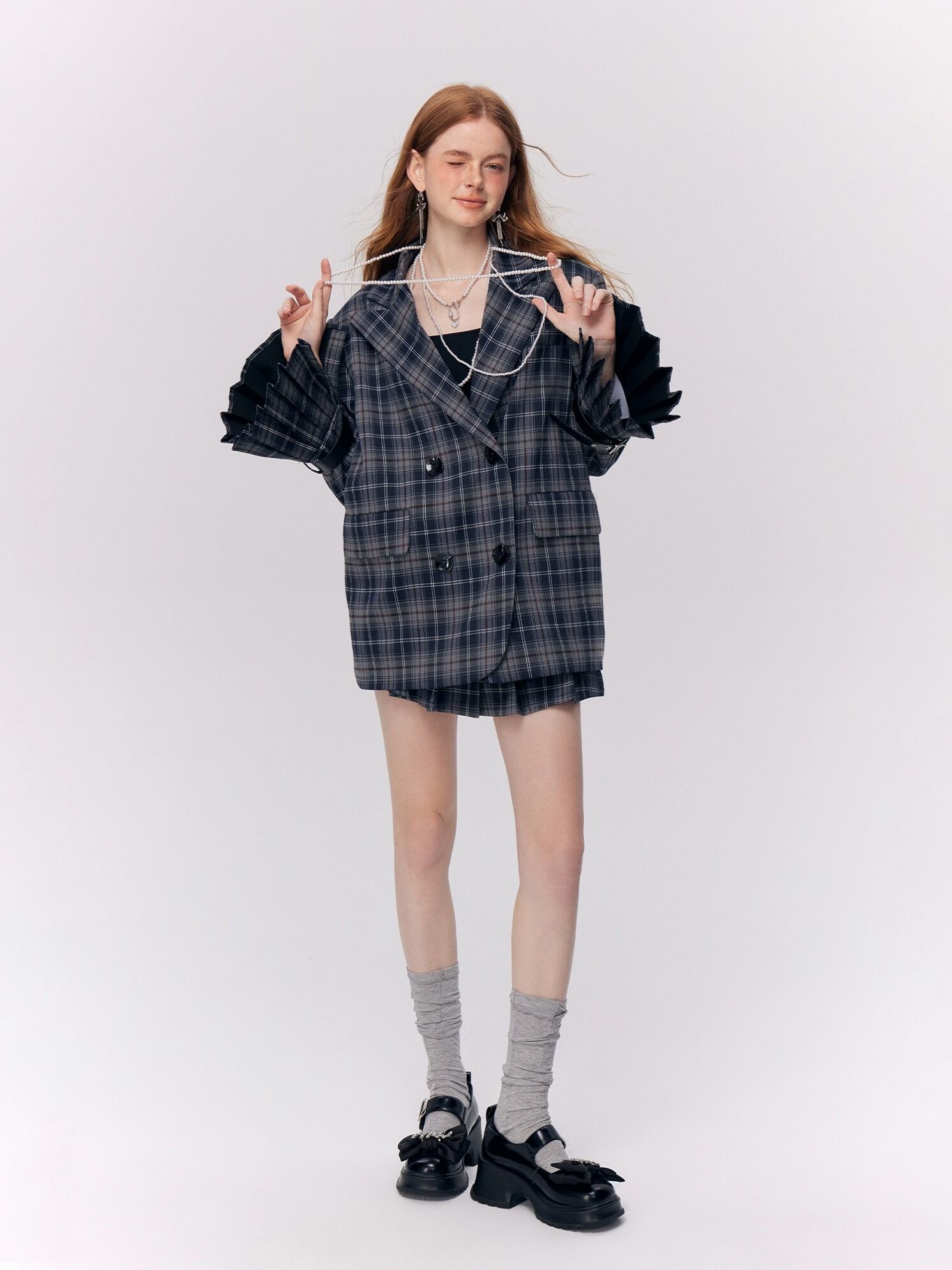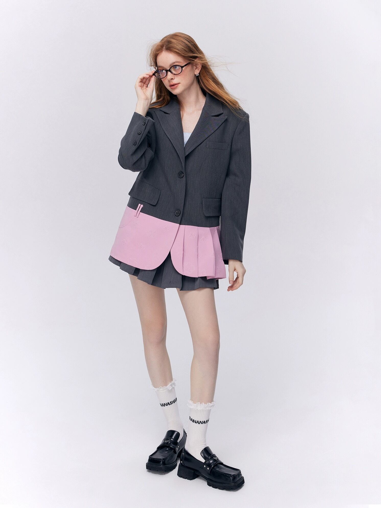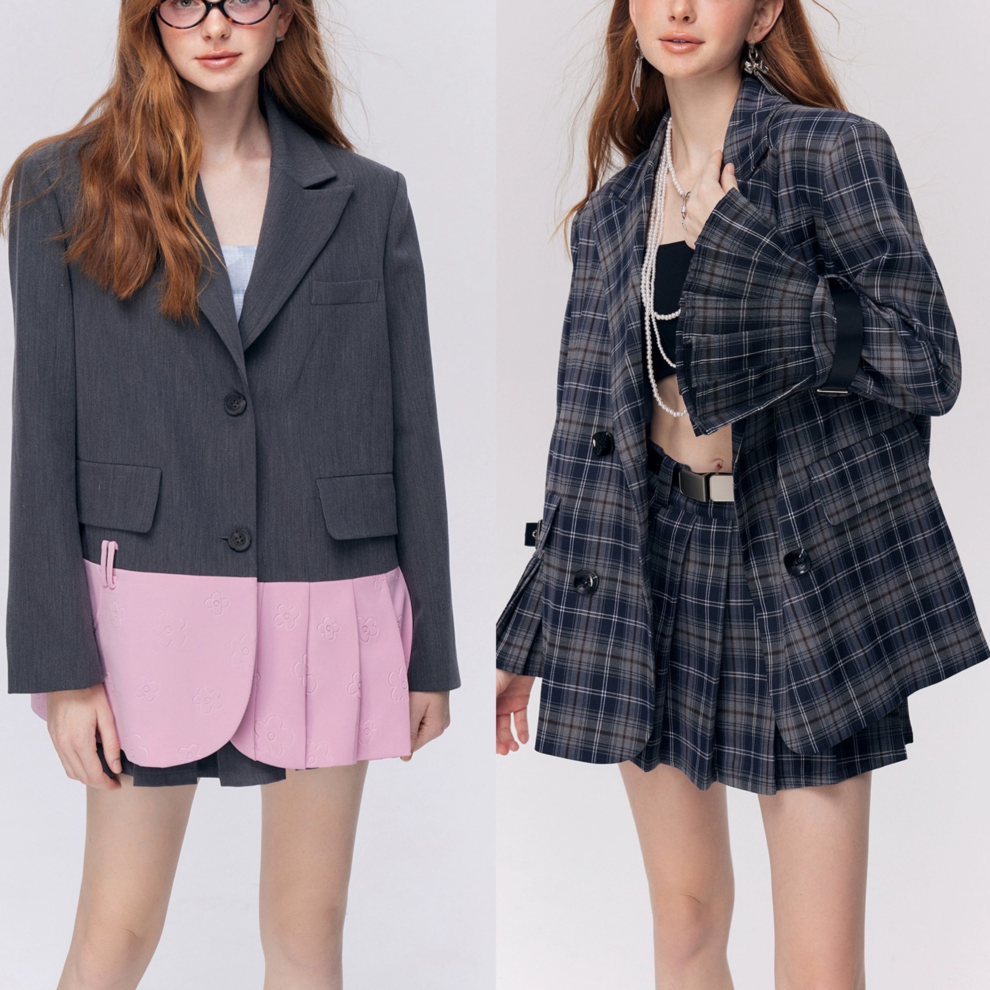 グレー ピンク チェック アウター ジャケット トップス ガーリー