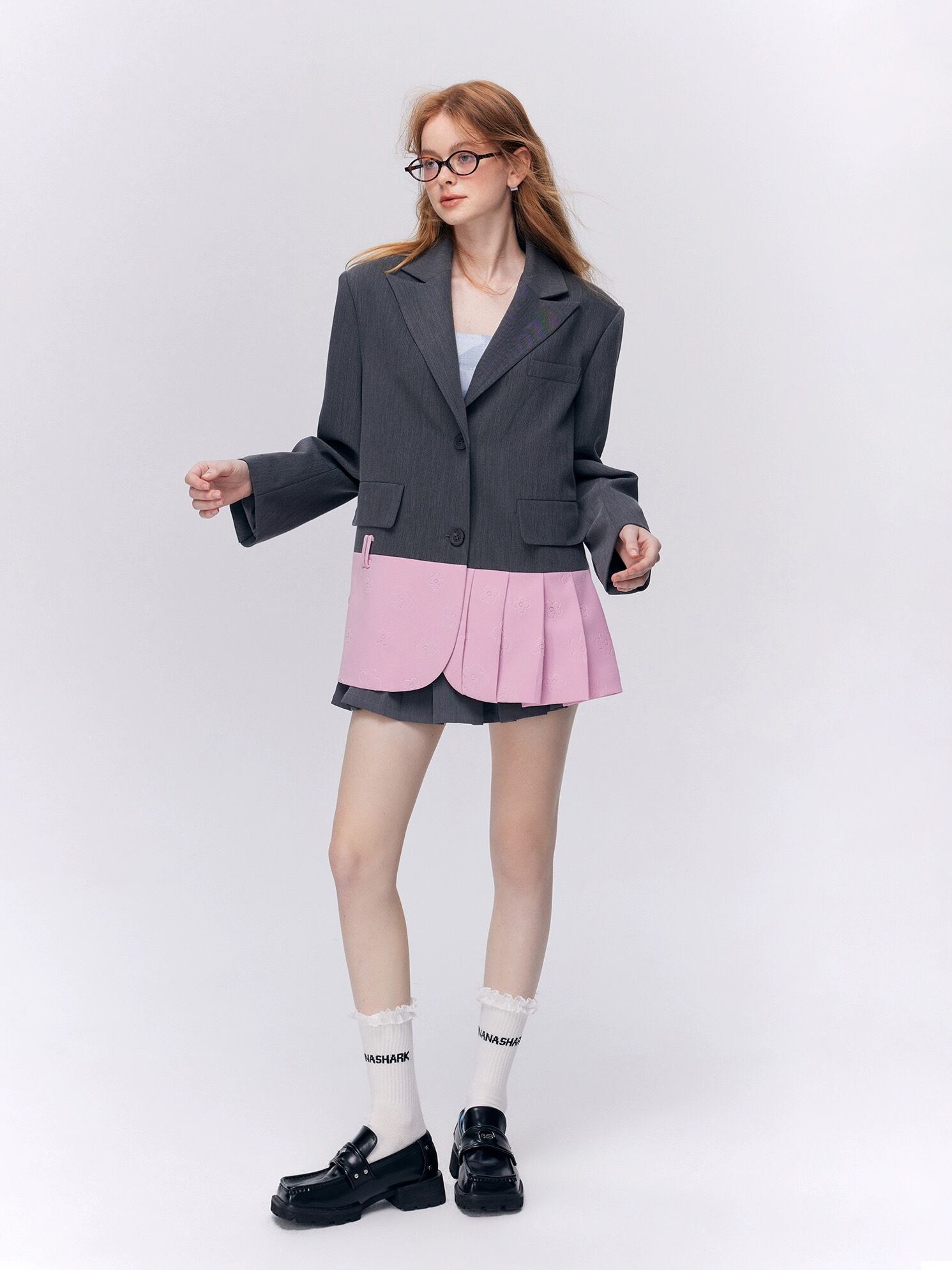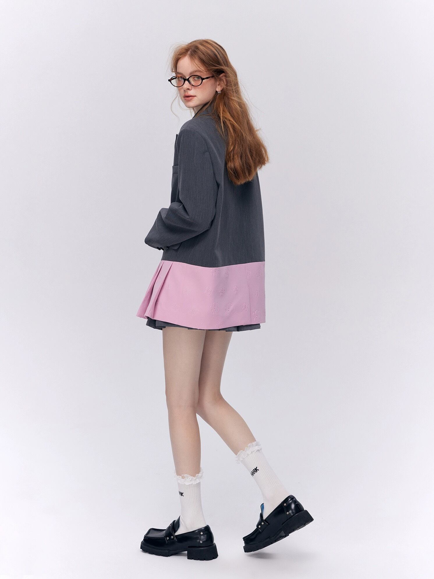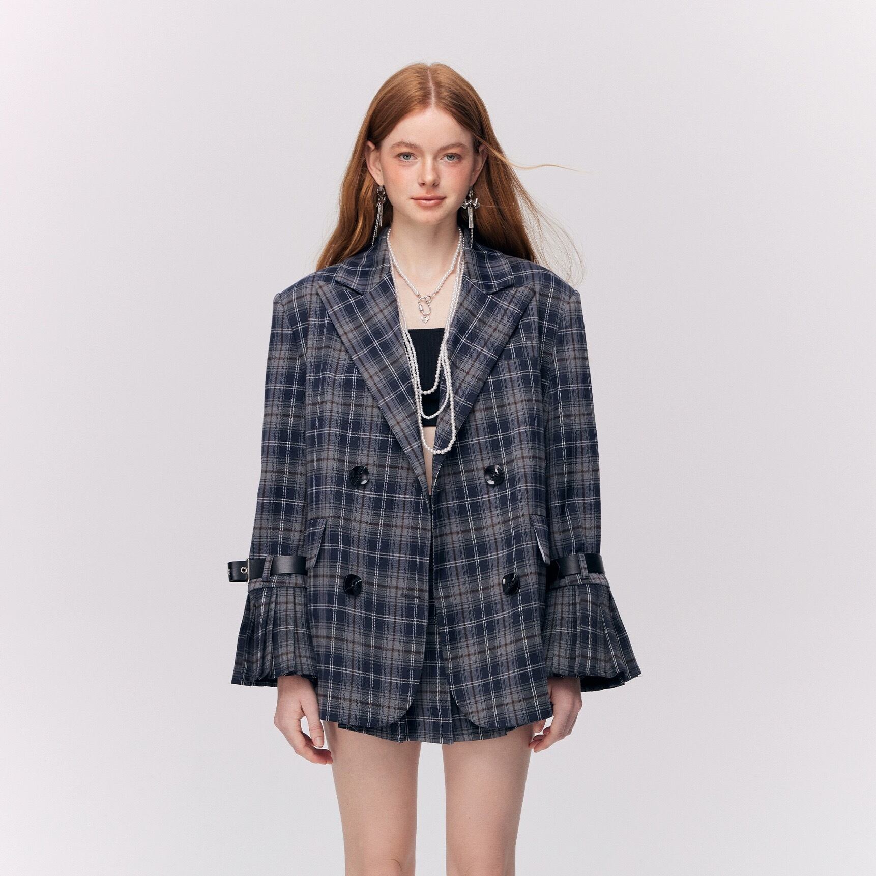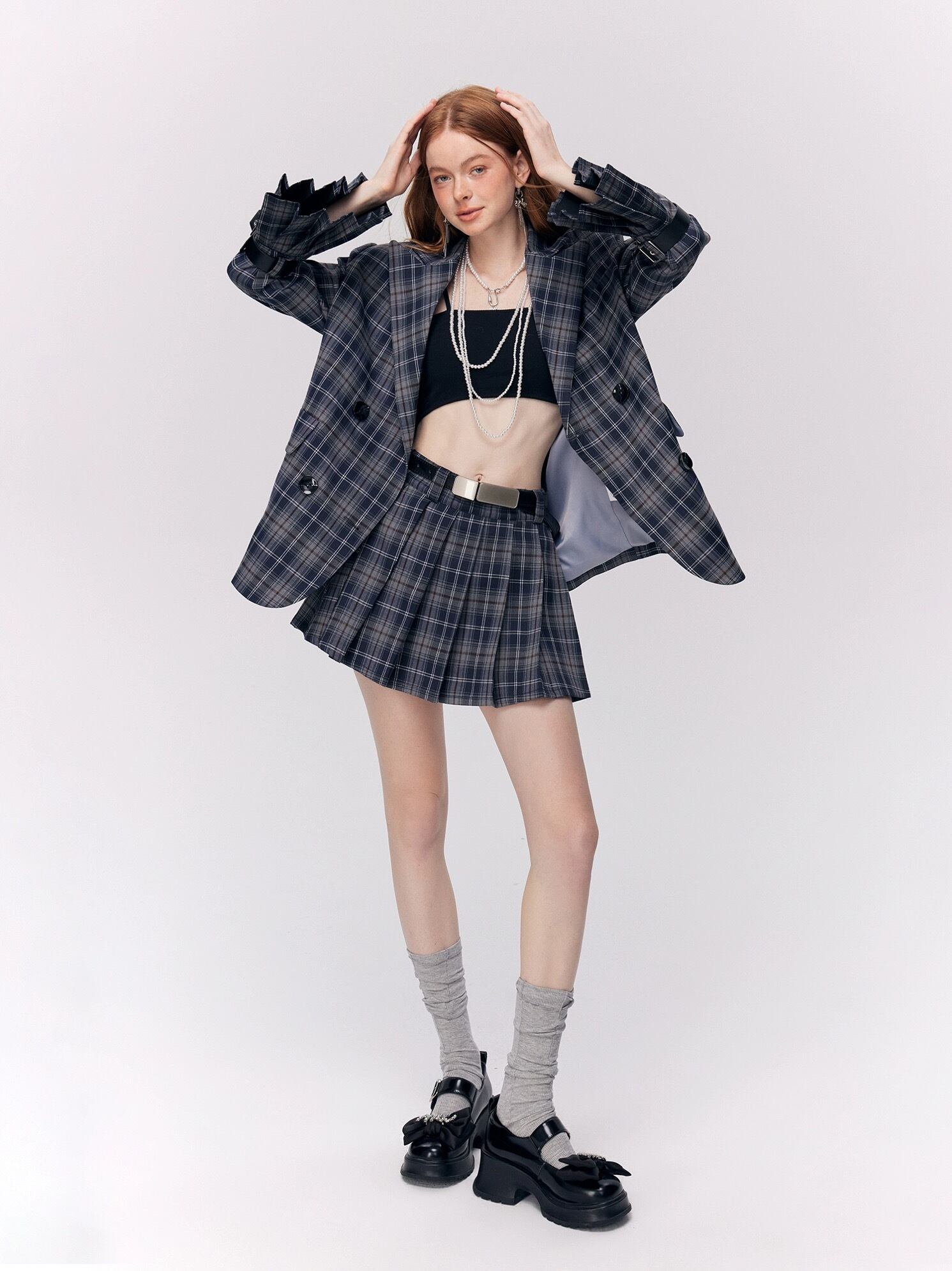 グレー ピンク チェック アウター ジャケット トップス ガーリー