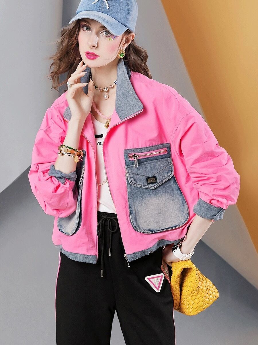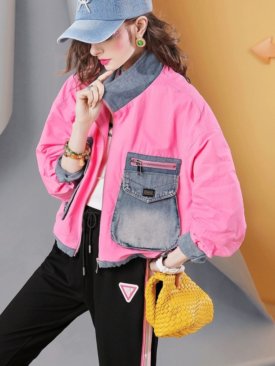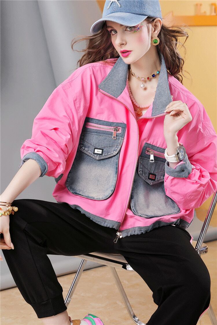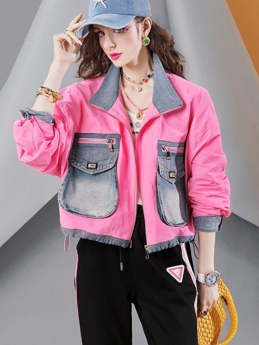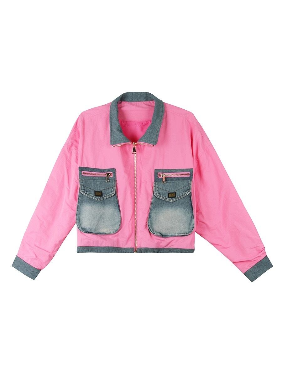 カジュアル ピンク ジャケット カーディガン デニム アウター ジャンパー スウェット
