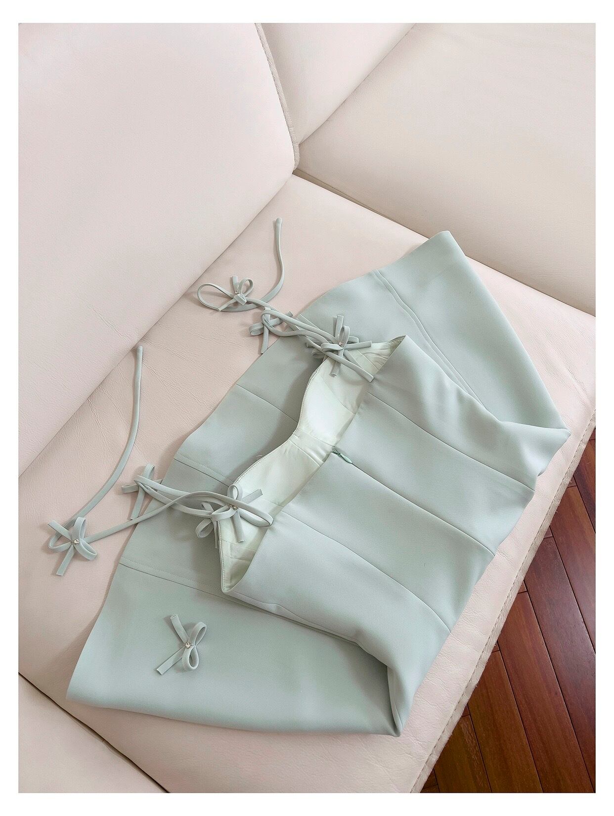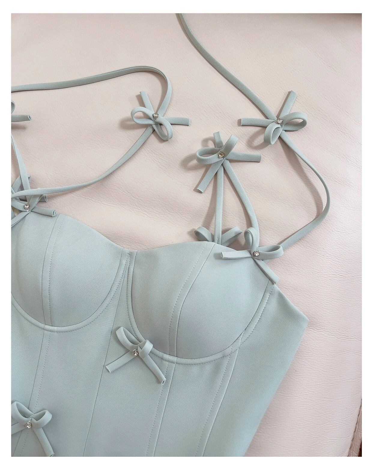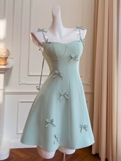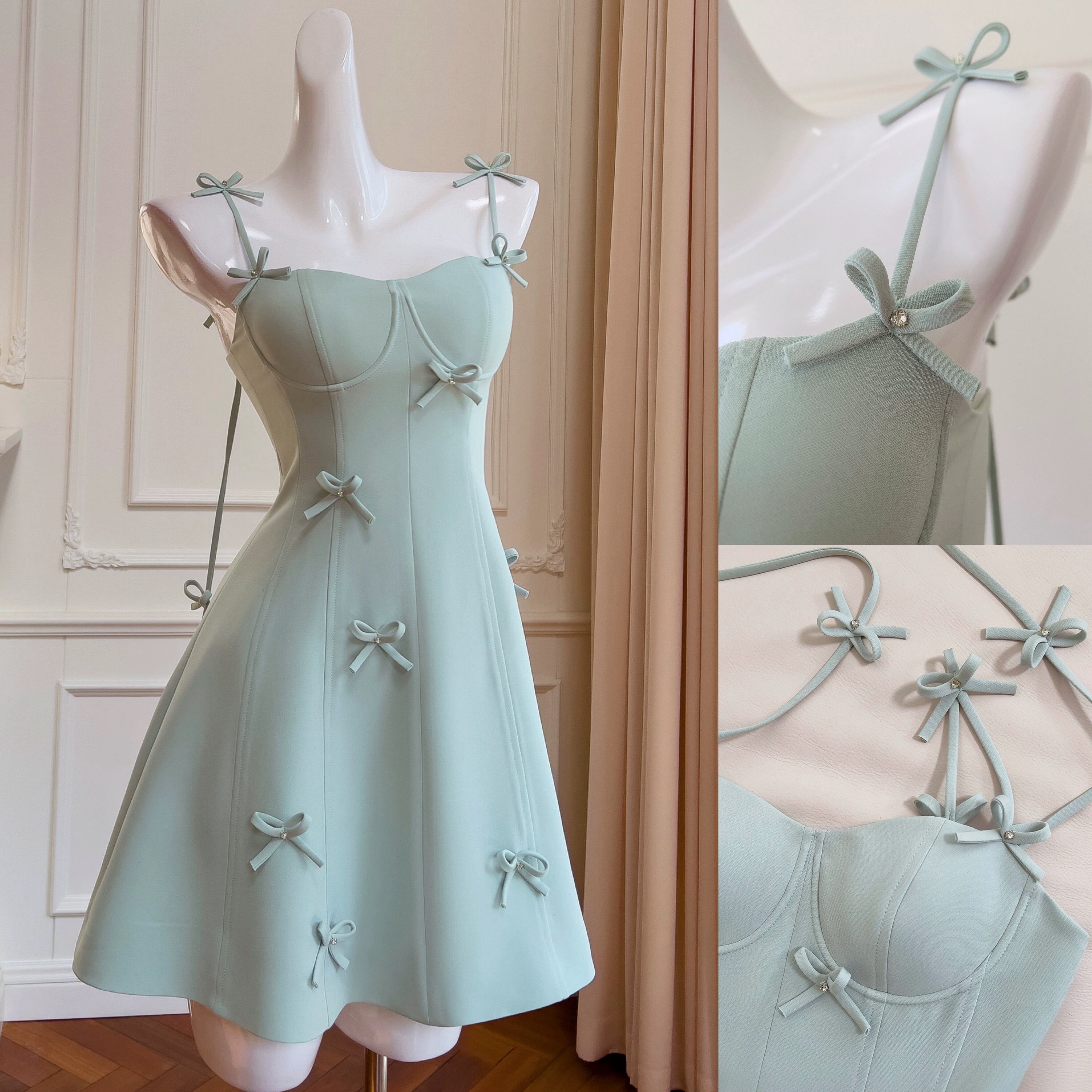 水色 リボン オフショルダー リボン 黒 白 ワンピース ドレス ガーリー シンプル