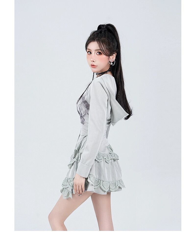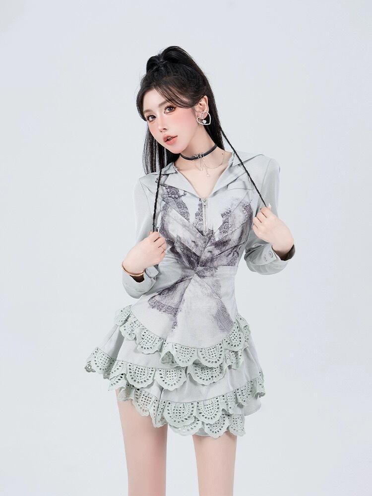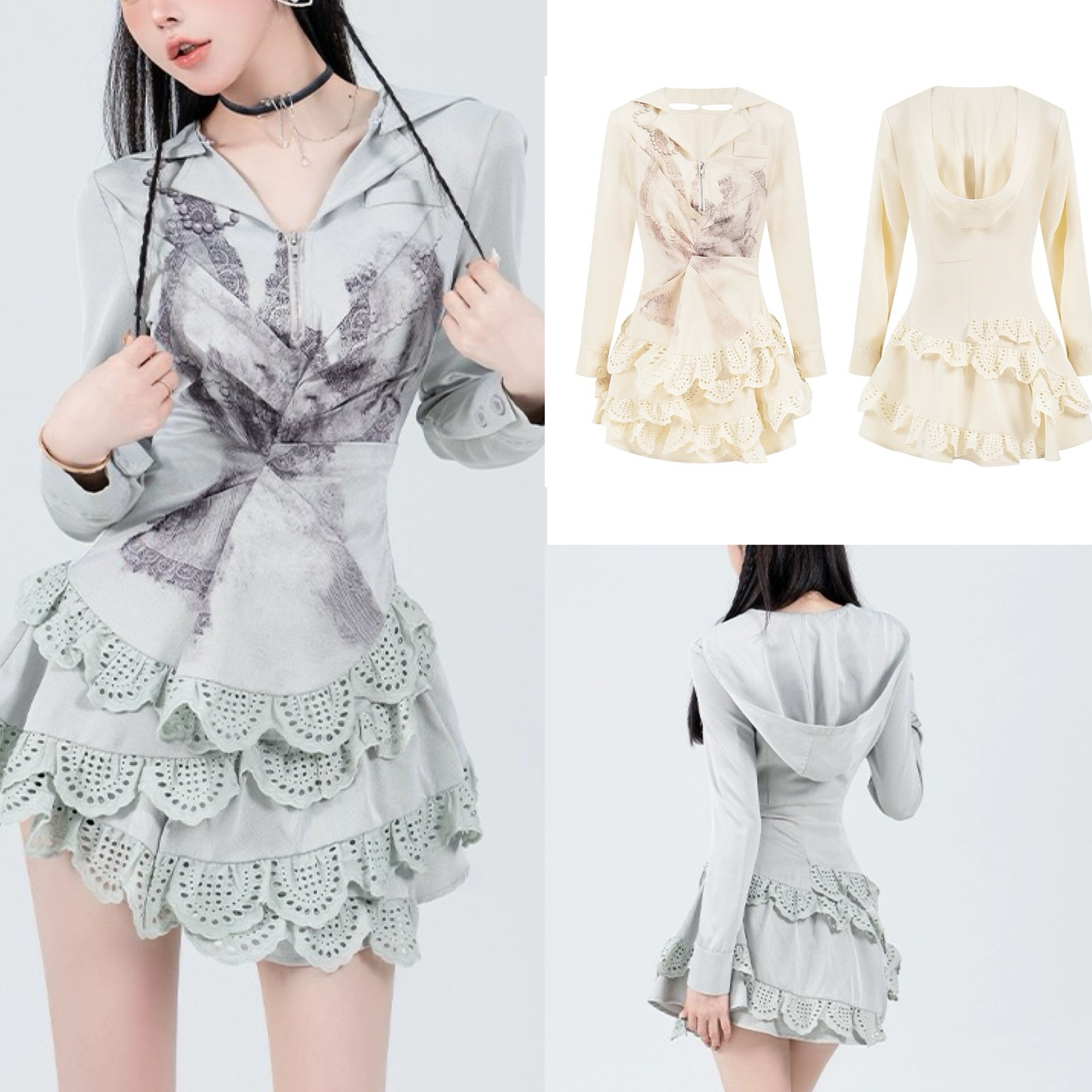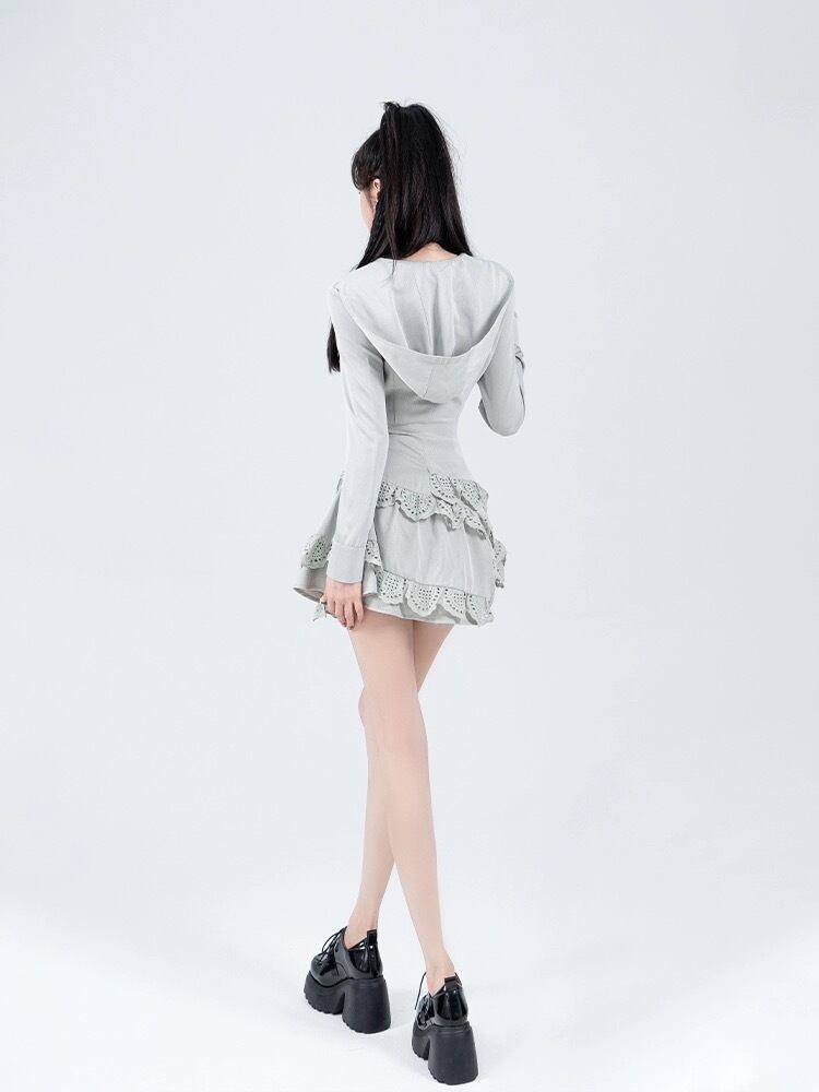 白 水色 グレー ワンピース パーカー カジュアル スカート