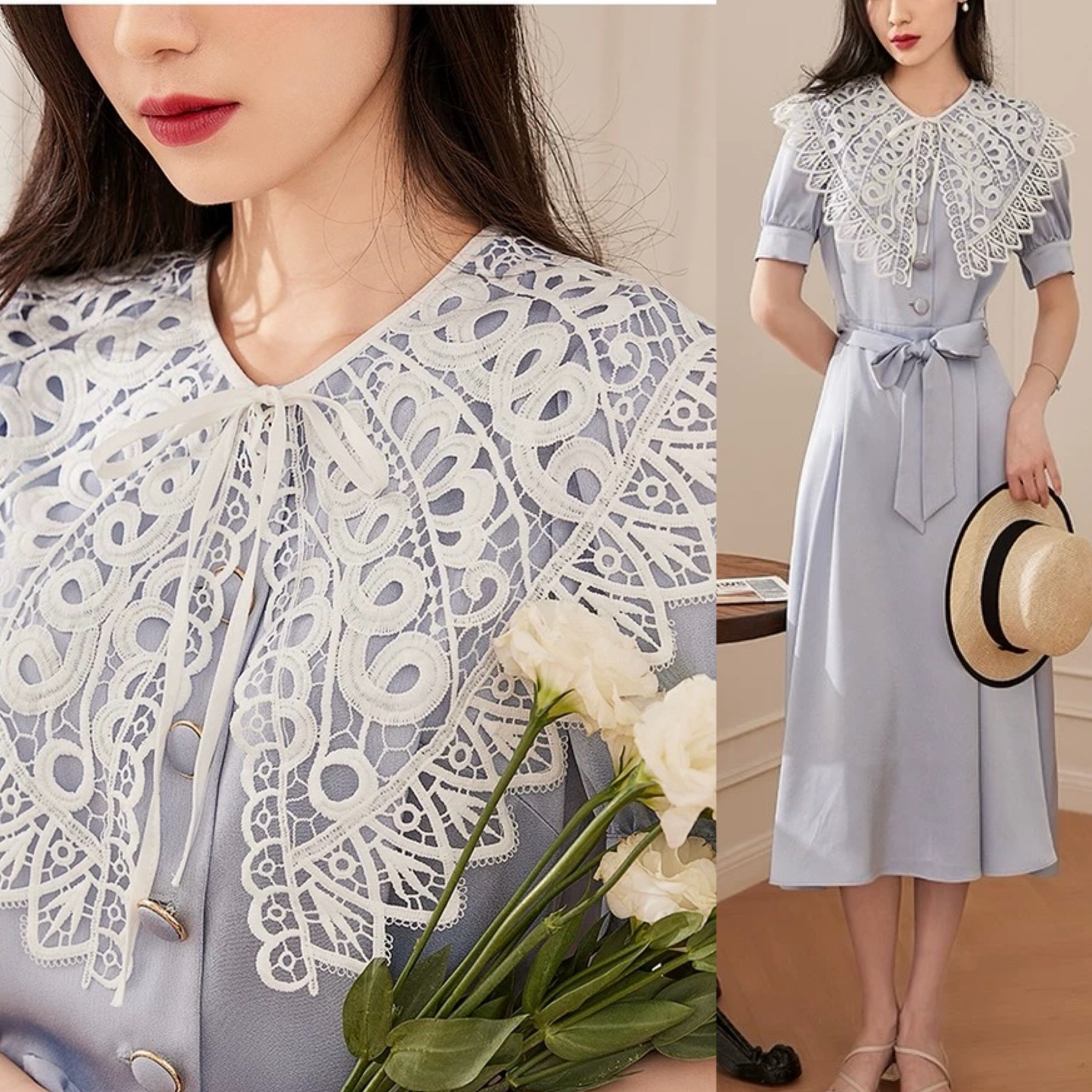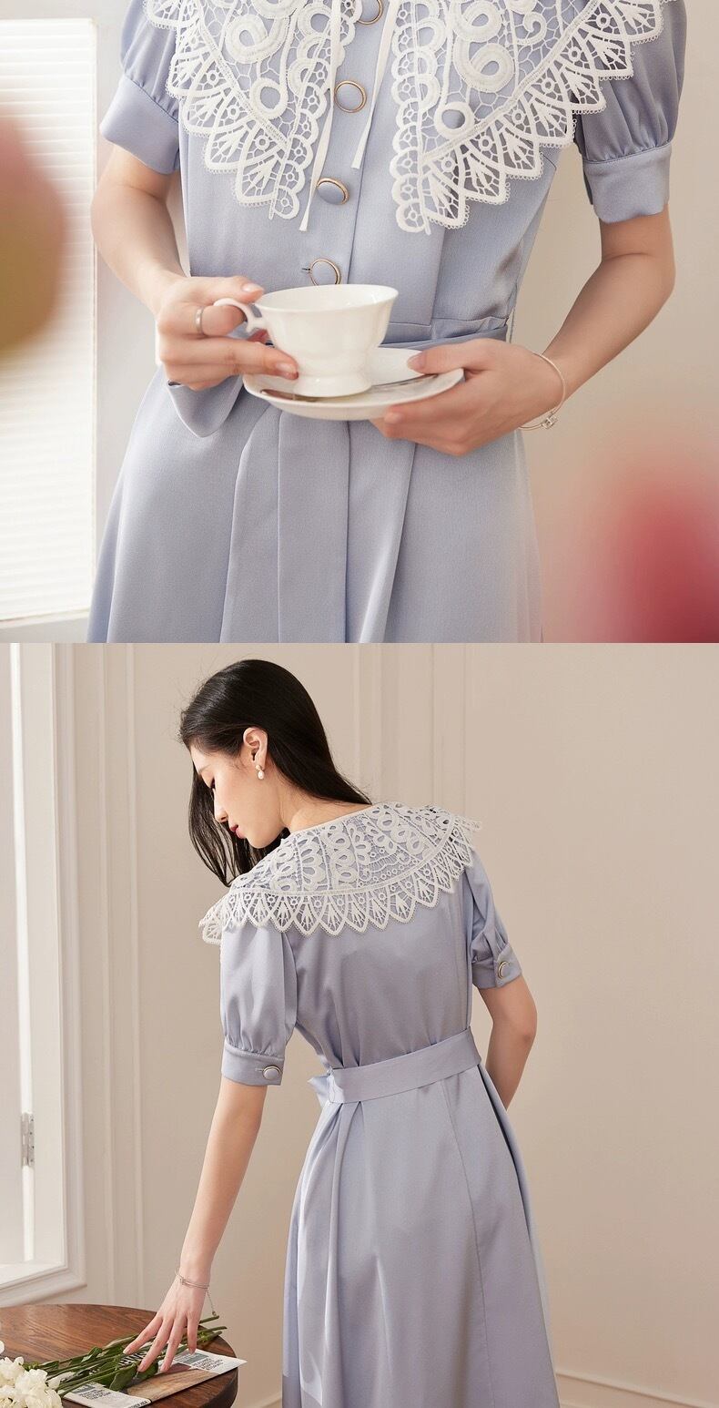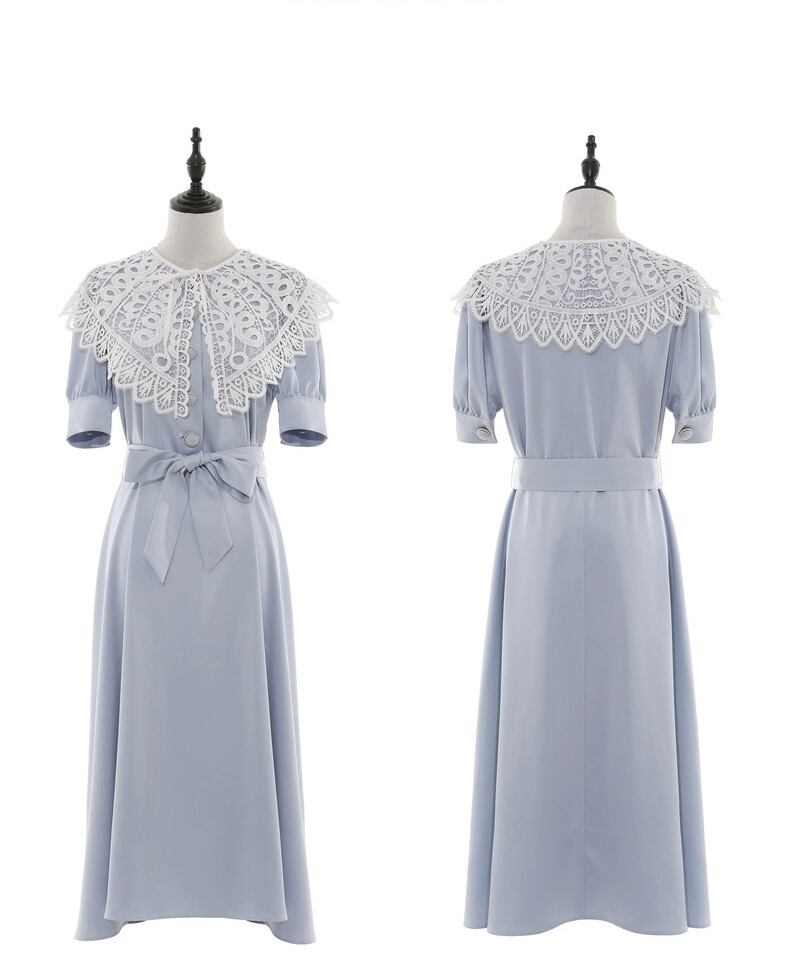 水色 ブラウス 襟 ワンピース エレガント ドレス スカート 爽やか