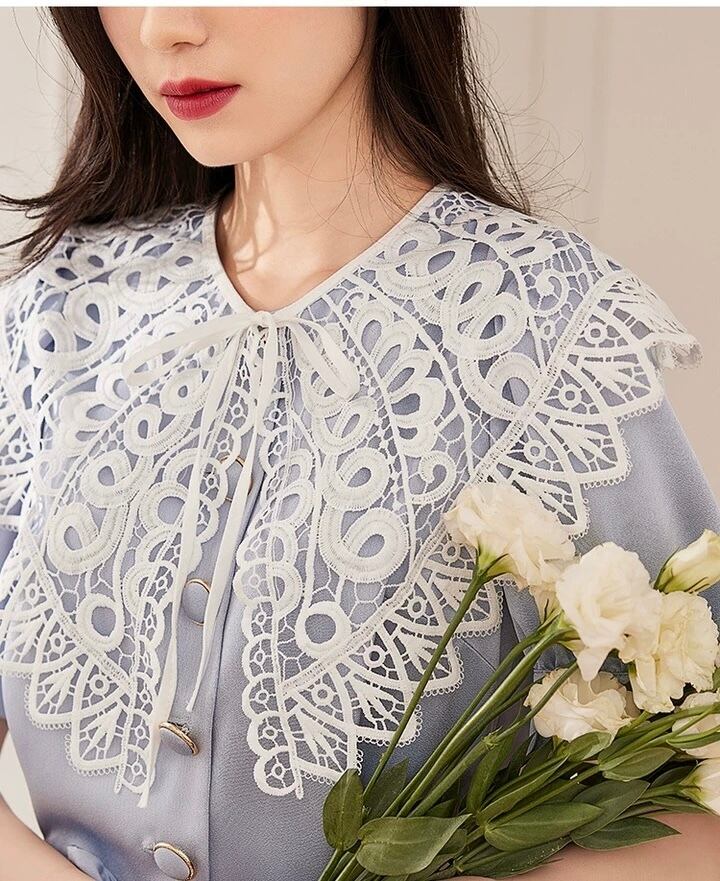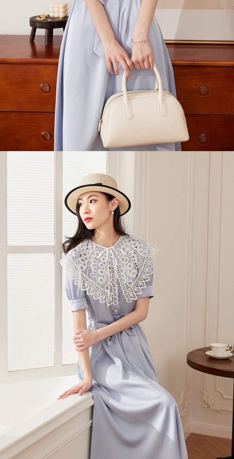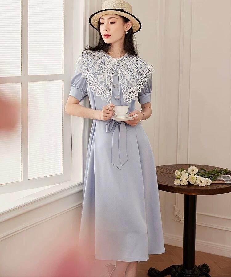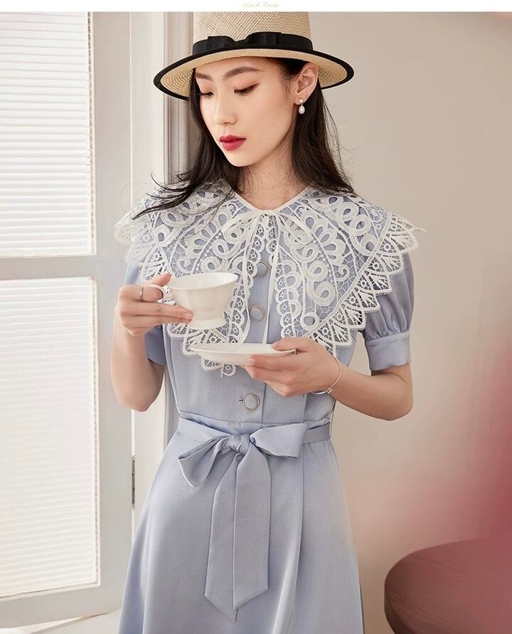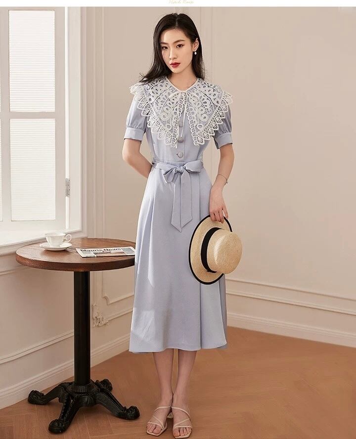 水色 ブラウス 襟 ワンピース エレガント ドレス スカート 爽やか