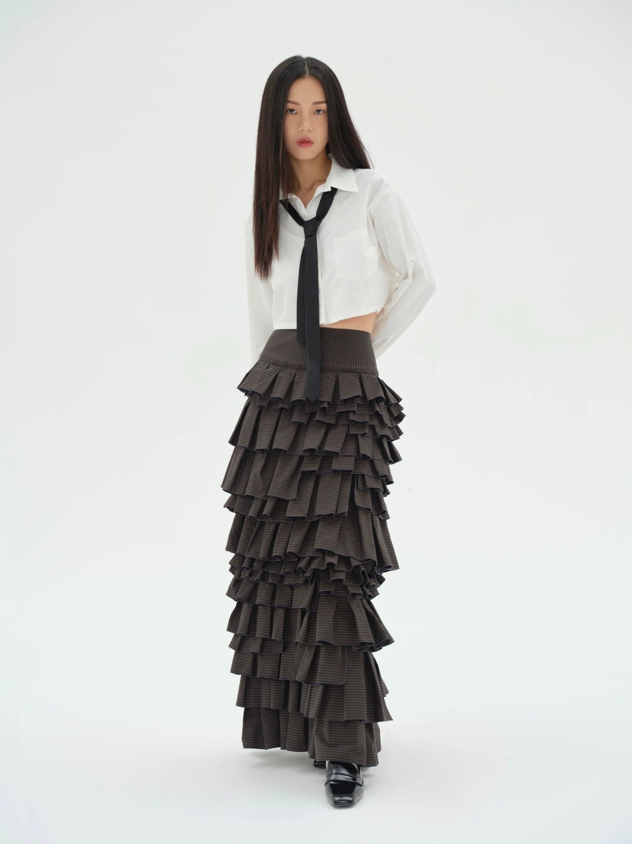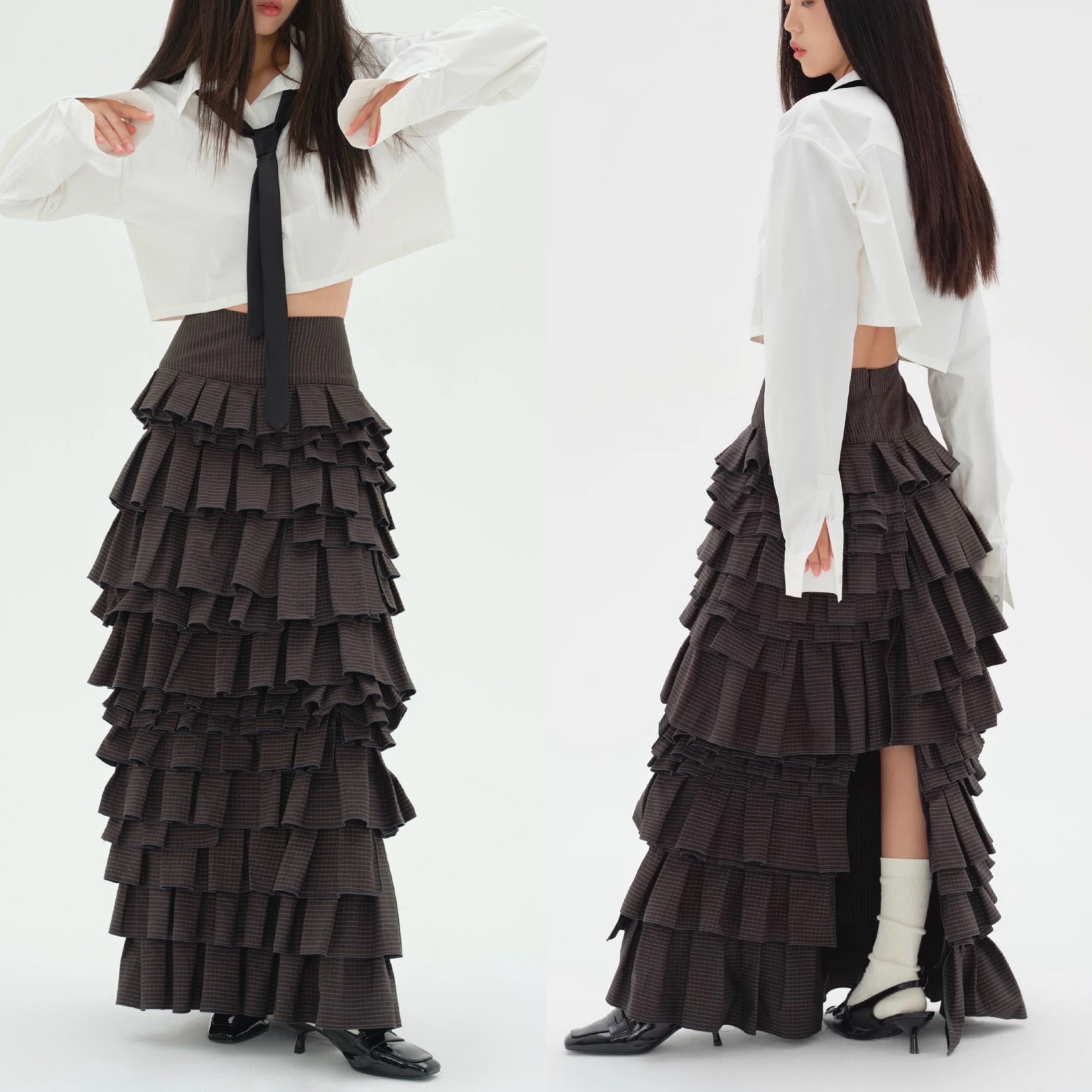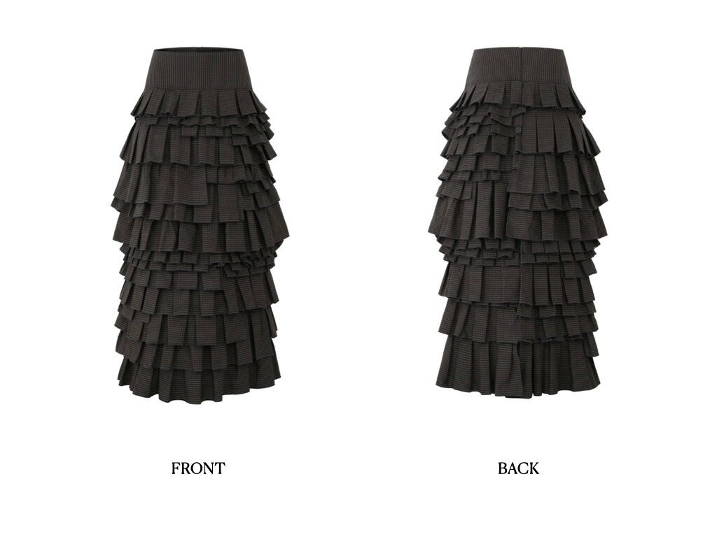 黒 チェック ボトムス ガーリー マーメイド マキシ ロング スカート モード