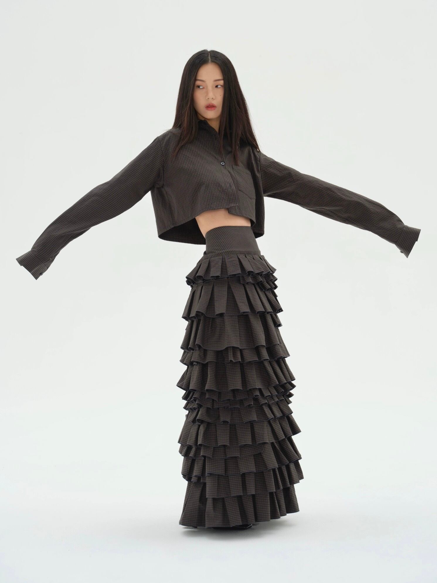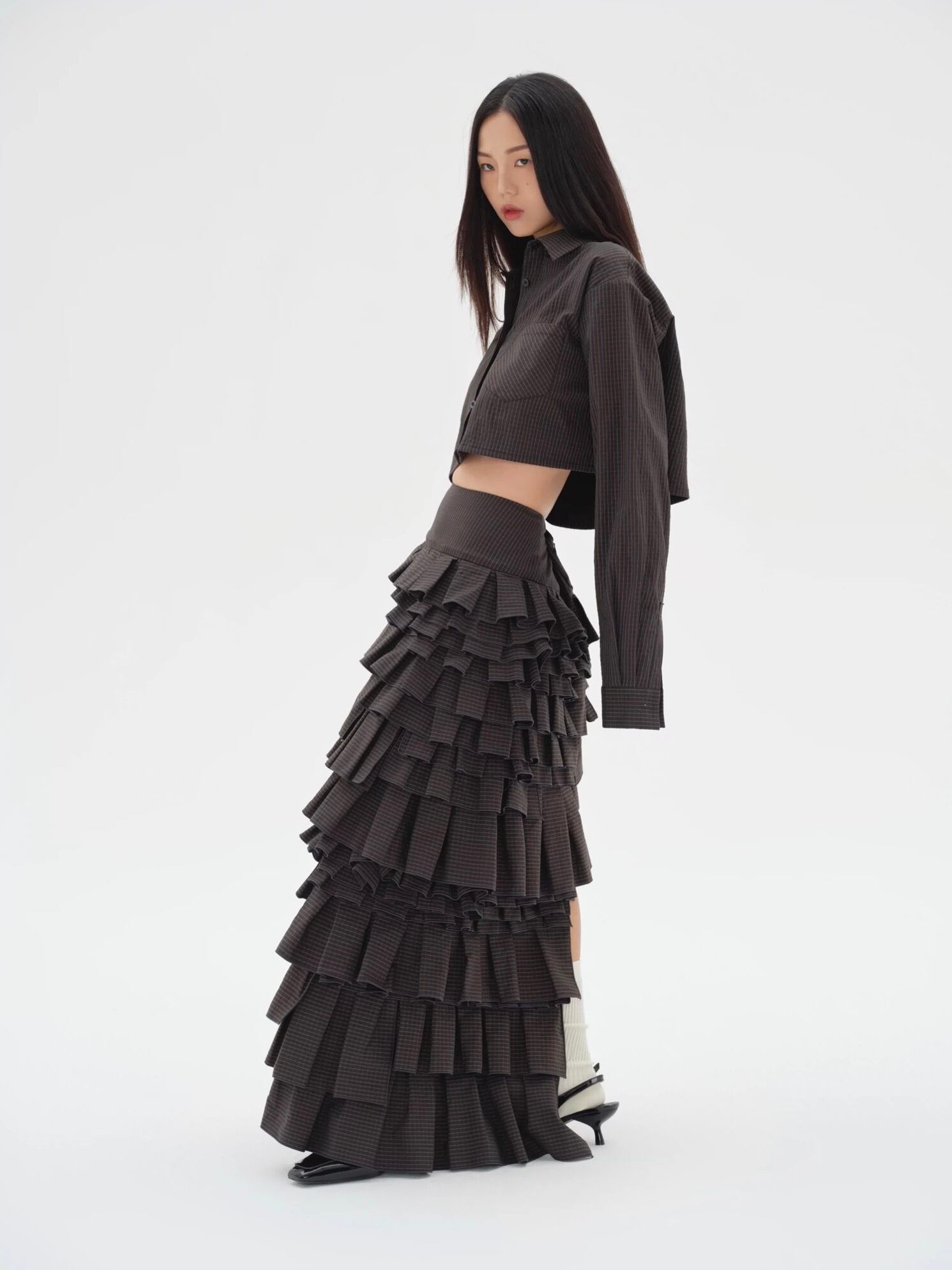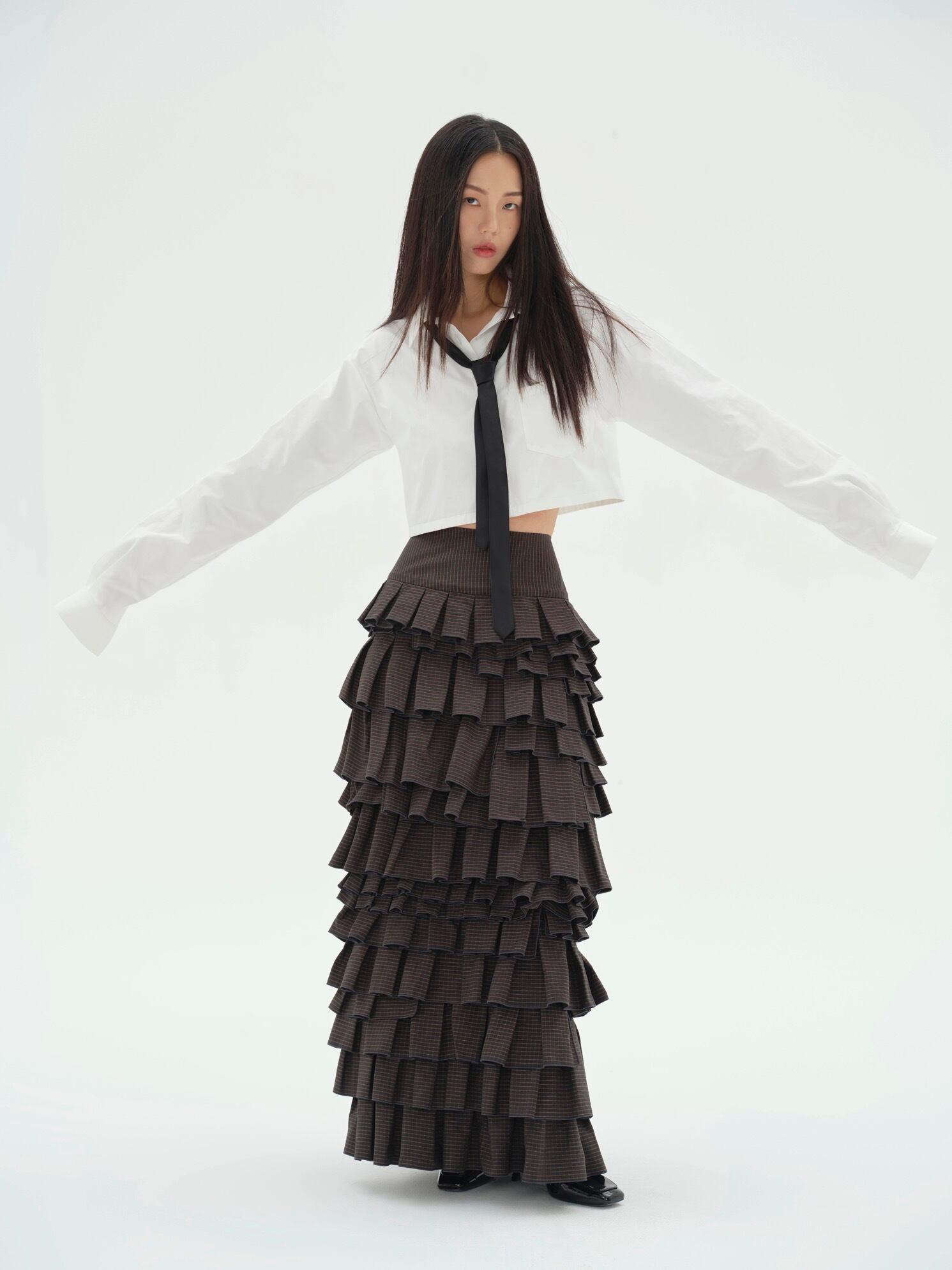 黒 チェック ボトムス ガーリー マーメイド マキシ ロング スカート モード