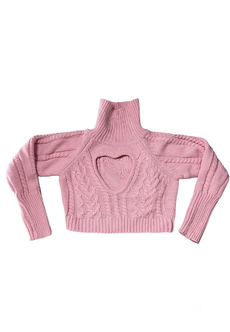 トップス ピンク ハート セーター カーディガン ハイネック セクシー ダンス 可愛い ピンク