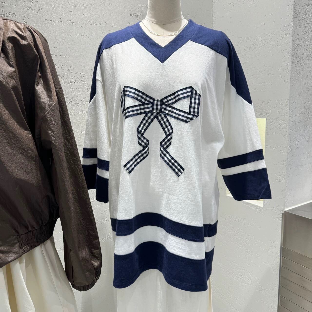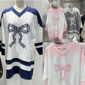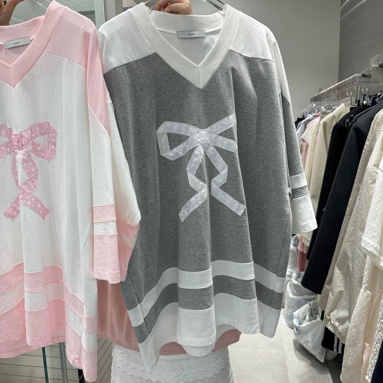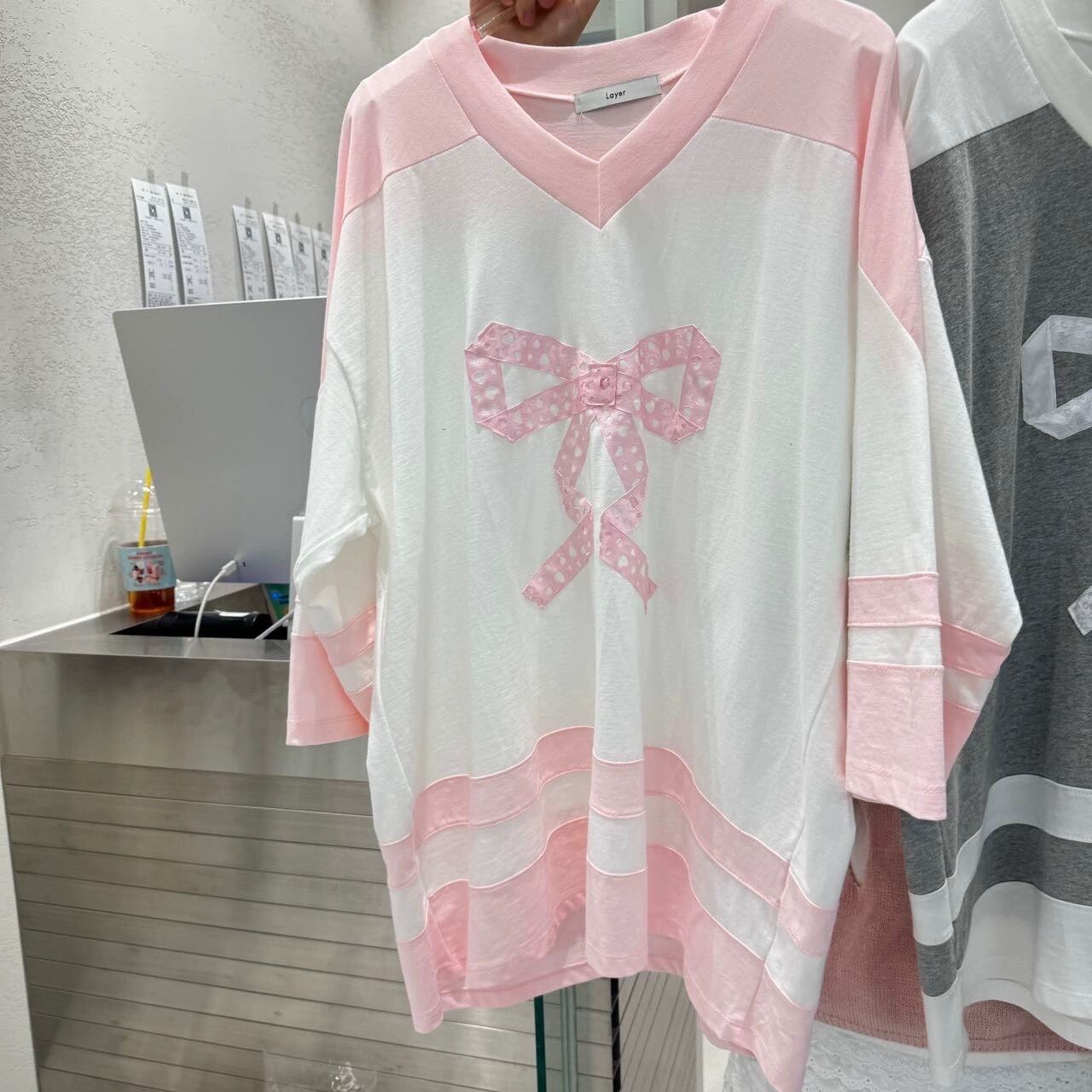 カジュアル スウェット リボン グレー ピンク Tシャツ カジュアル