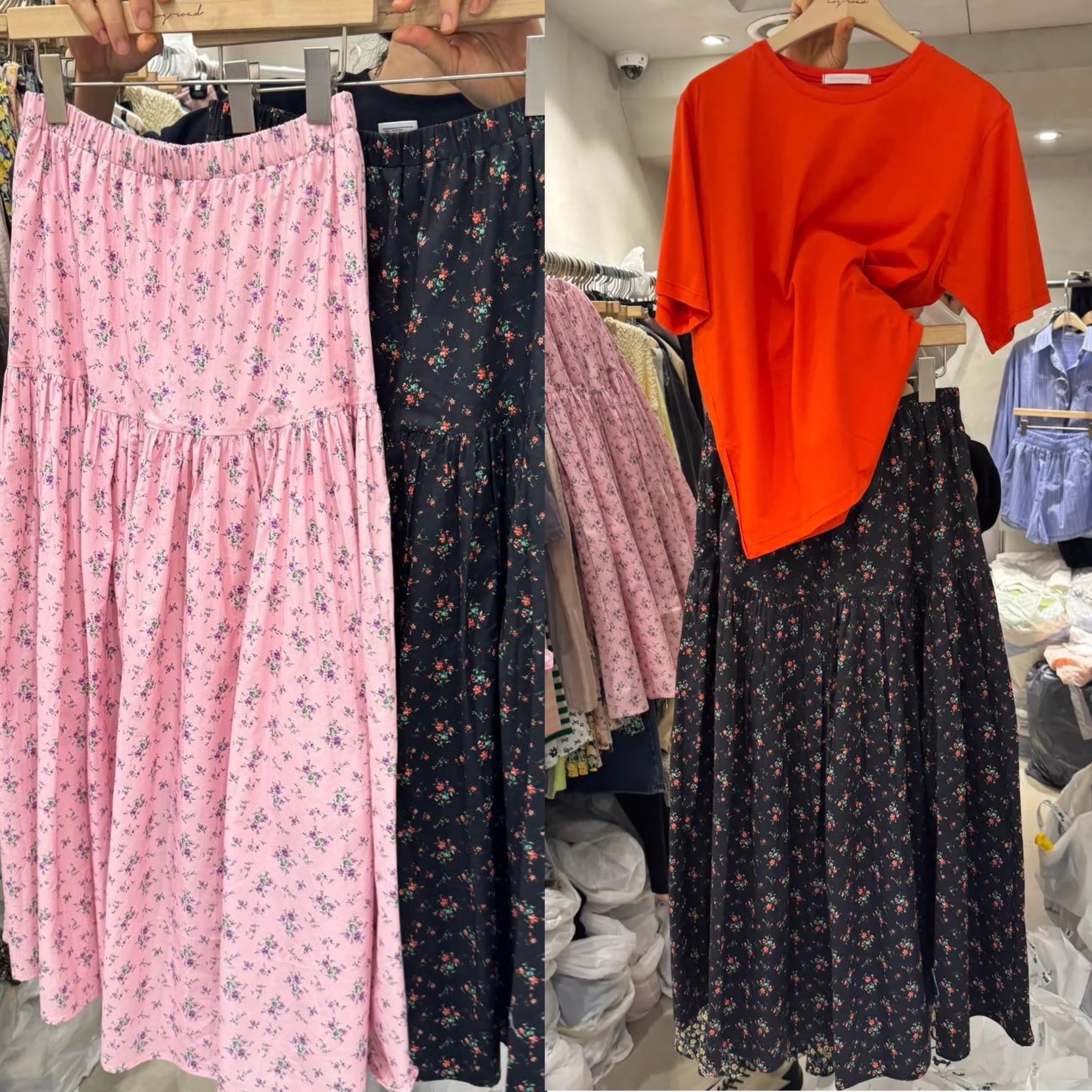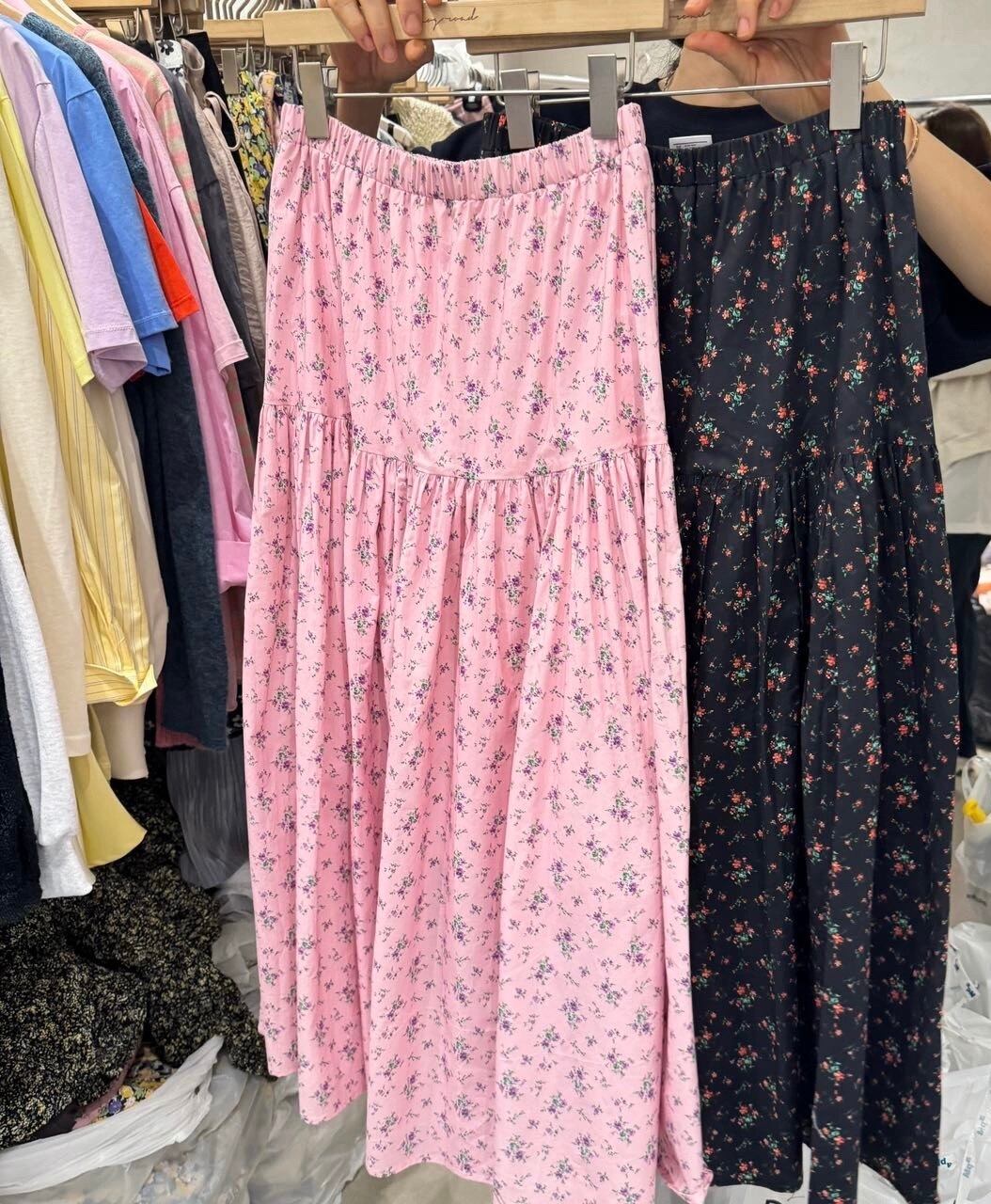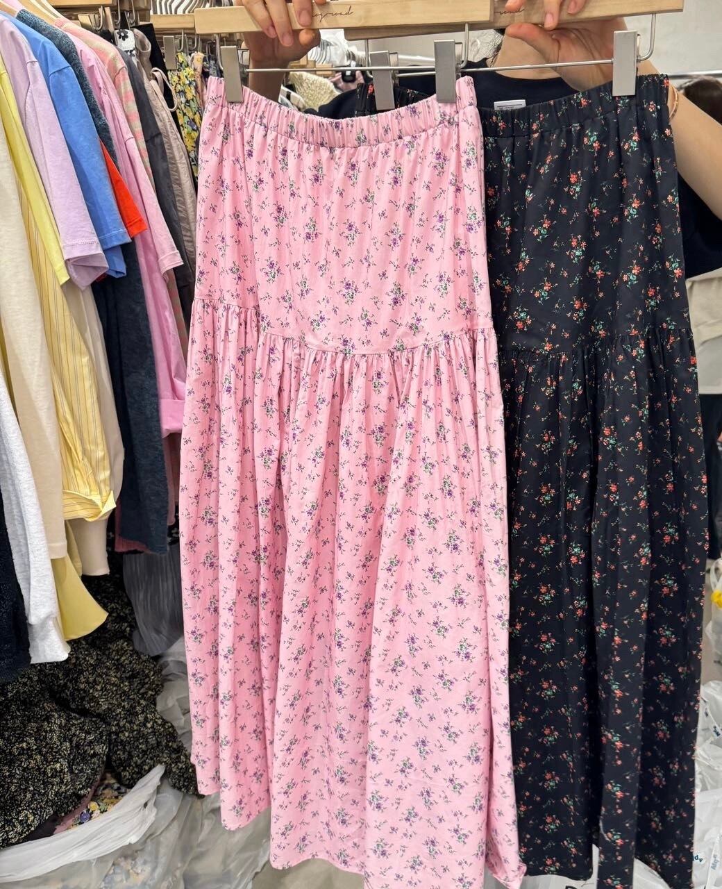 花柄 シンプル スカート 黒 フラワー ピンク ガーリー カジュアル