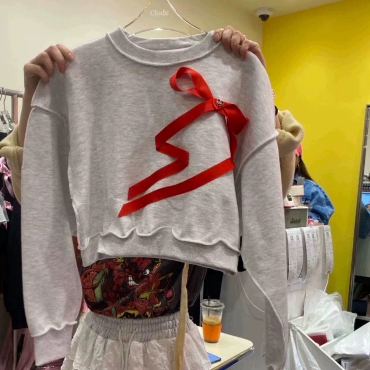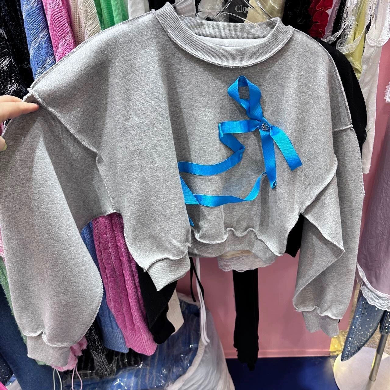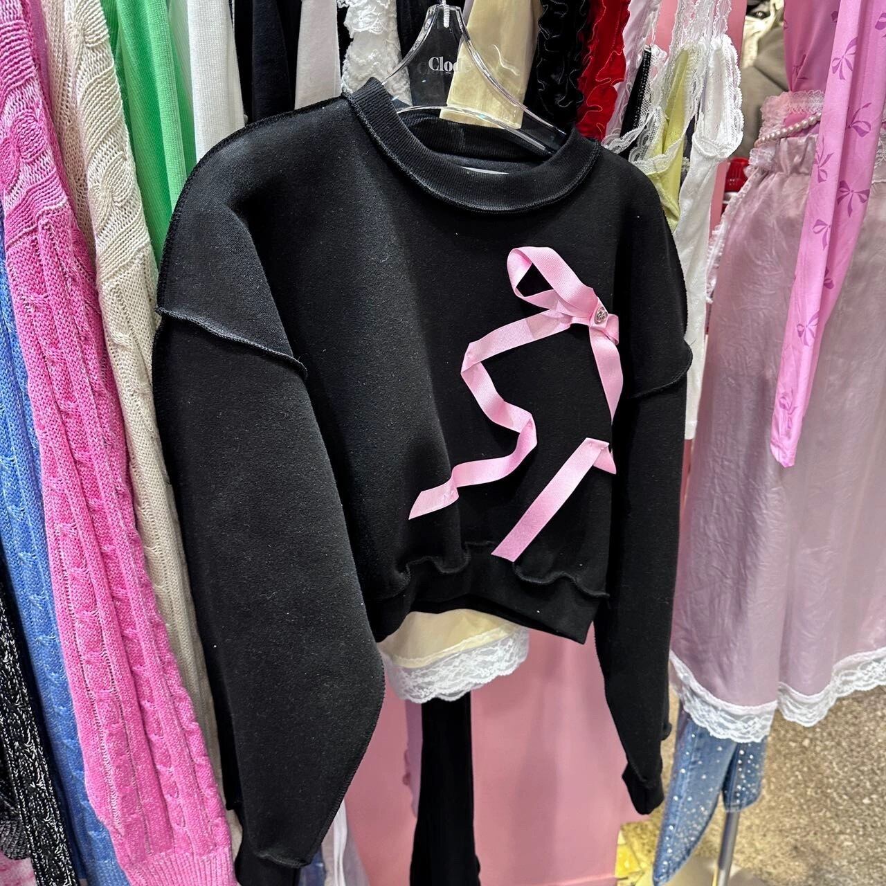 リボン トレーナー グレー 黒 赤 ピンク 赤 水色