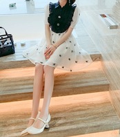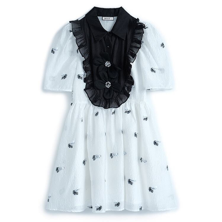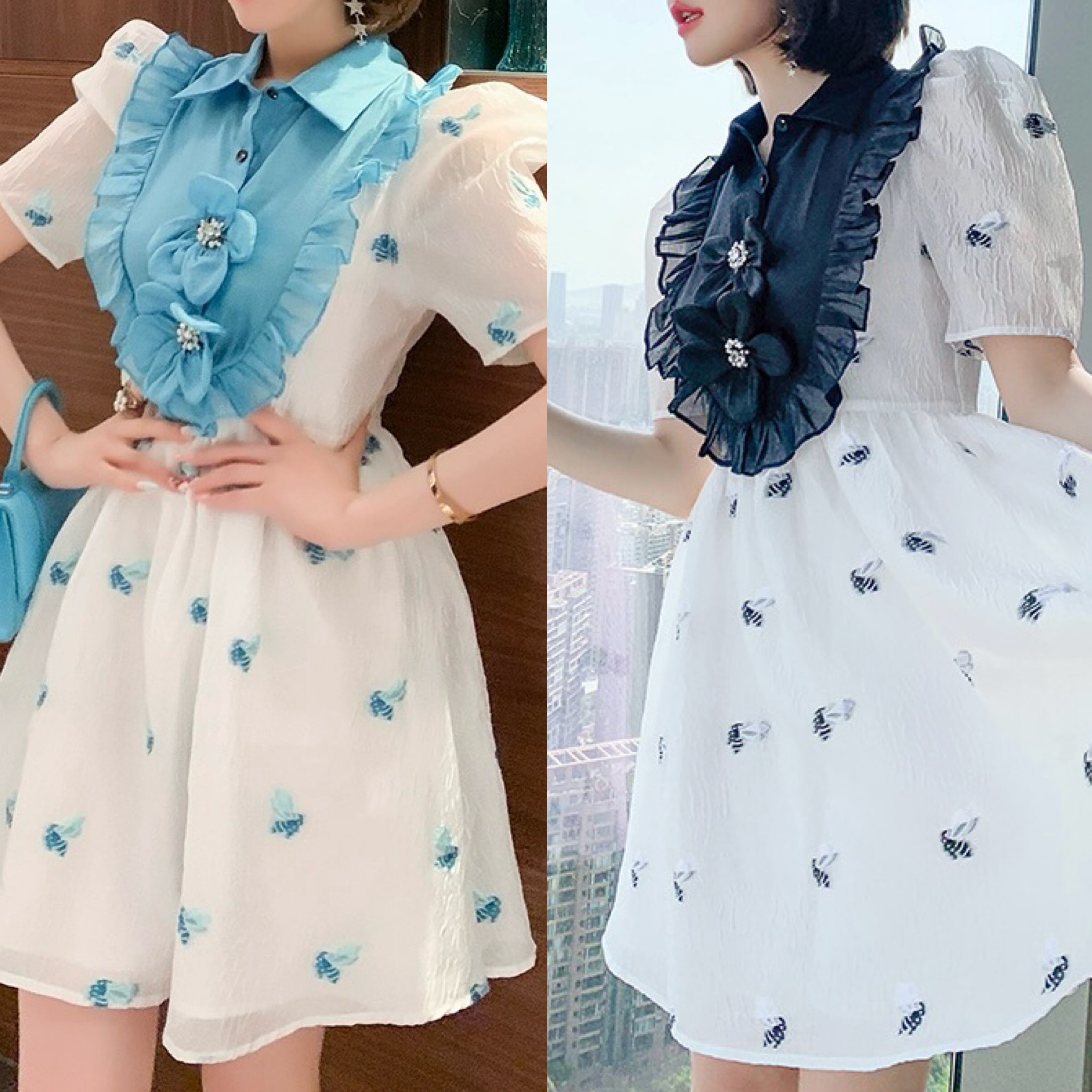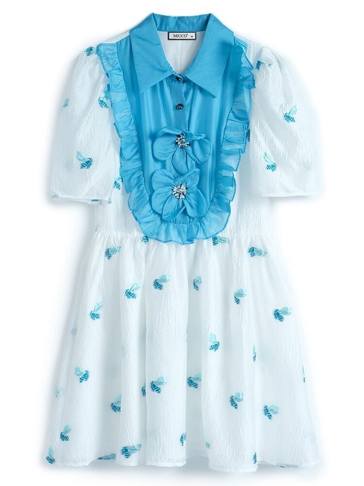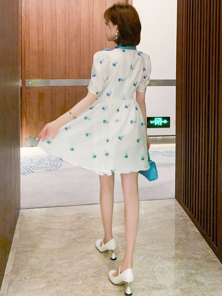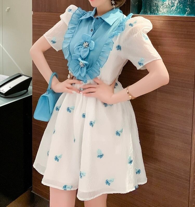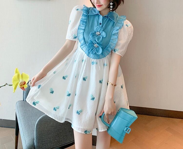 爽やか フラワー ブラウス ワンピース XL 黒 水色 でこれ