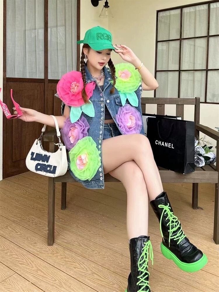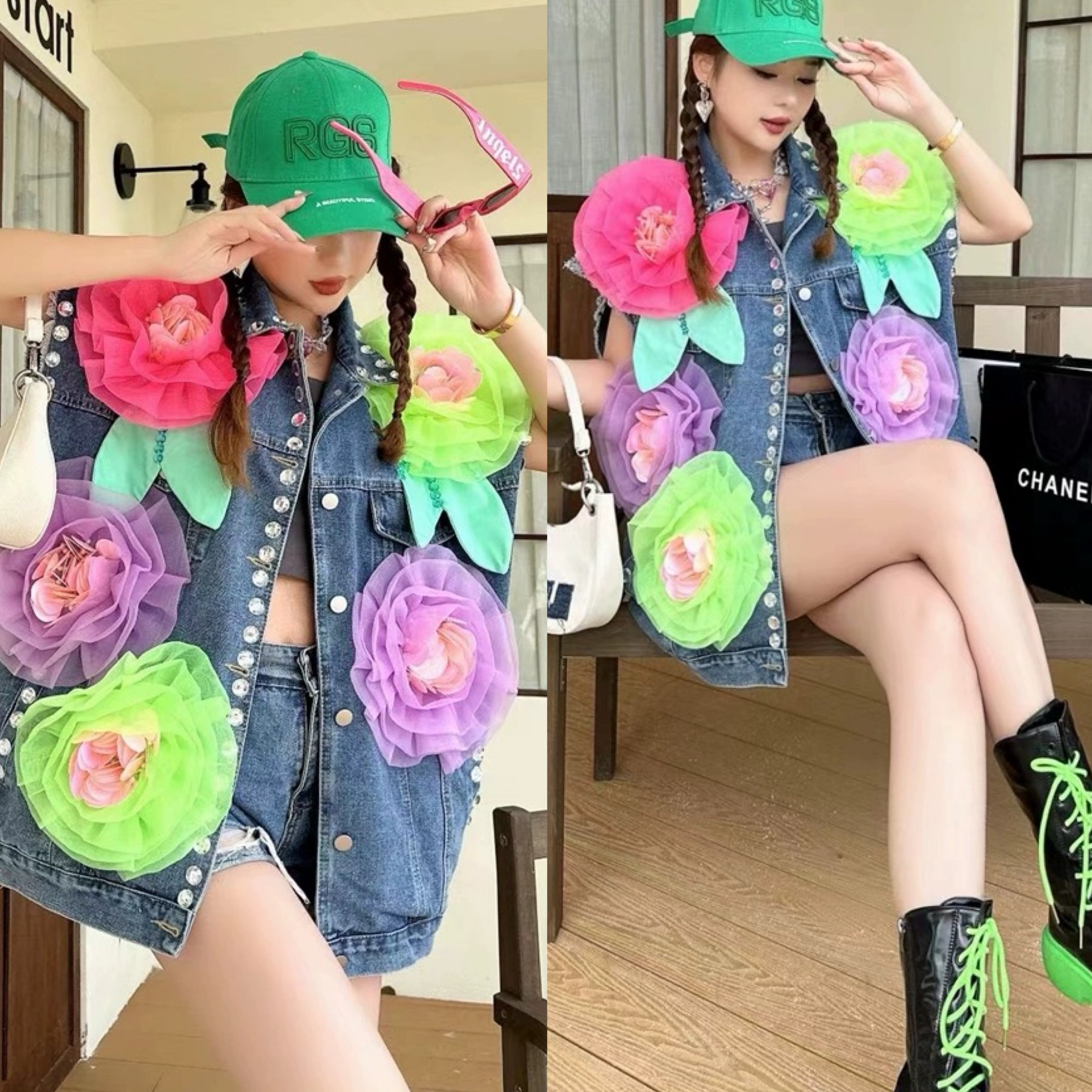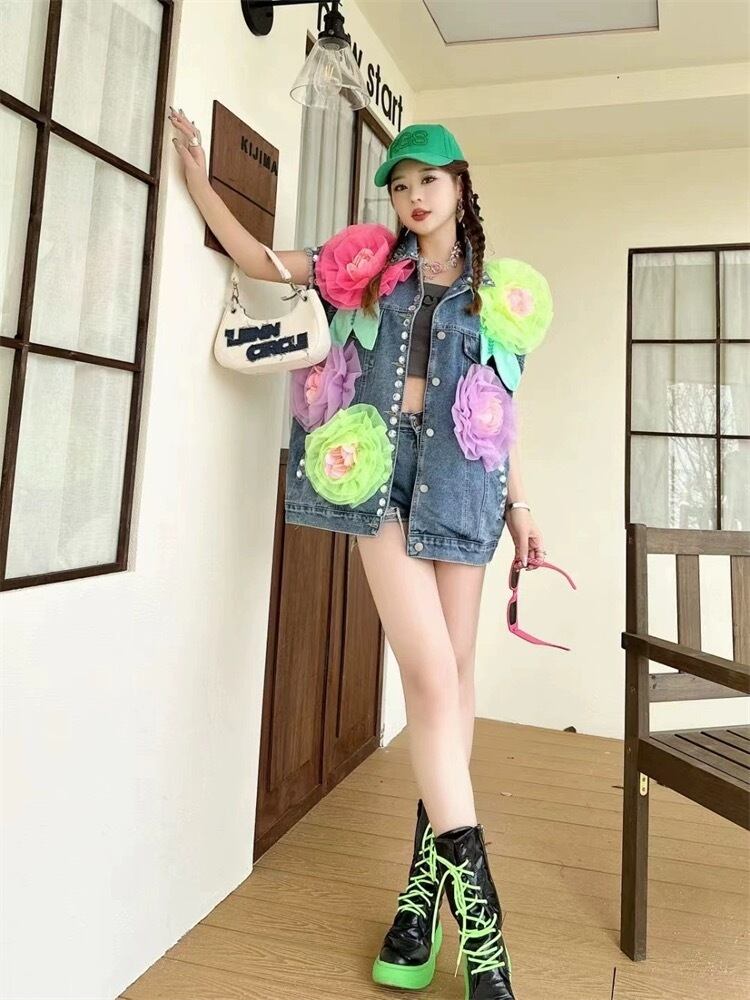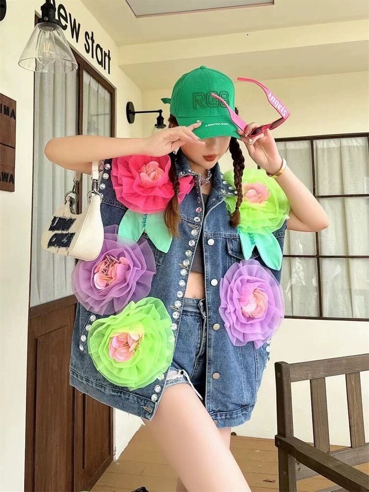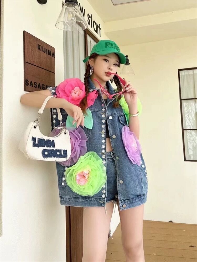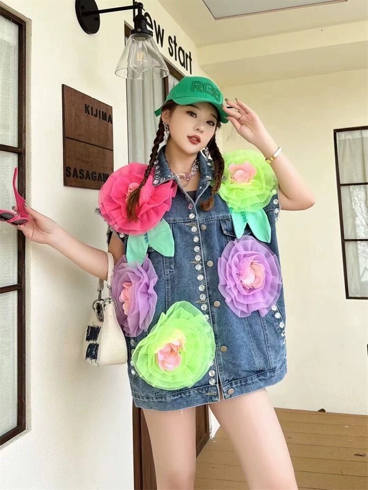 花柄 デコレーション カラフル ジャケット アウター カーディガン ジージャン デニム