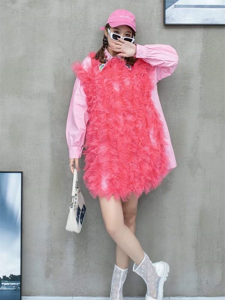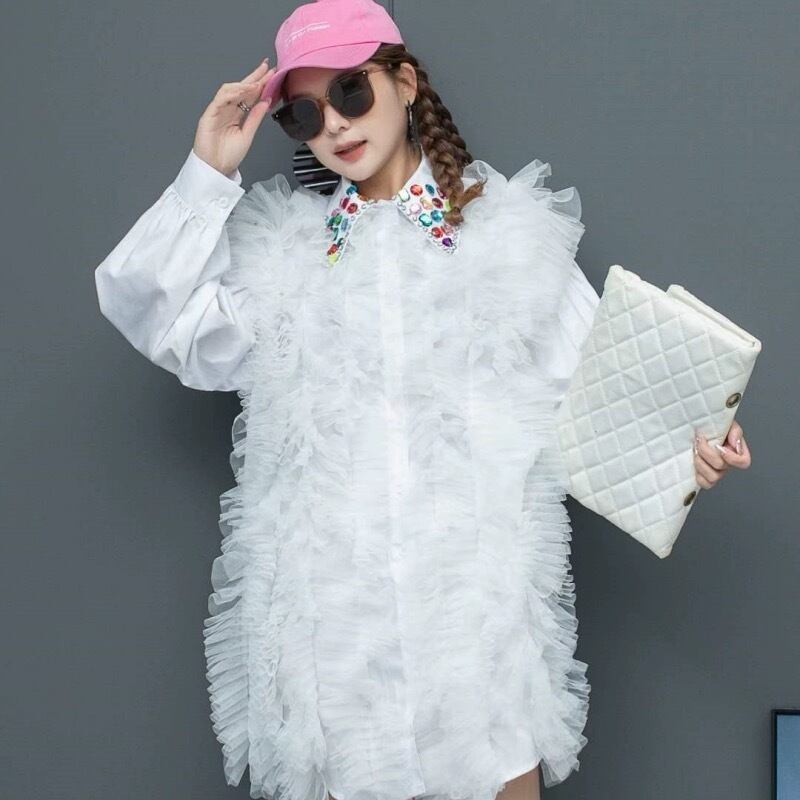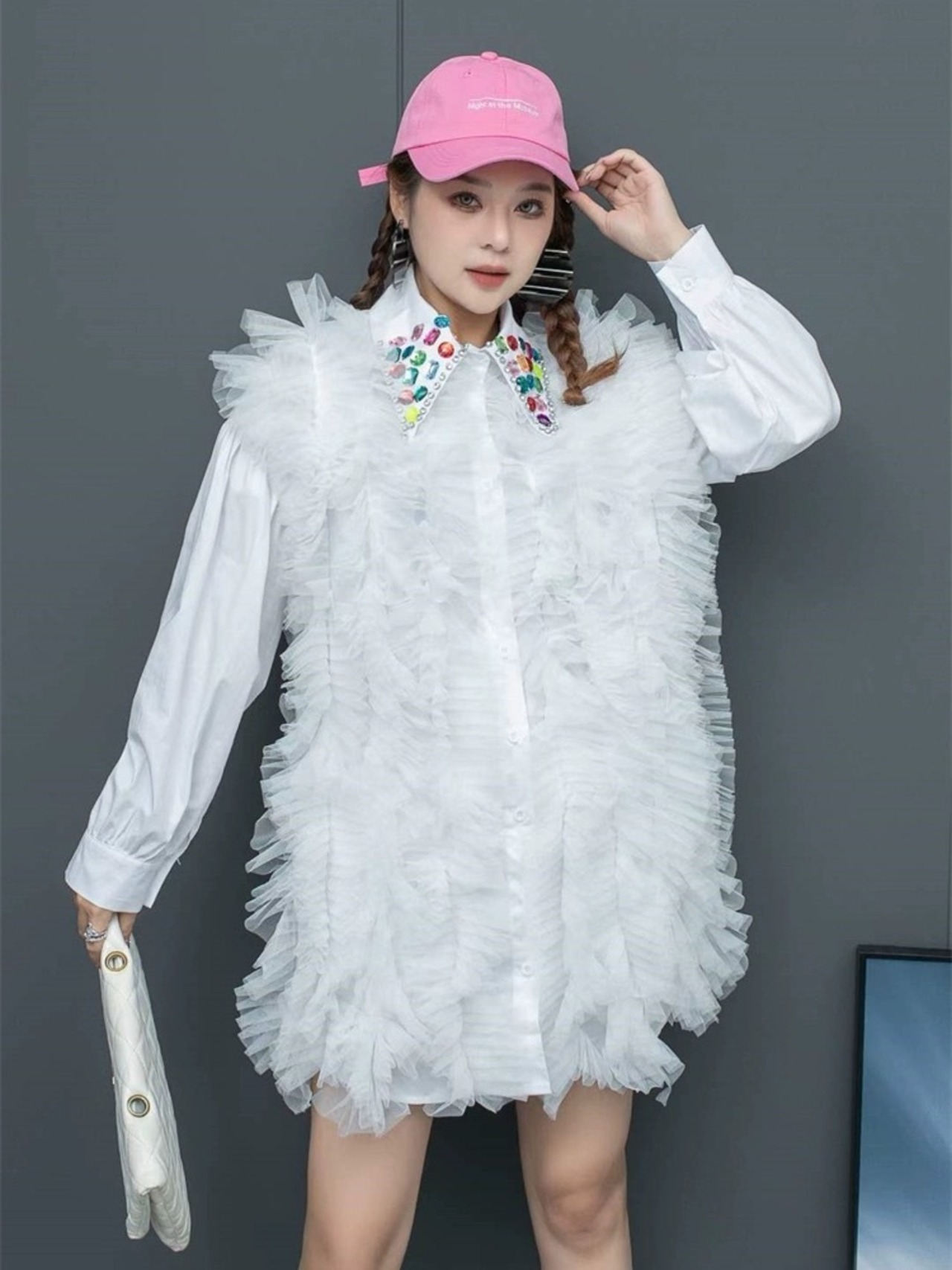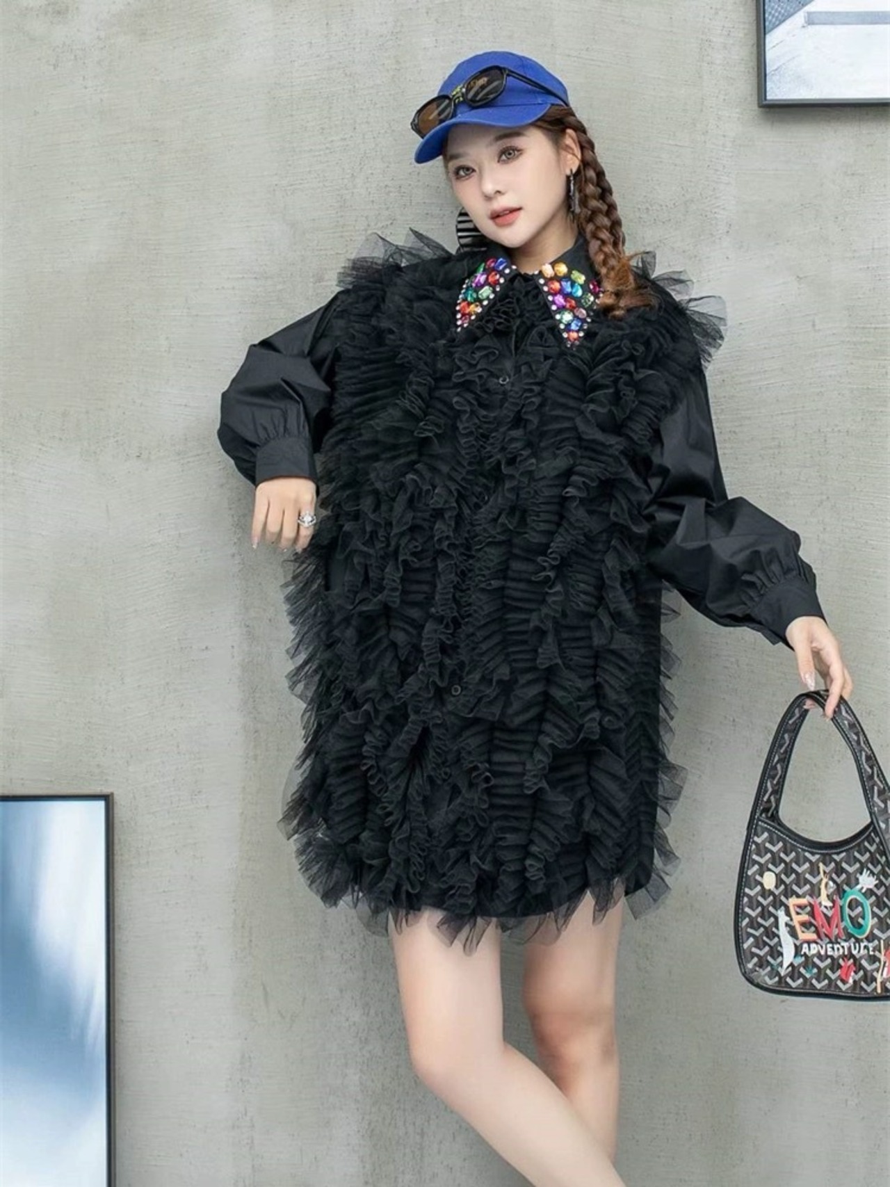 ブラウス ワンピース 黒 ピンク 白 ラインストーン デコレーション