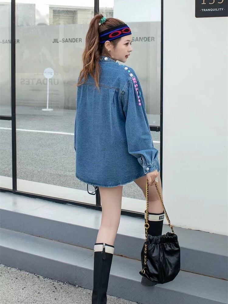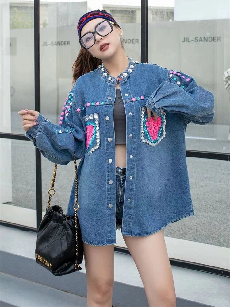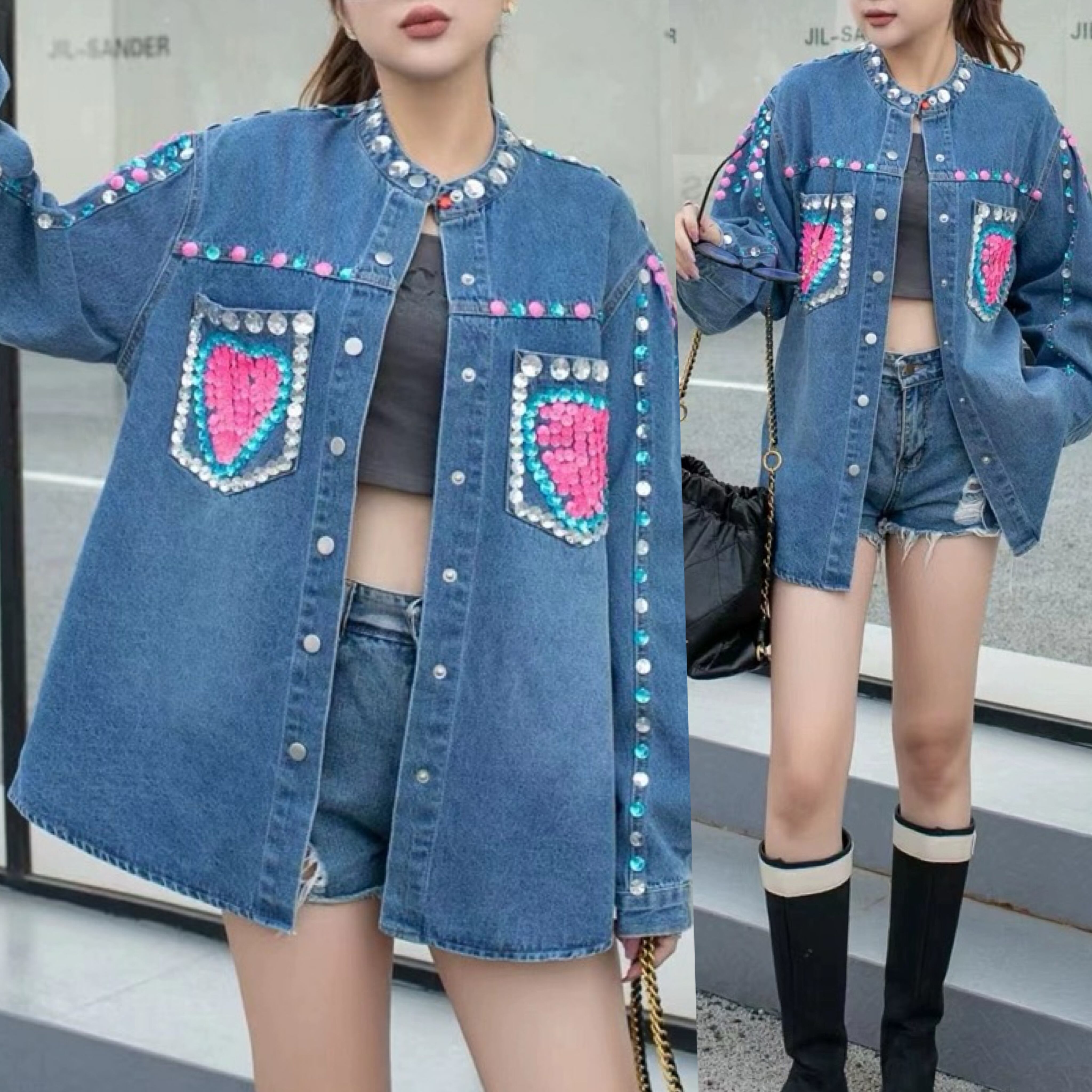 ラインストーン デコレーション デニム ジャケット ピンク ハート