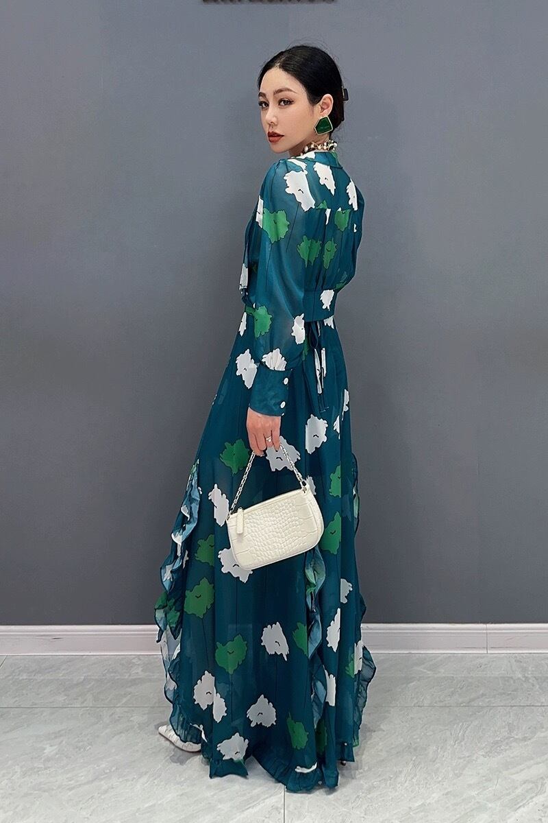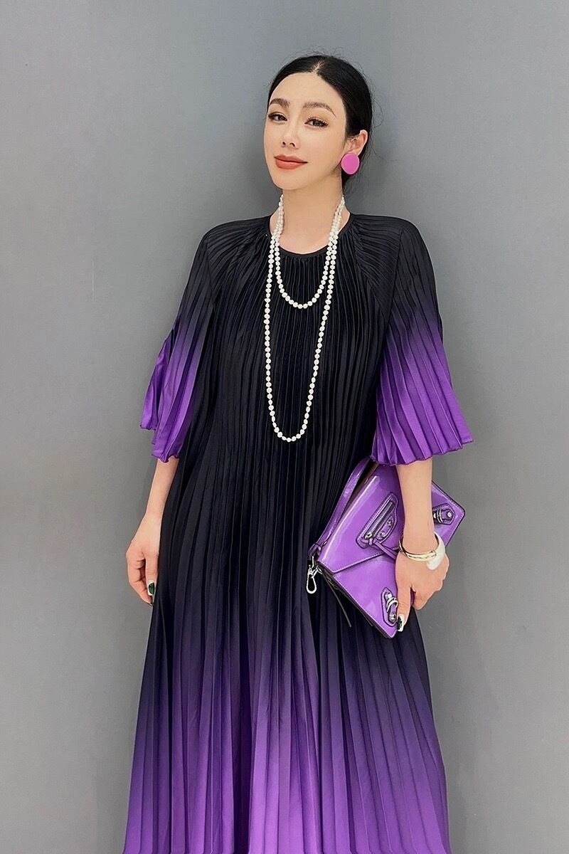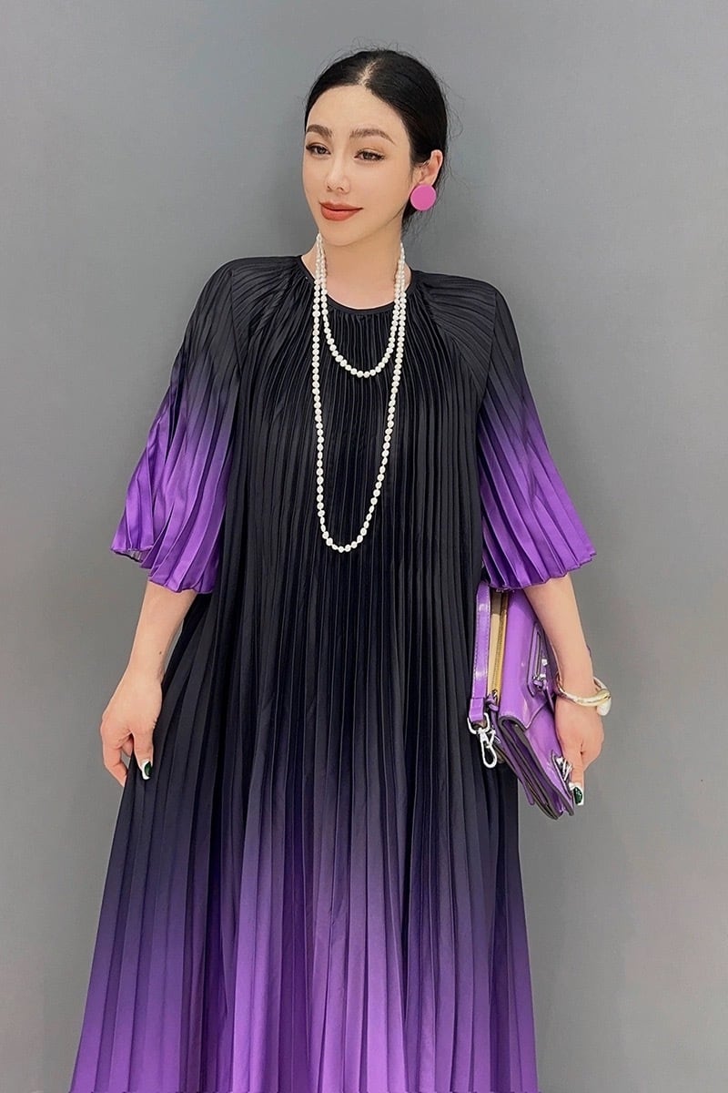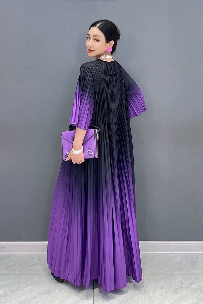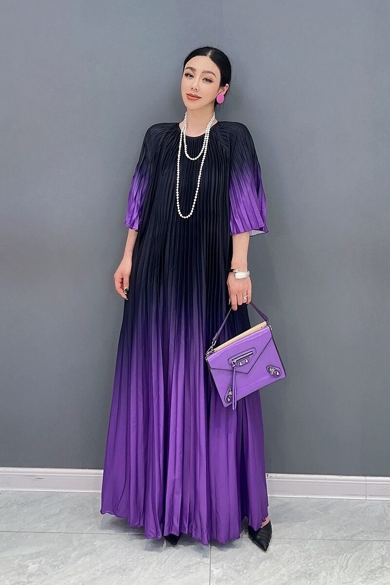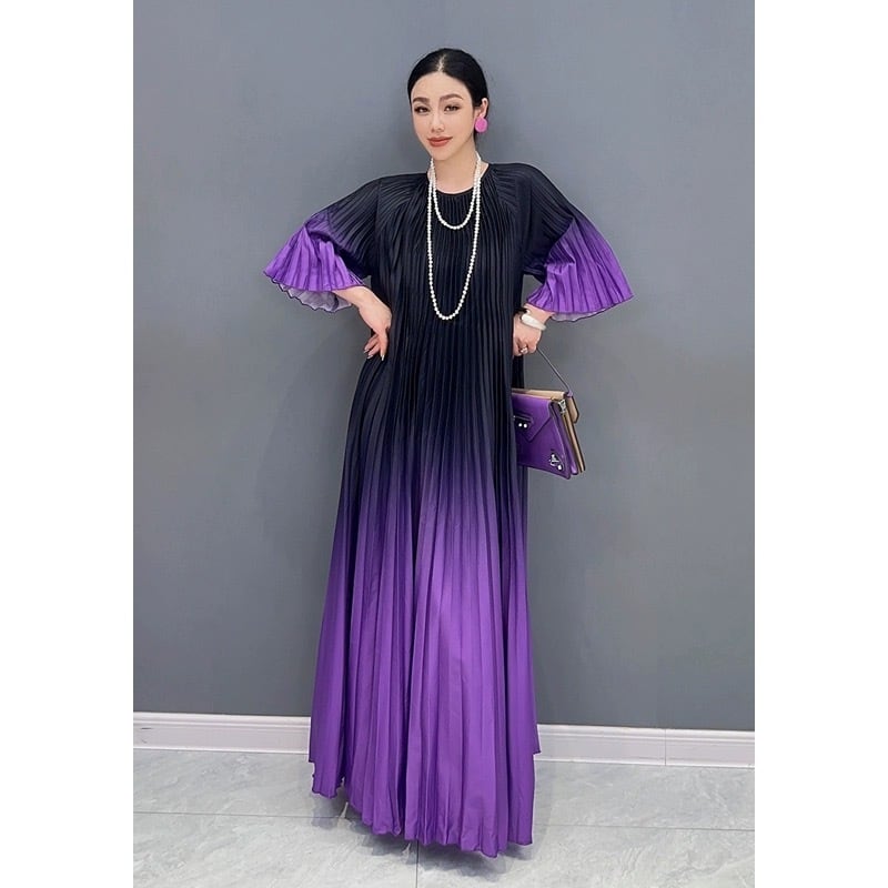 紫 グラデーション 水色 黄色 フラワー 緑 ワンピース ゆったり XL