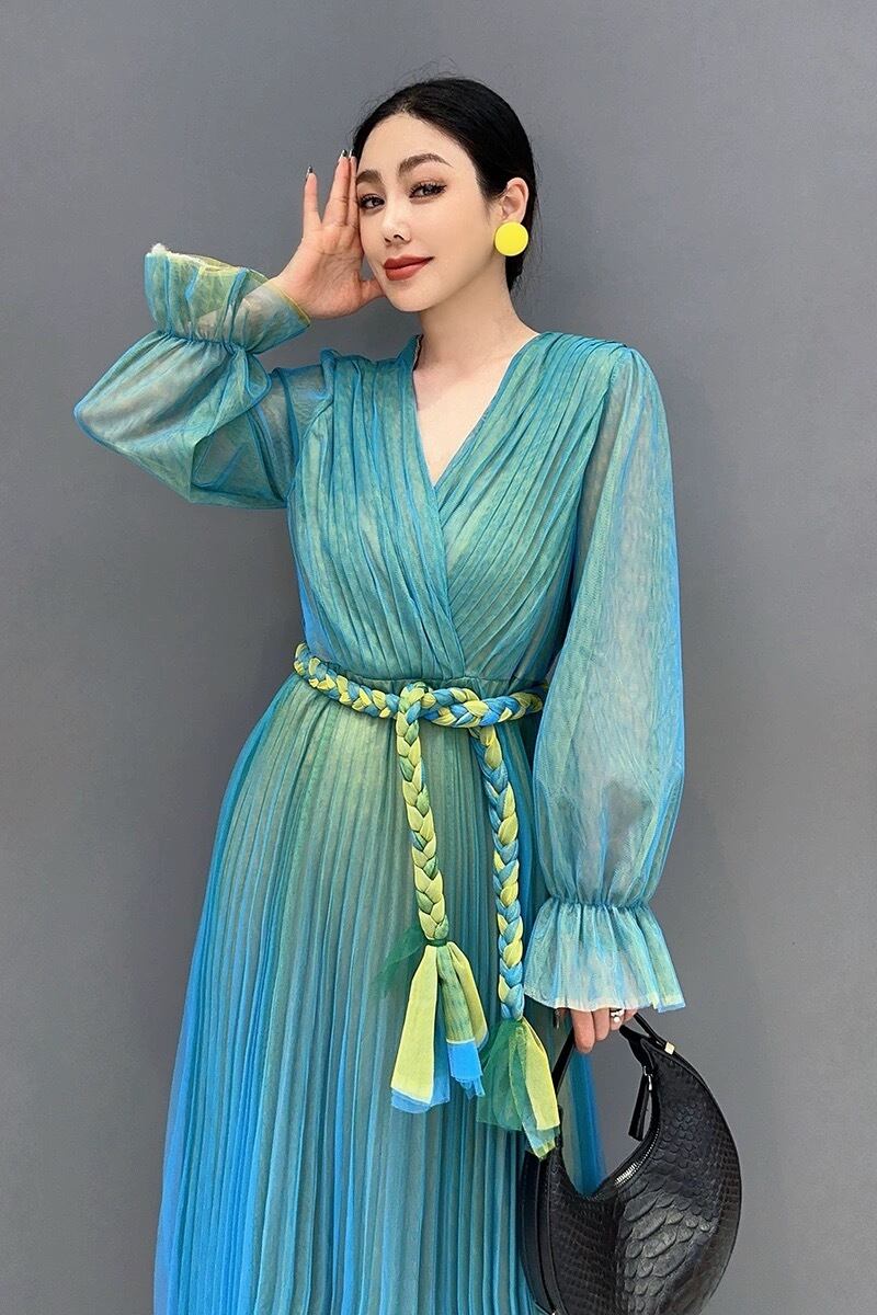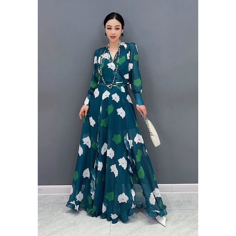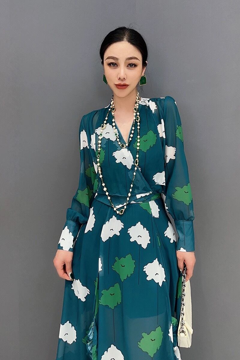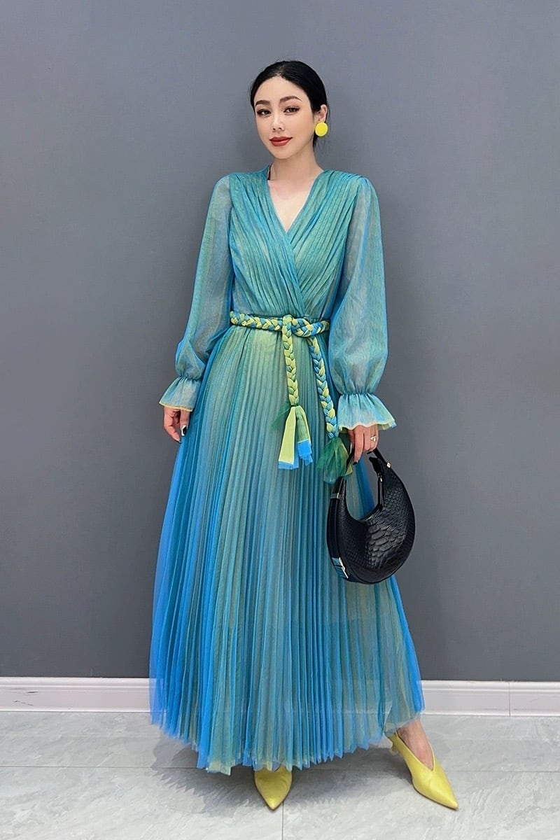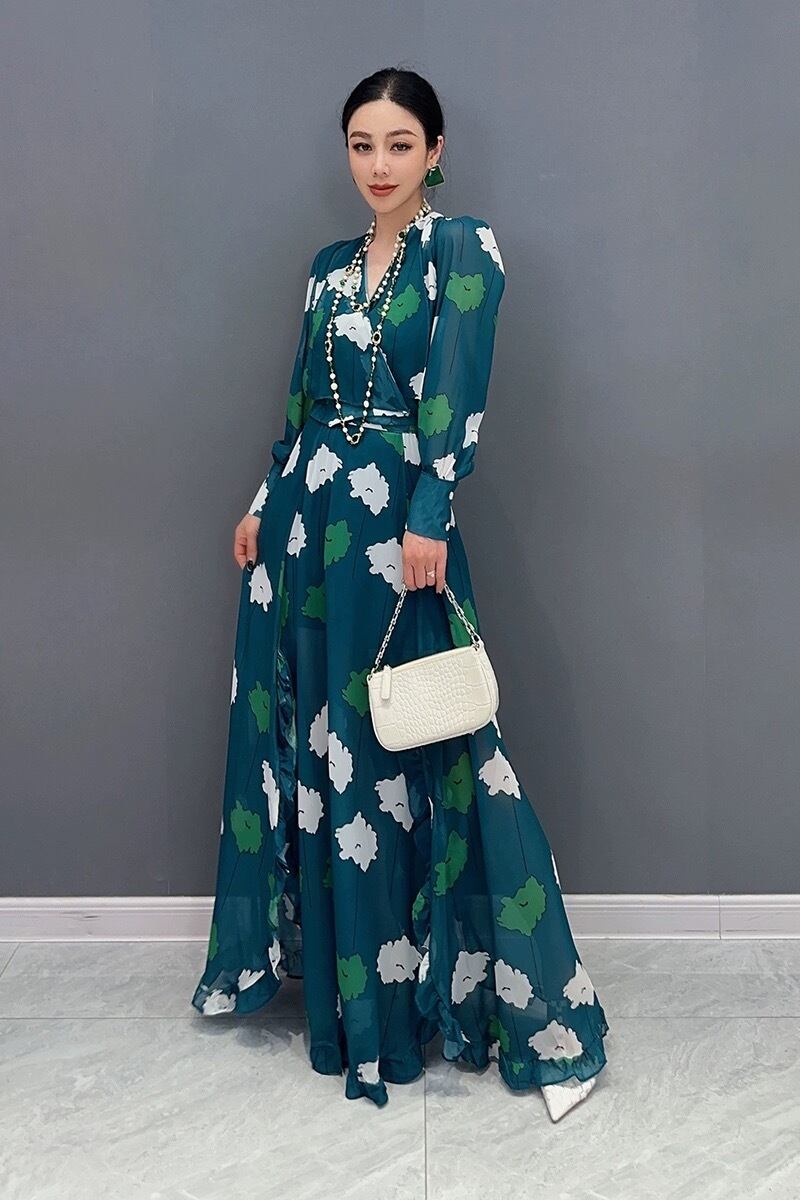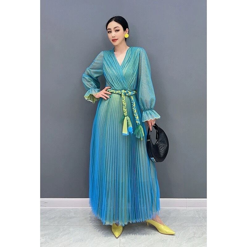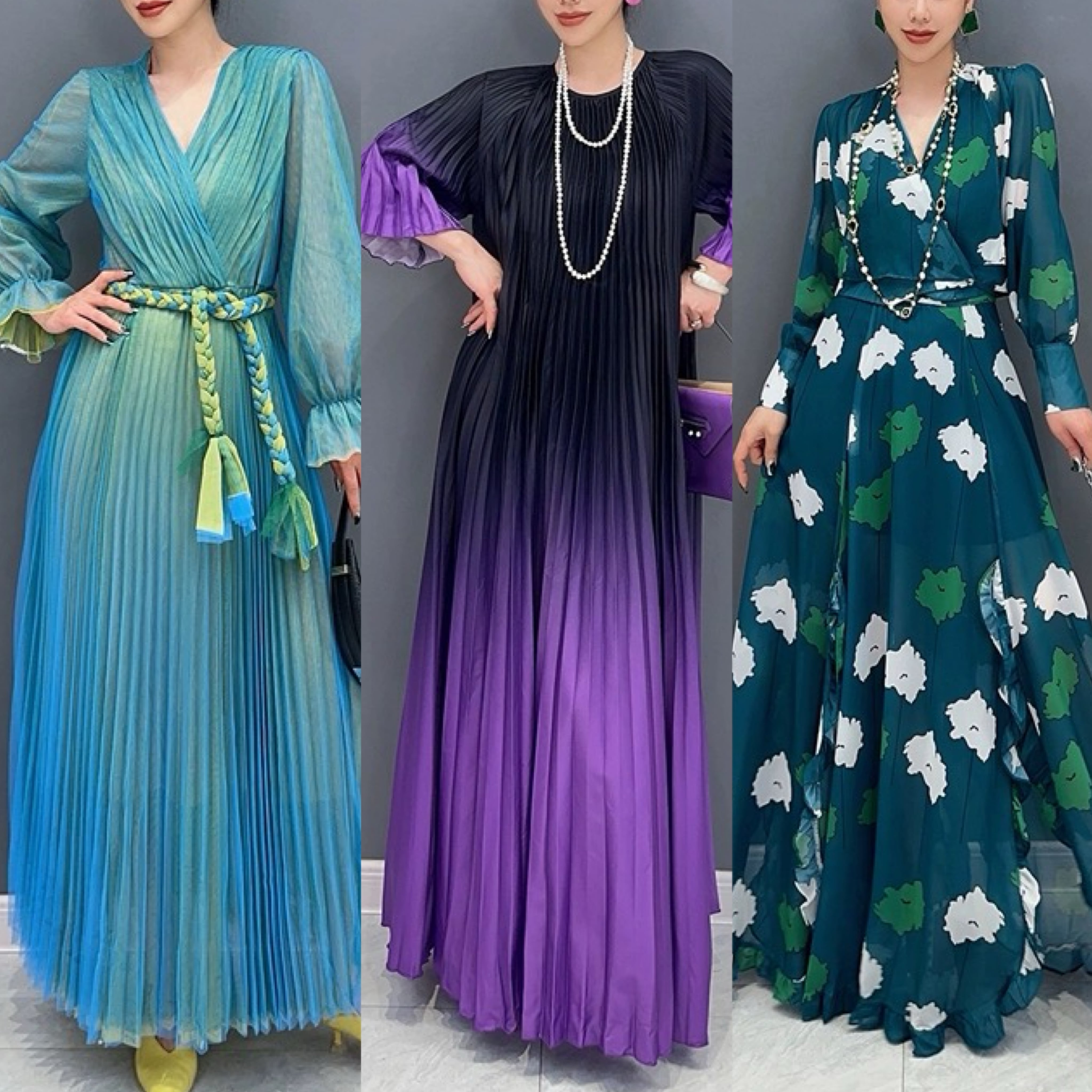 紫 グラデーション 水色 黄色 フラワー 緑 ワンピース ゆったり XL