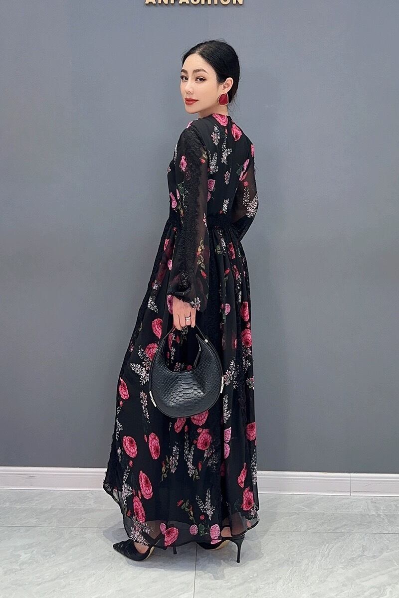 ピンク 花柄 黒 ワンピ ドレス 緑 ゆったり ポンチョ XL 花柄 フラワー マント