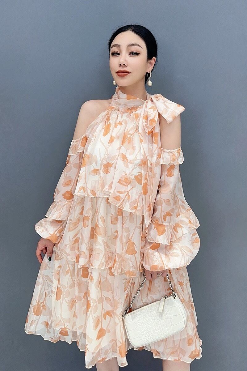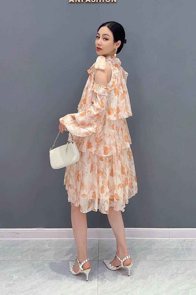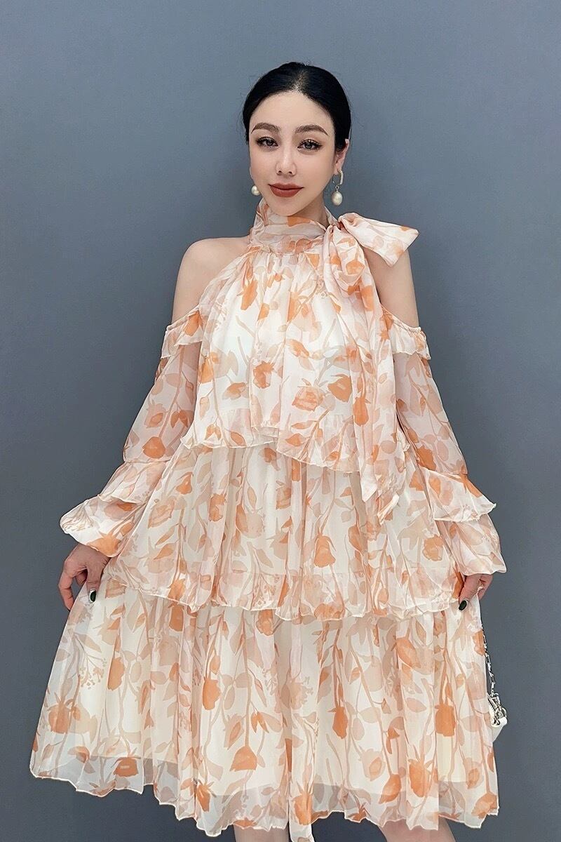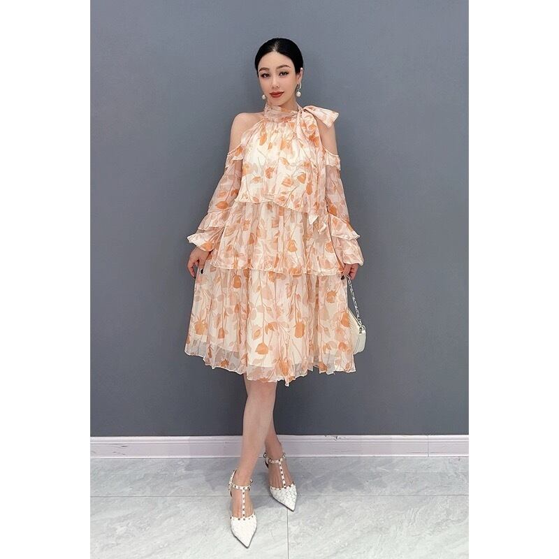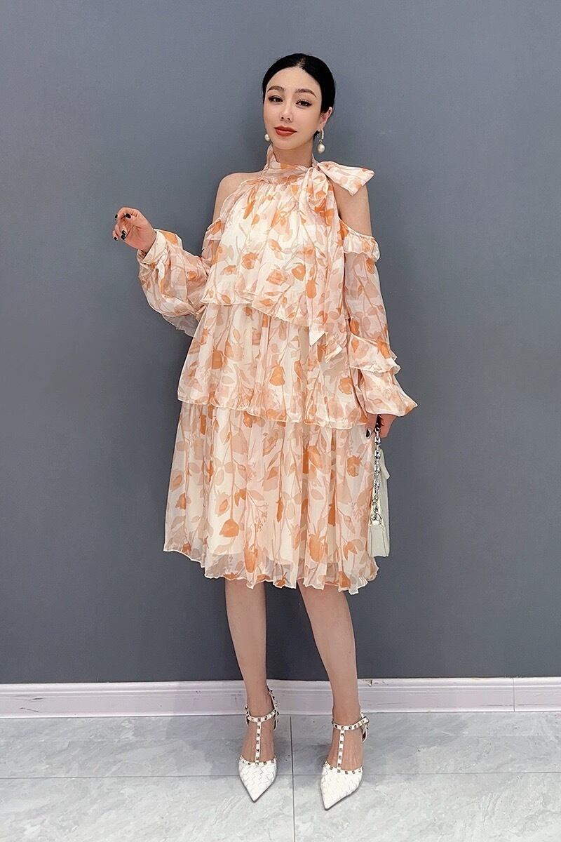 オレンジ 花柄 フラワー ワンピース リボン エレガント ブラウス XL
