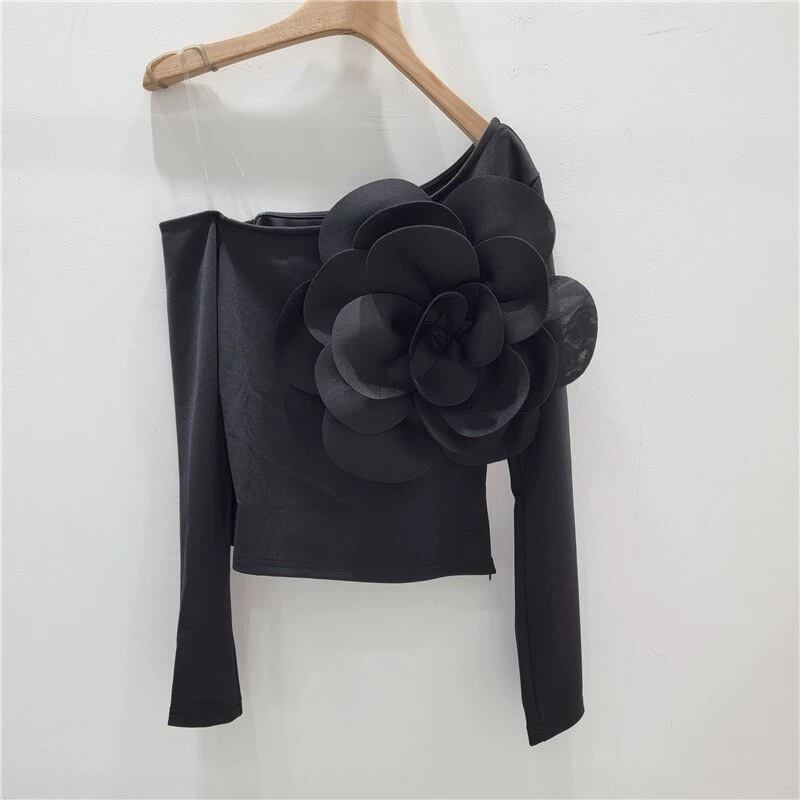 オフショルダー ピンク 赤 白 ブラウス 赤 カメリア 薔薇 フラワー 黒