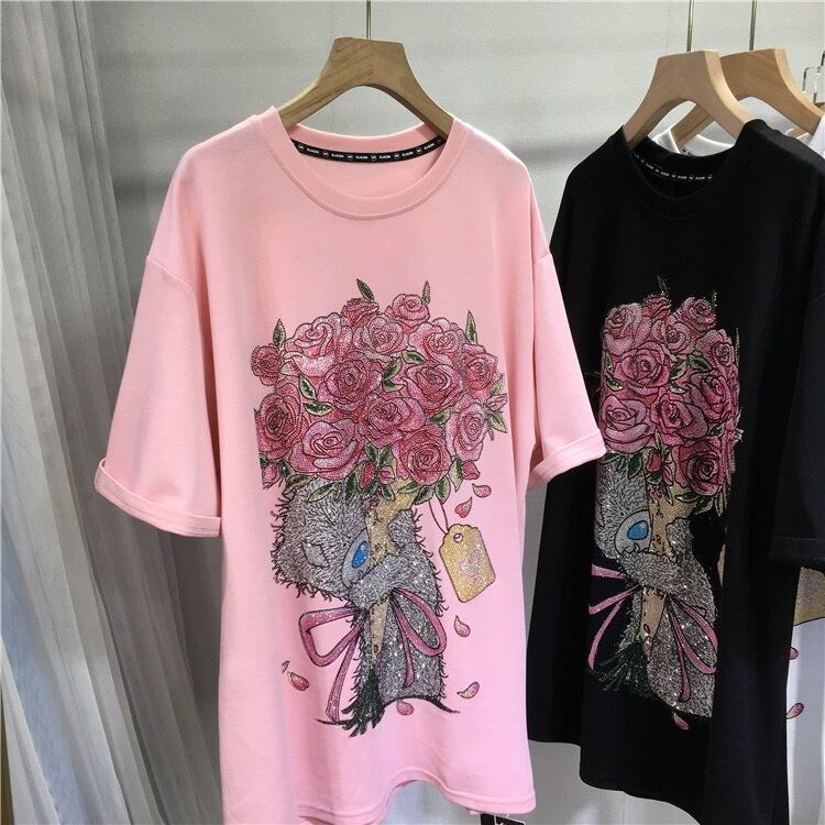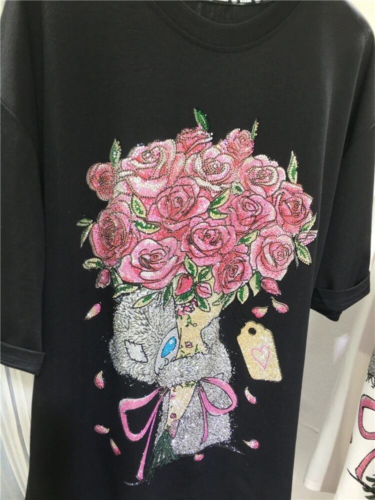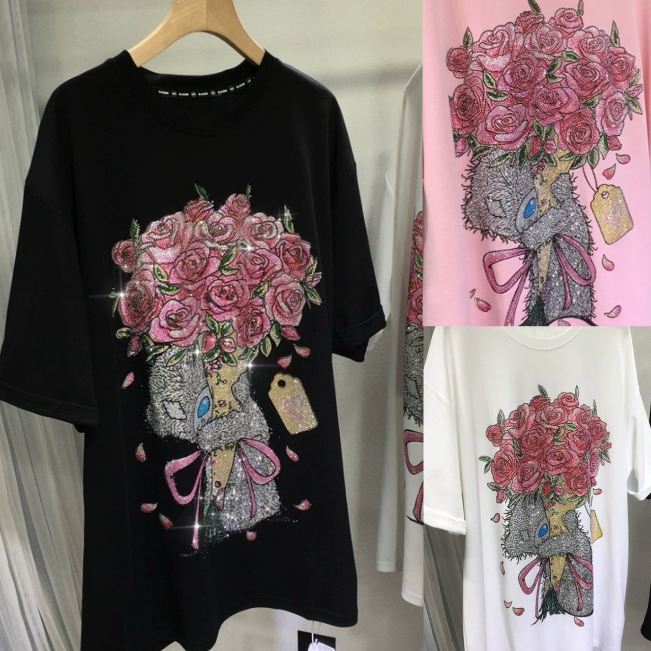薔薇 くまさん リボン カジュアル スウェット フラワー