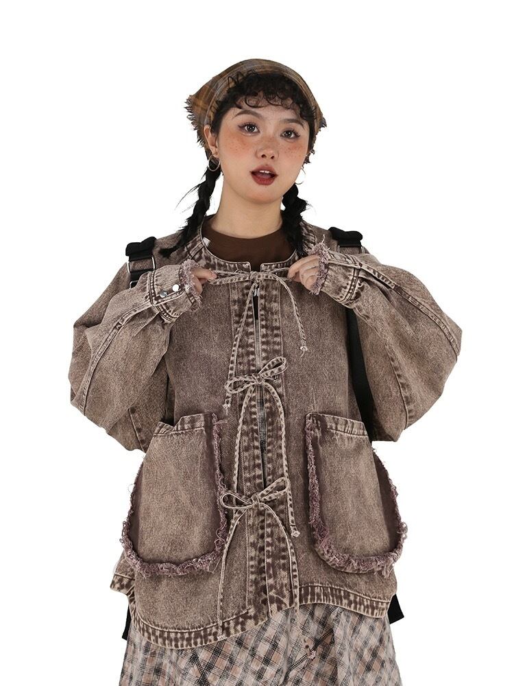 ジャケット アウター リボン カジュアル ジャンパー カーキ