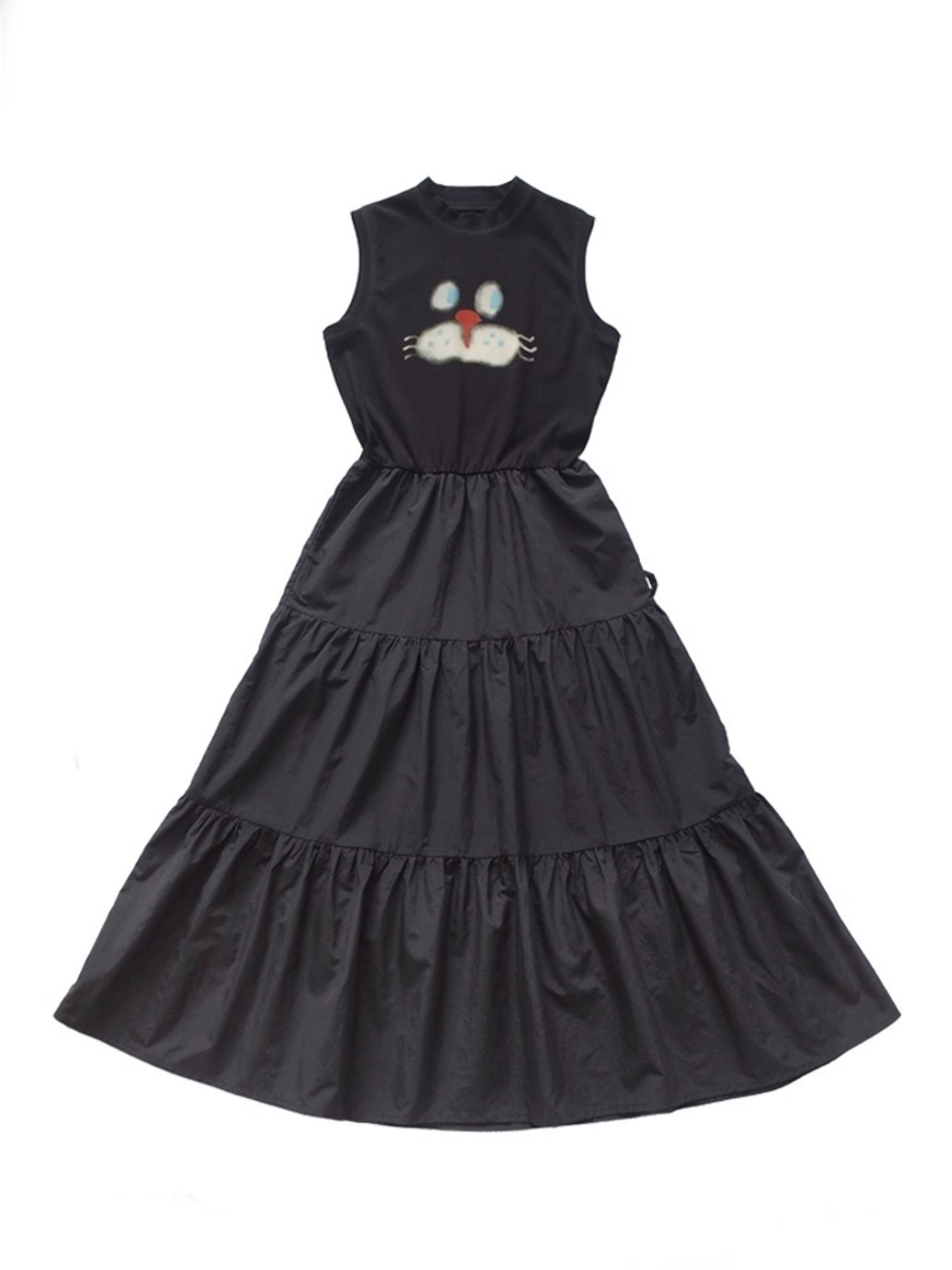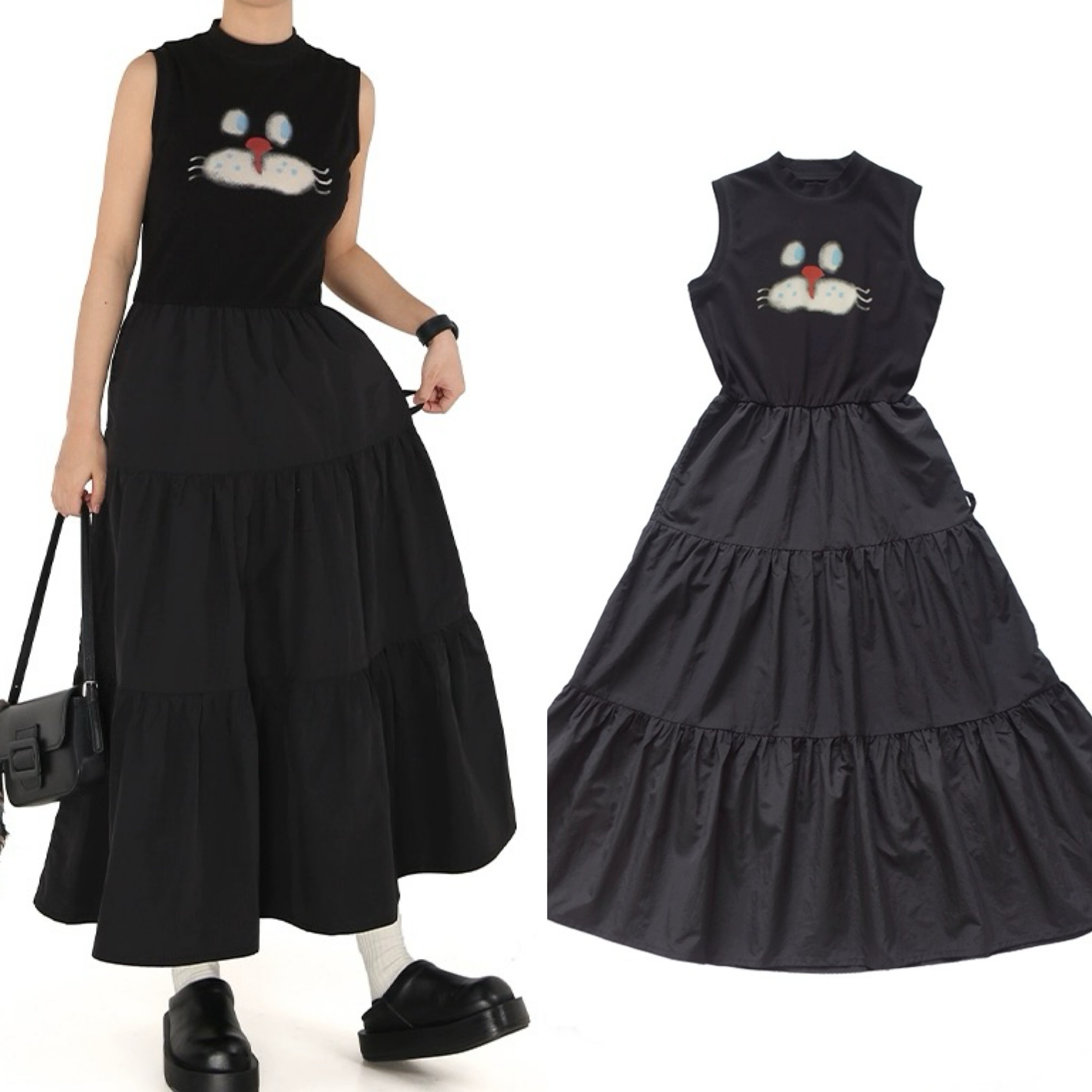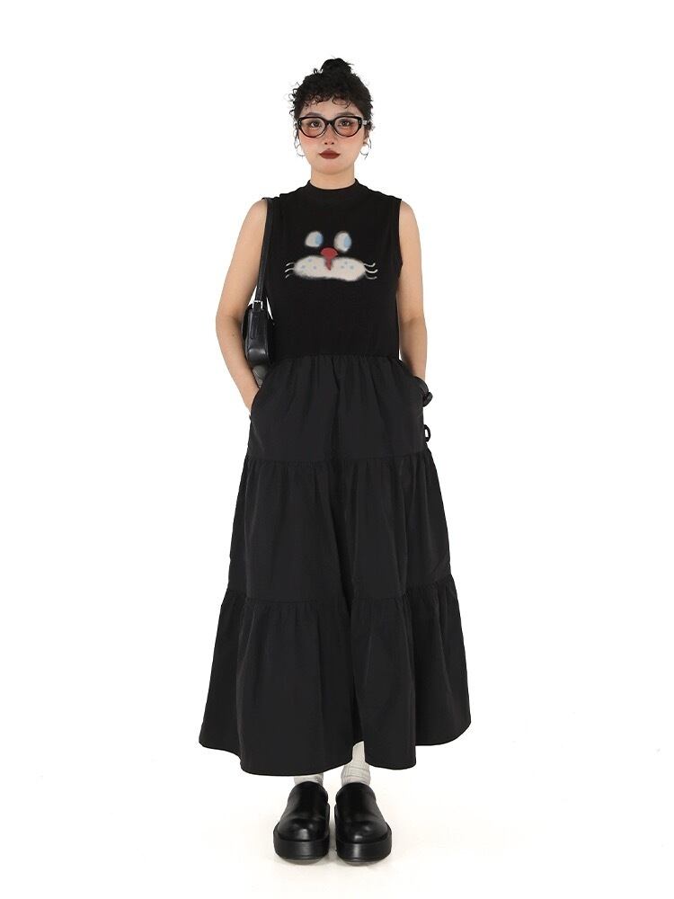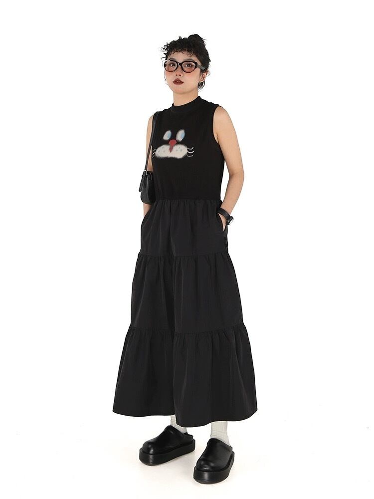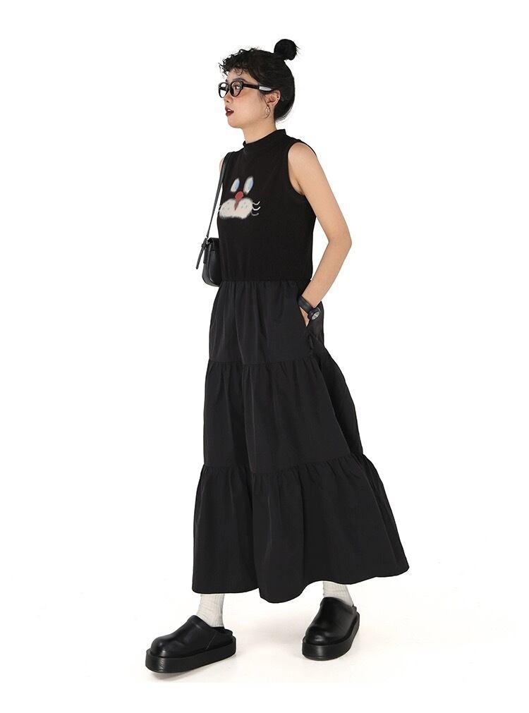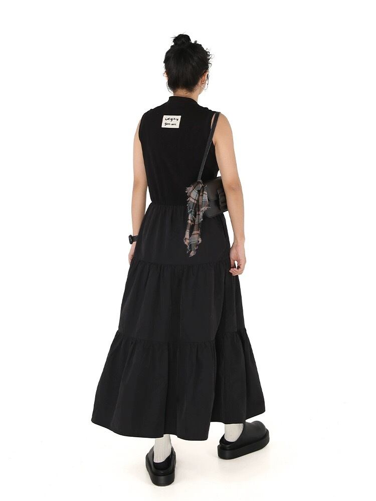 黒 マキシ カジュアル ワンピース ブラック スカート