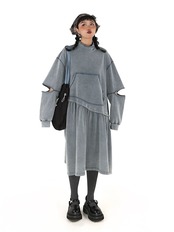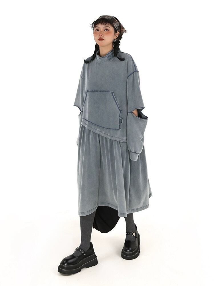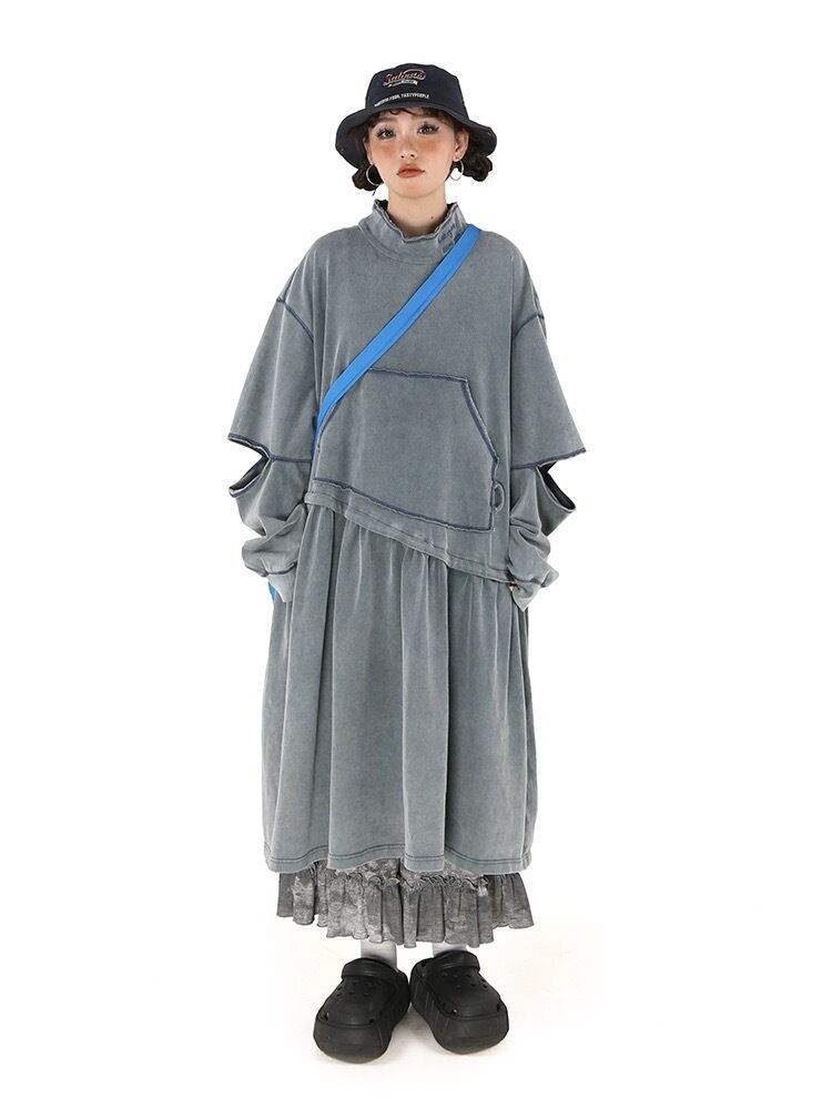 グレー 水色 カジュアル XL ゆったり スウェット ワンピース