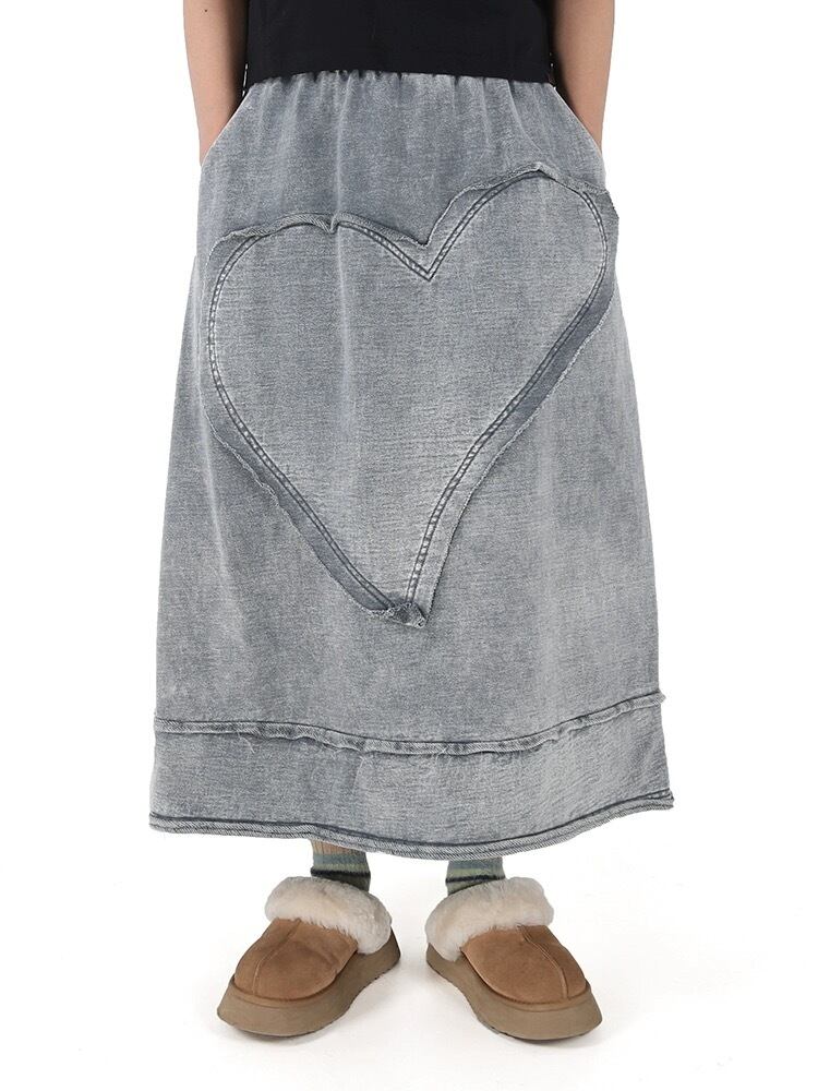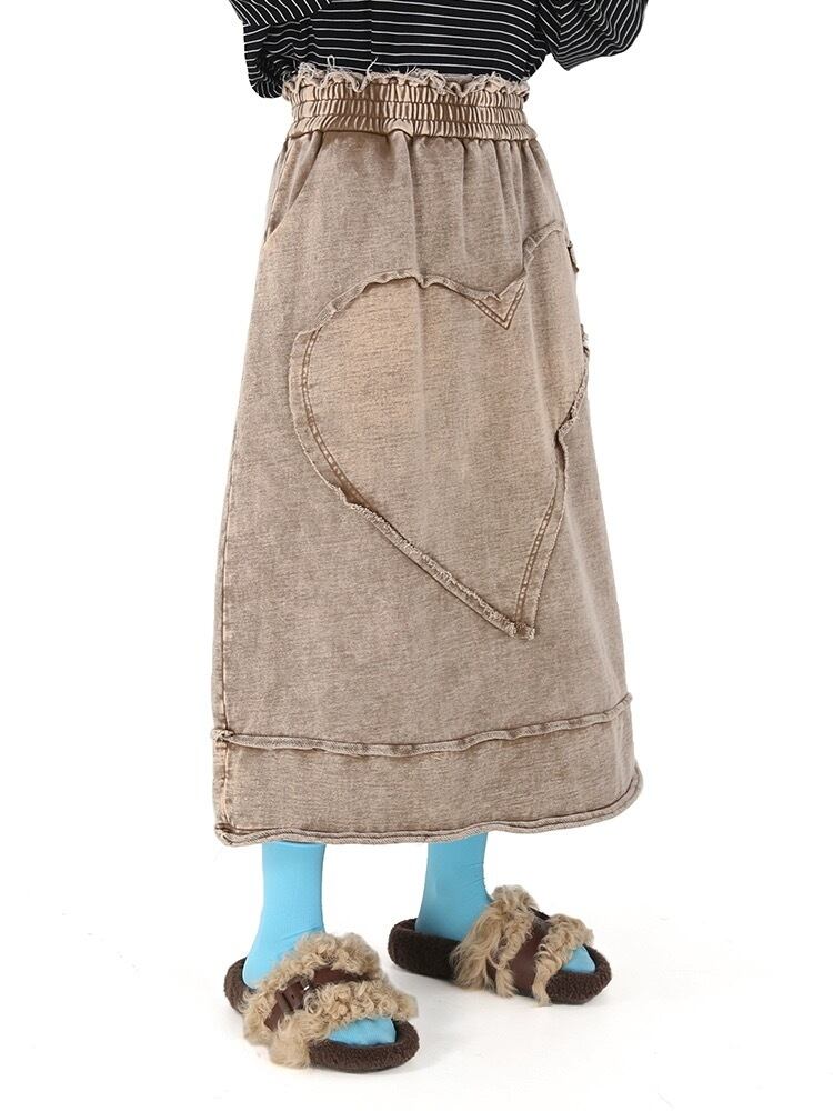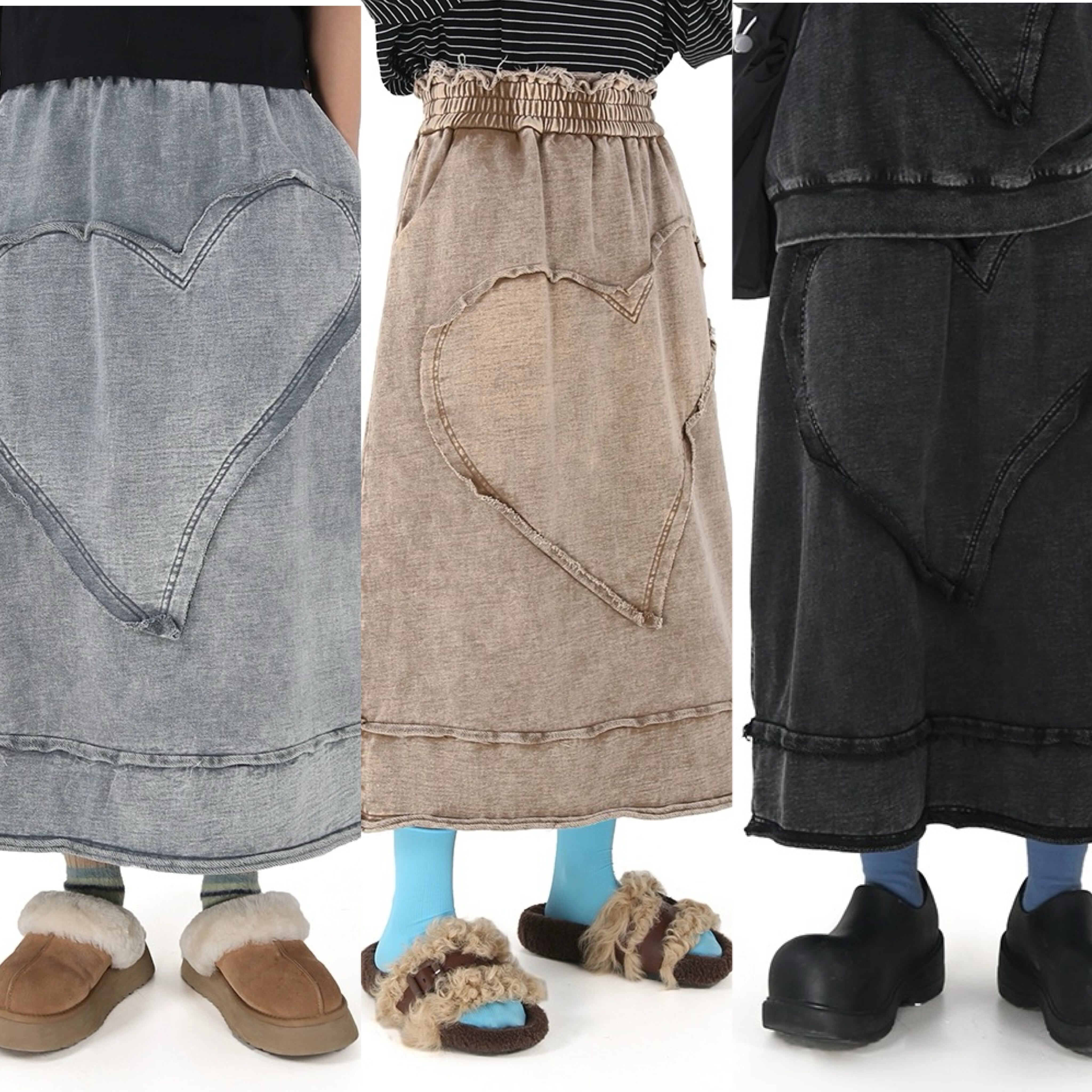 ハート カジュアル ベージュ 水色 黒 スカート
