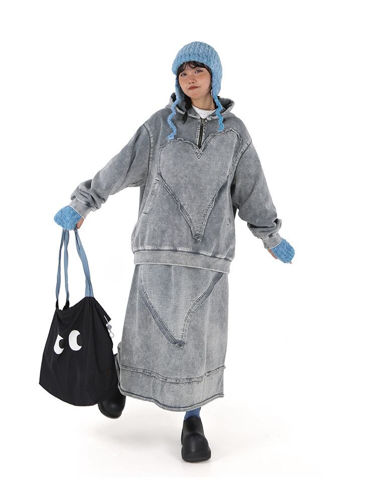 スウェット デニム パーカー 水色 黒 ベージュ カジュアル