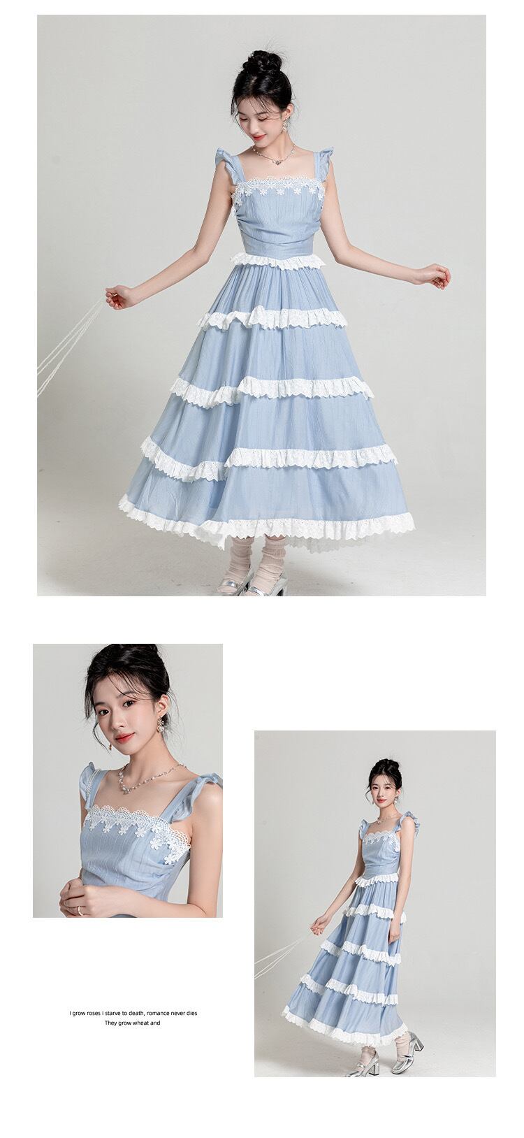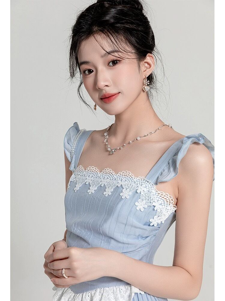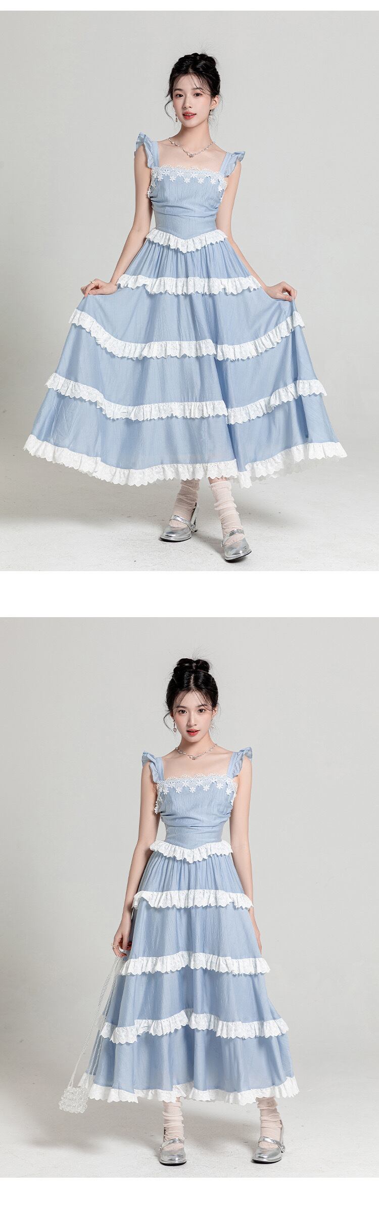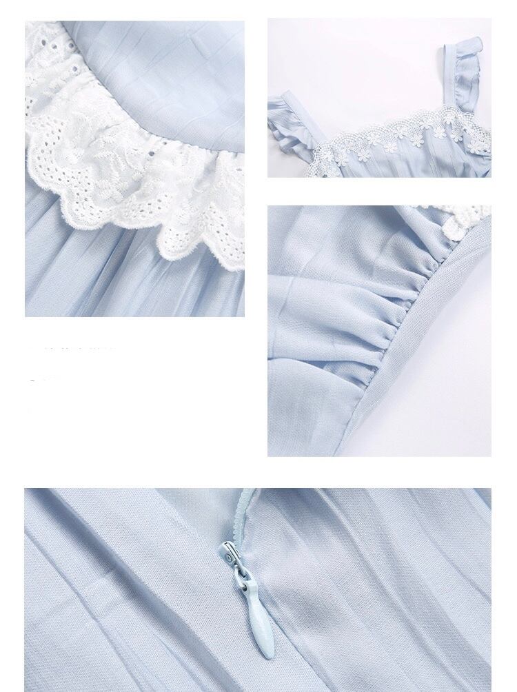 水色 ワンピース リボン 爽やか マキシ ロング お嬢
