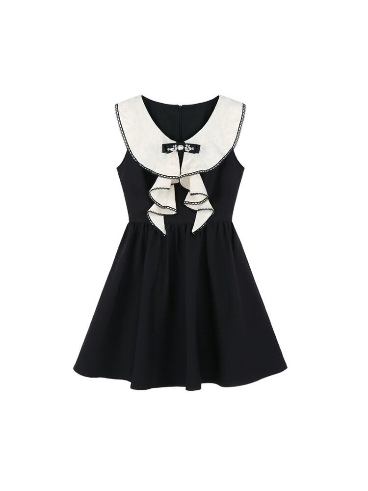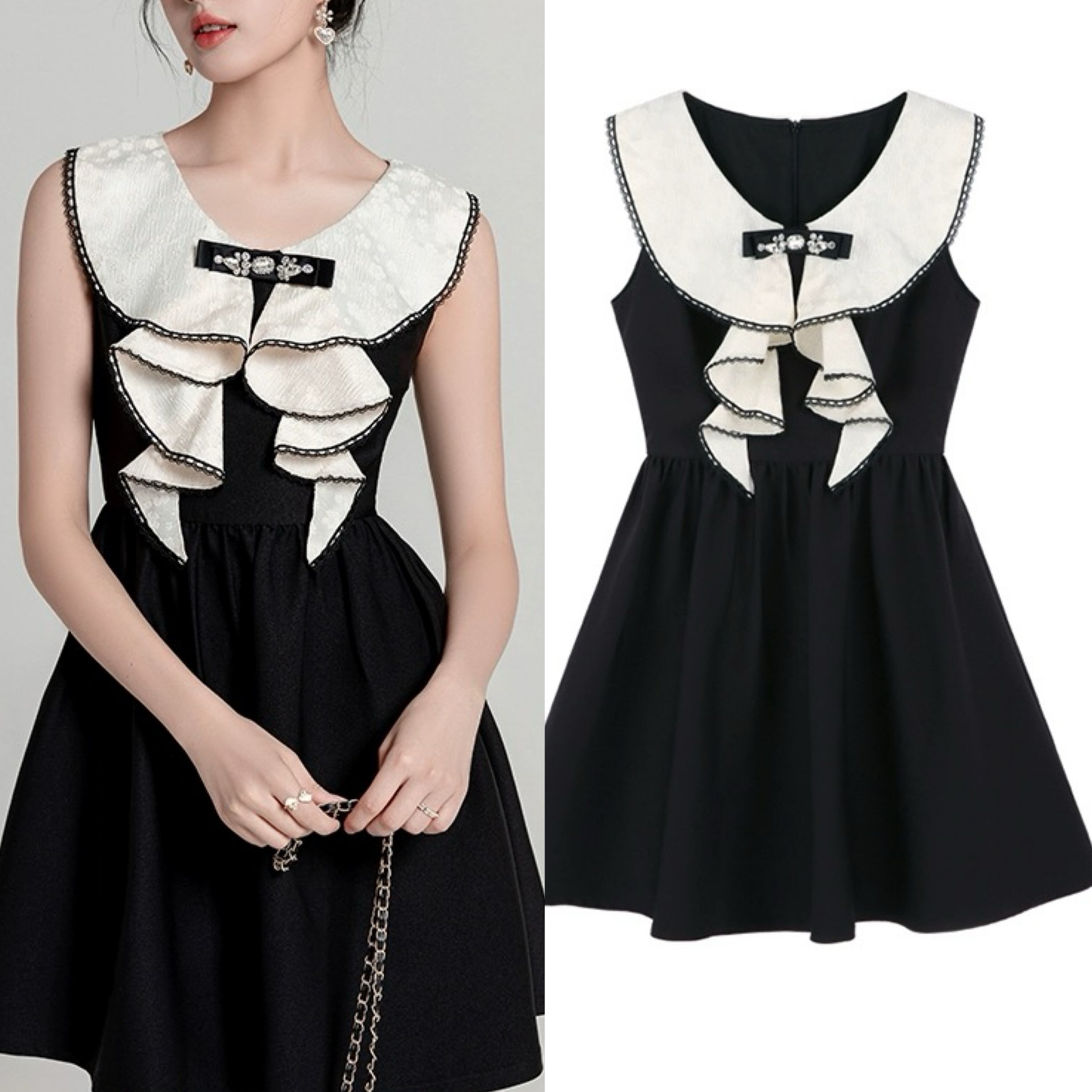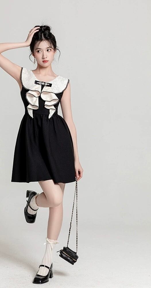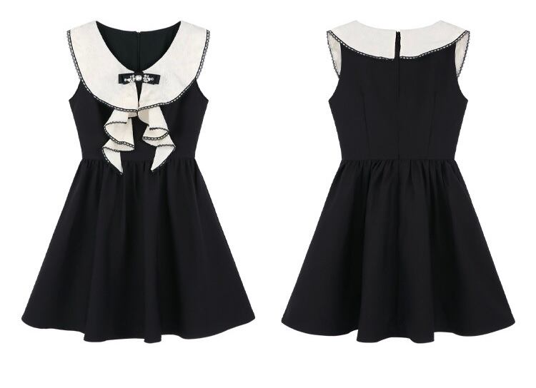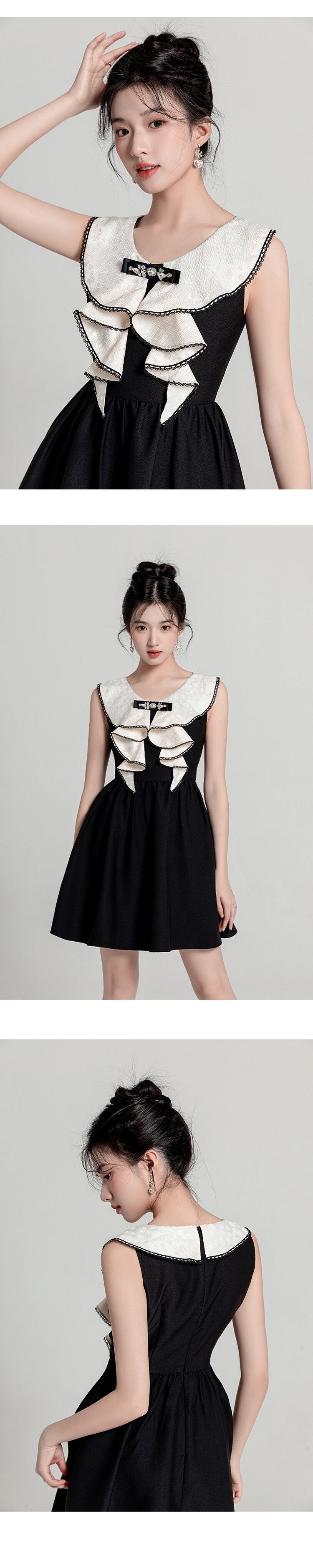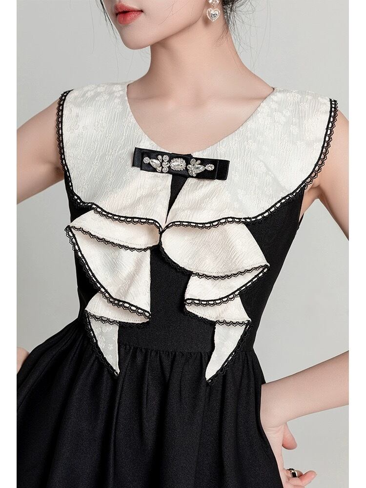 白 黒 リボン ラインストーン お嬢様 ワンピース