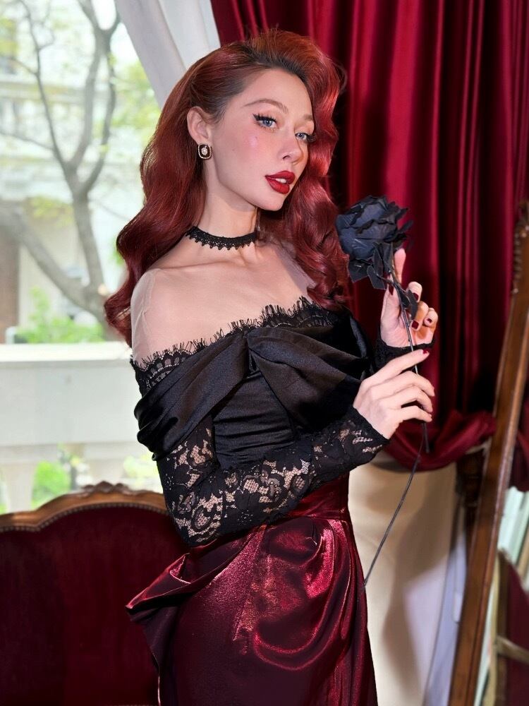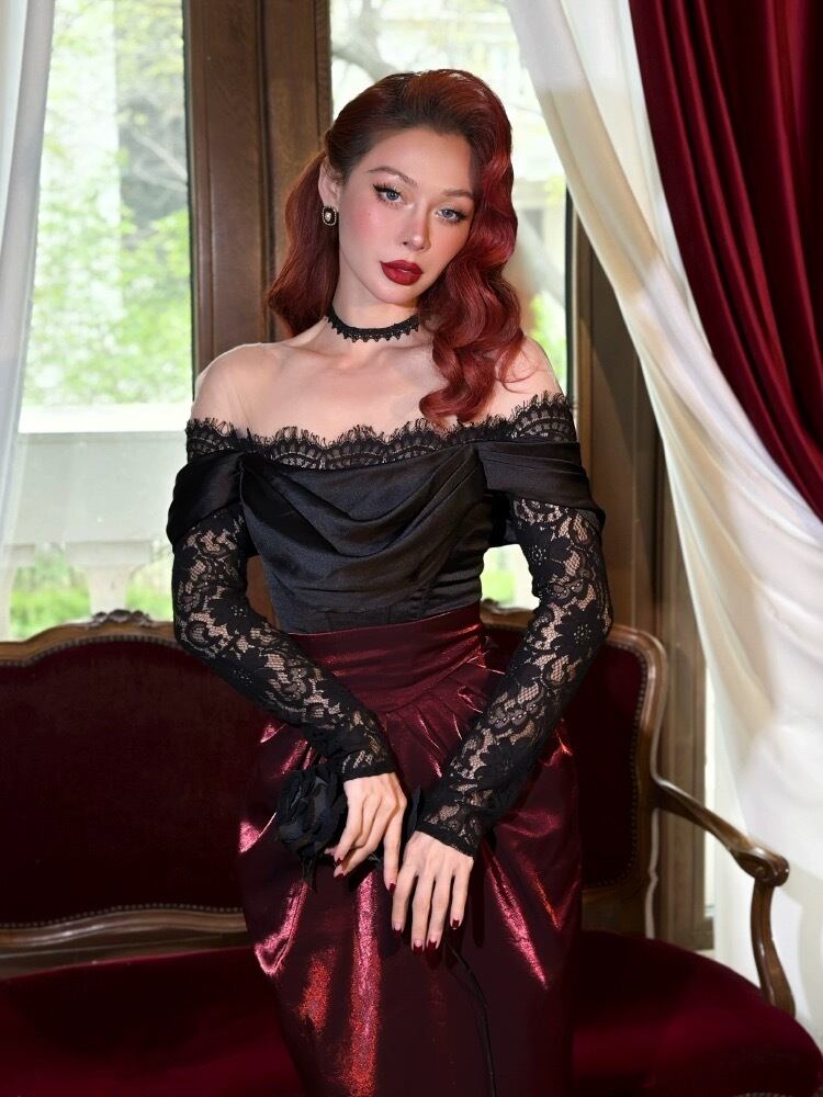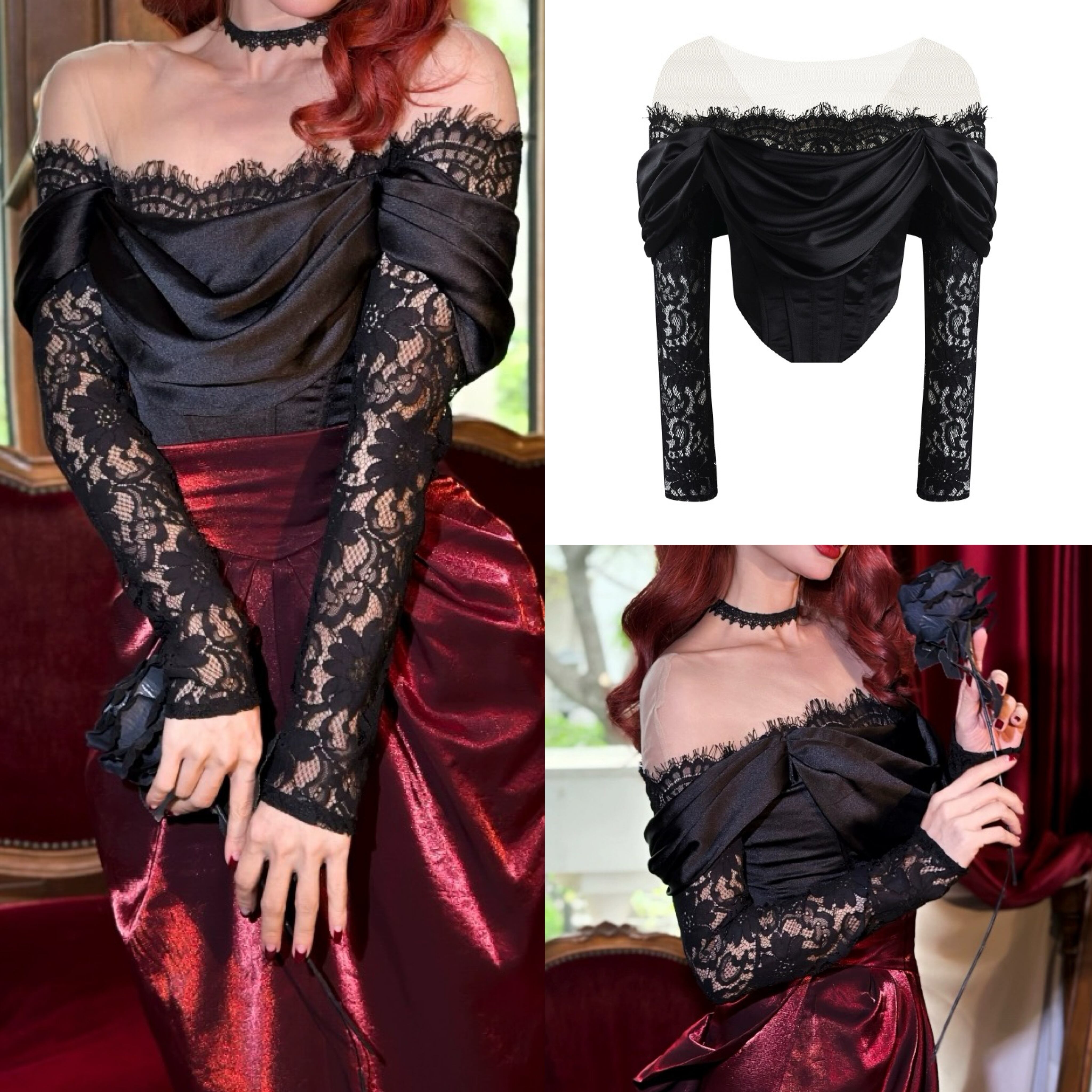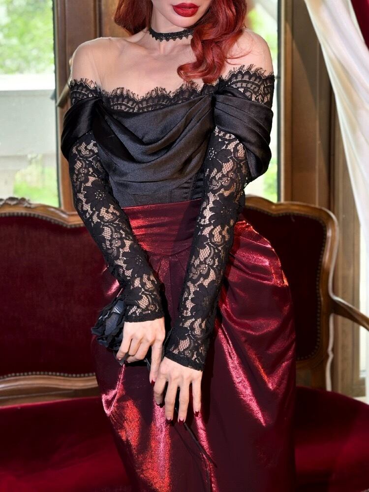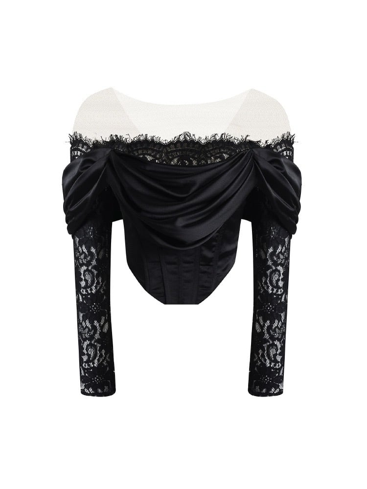 黒 オフショルダー レース ブラウス トップス エレガント コルセット ベアトップ