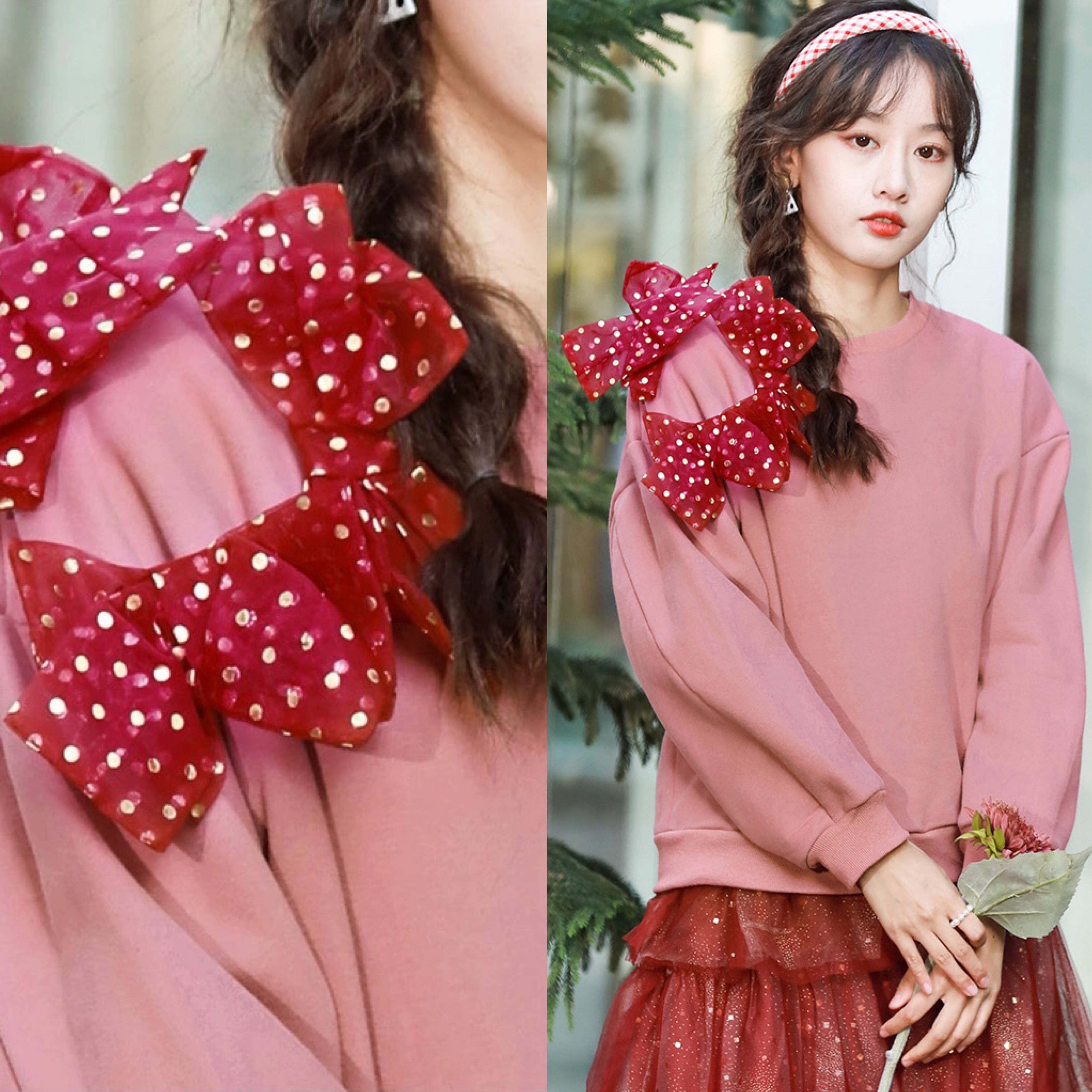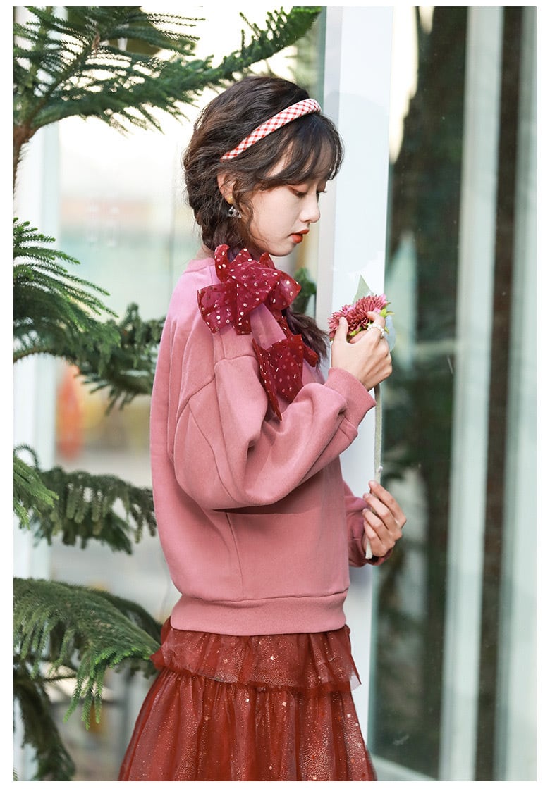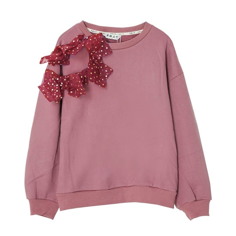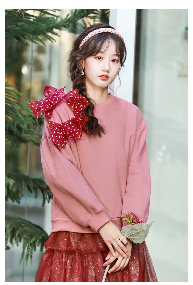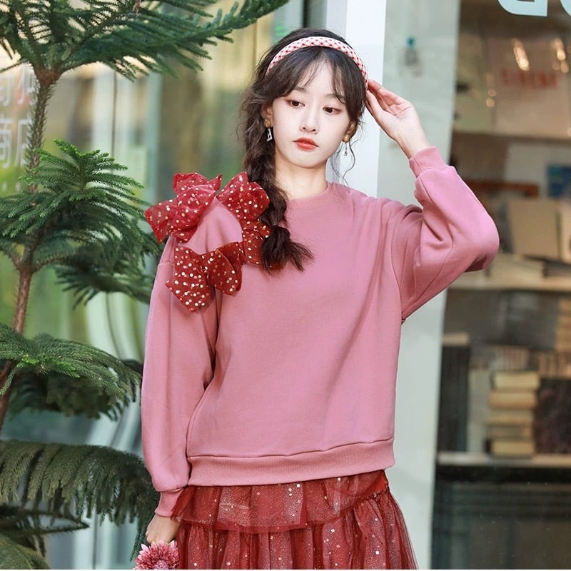赤 水玉 ドット トレーナー スウェット ピンク 原宿 カジュアル パーカー