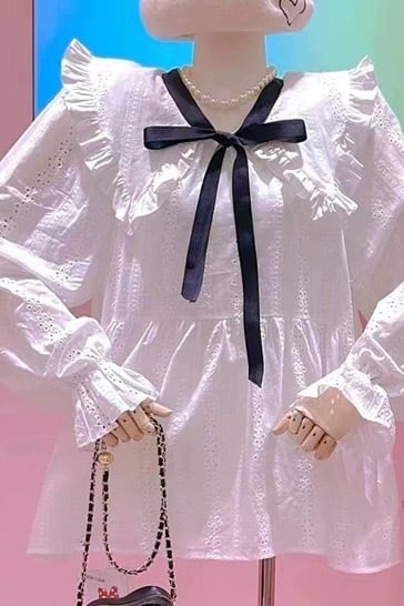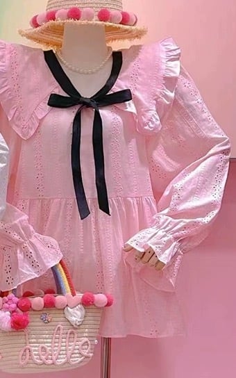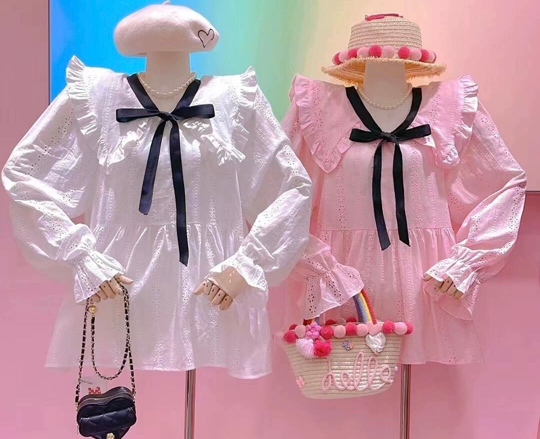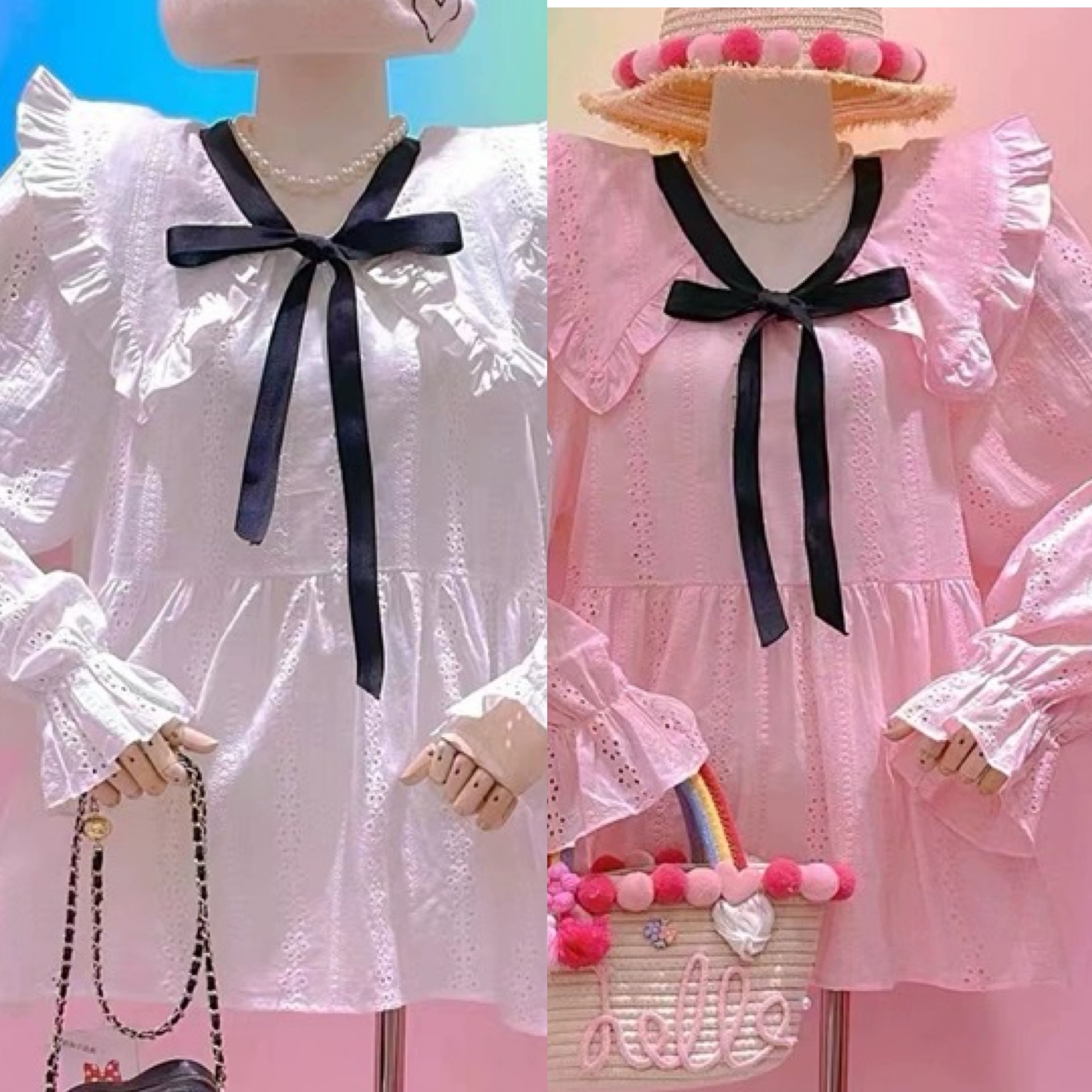 ブラウス ピンク ワンピース リボン 白 ガーリー