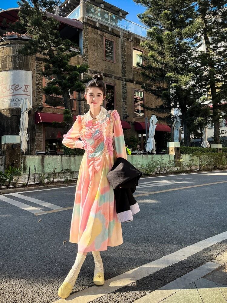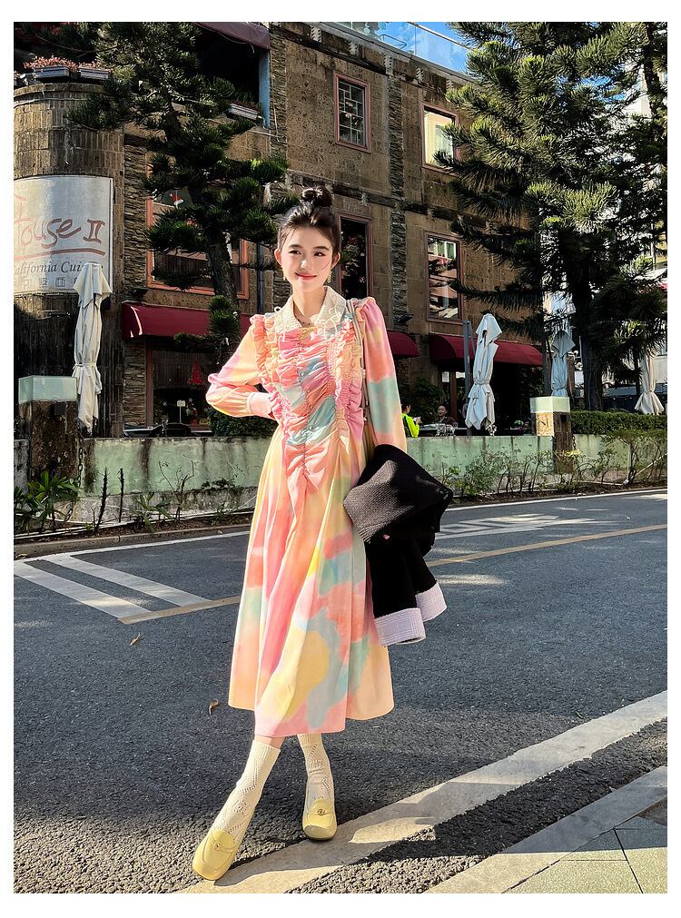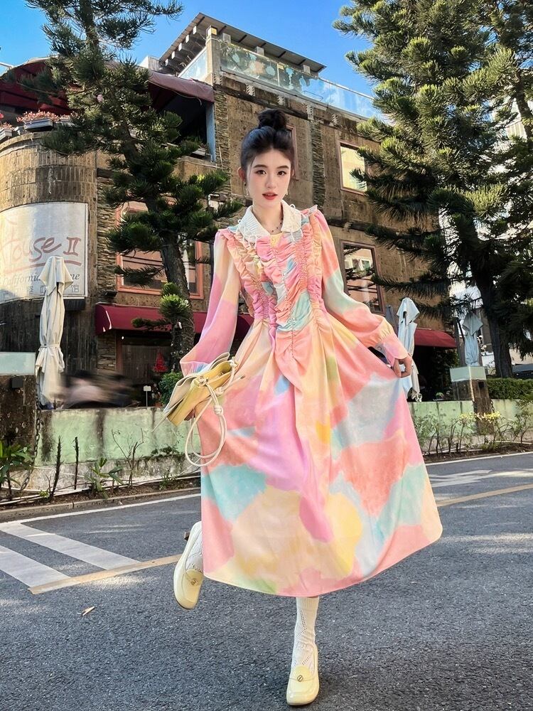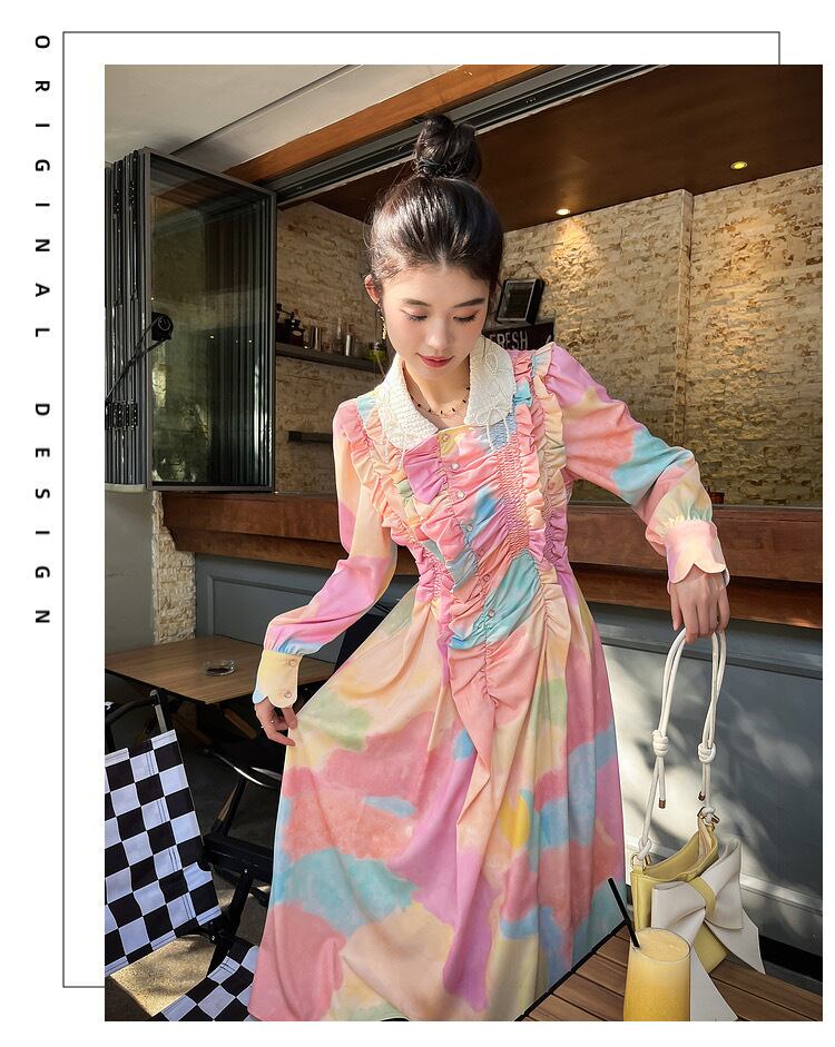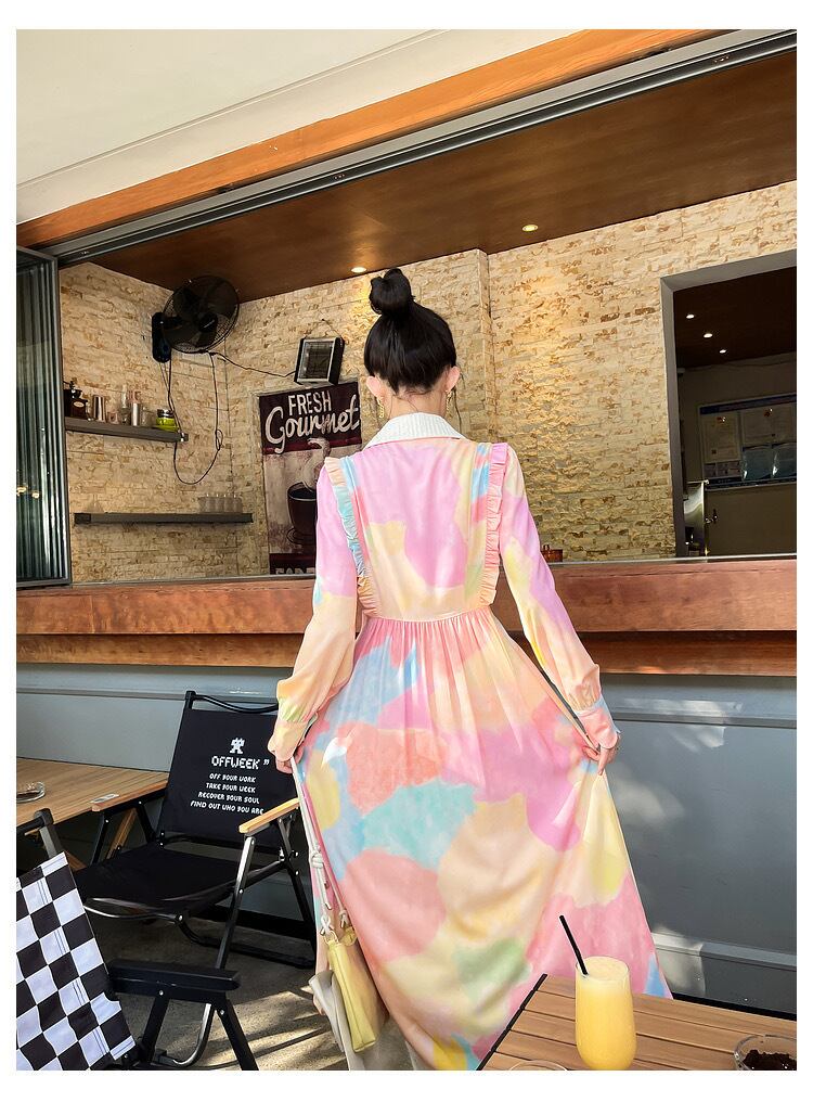 カラフル レインボー ワンピース オレンジ ピンク ガーリー XL