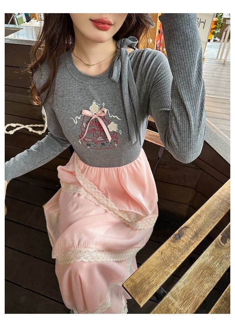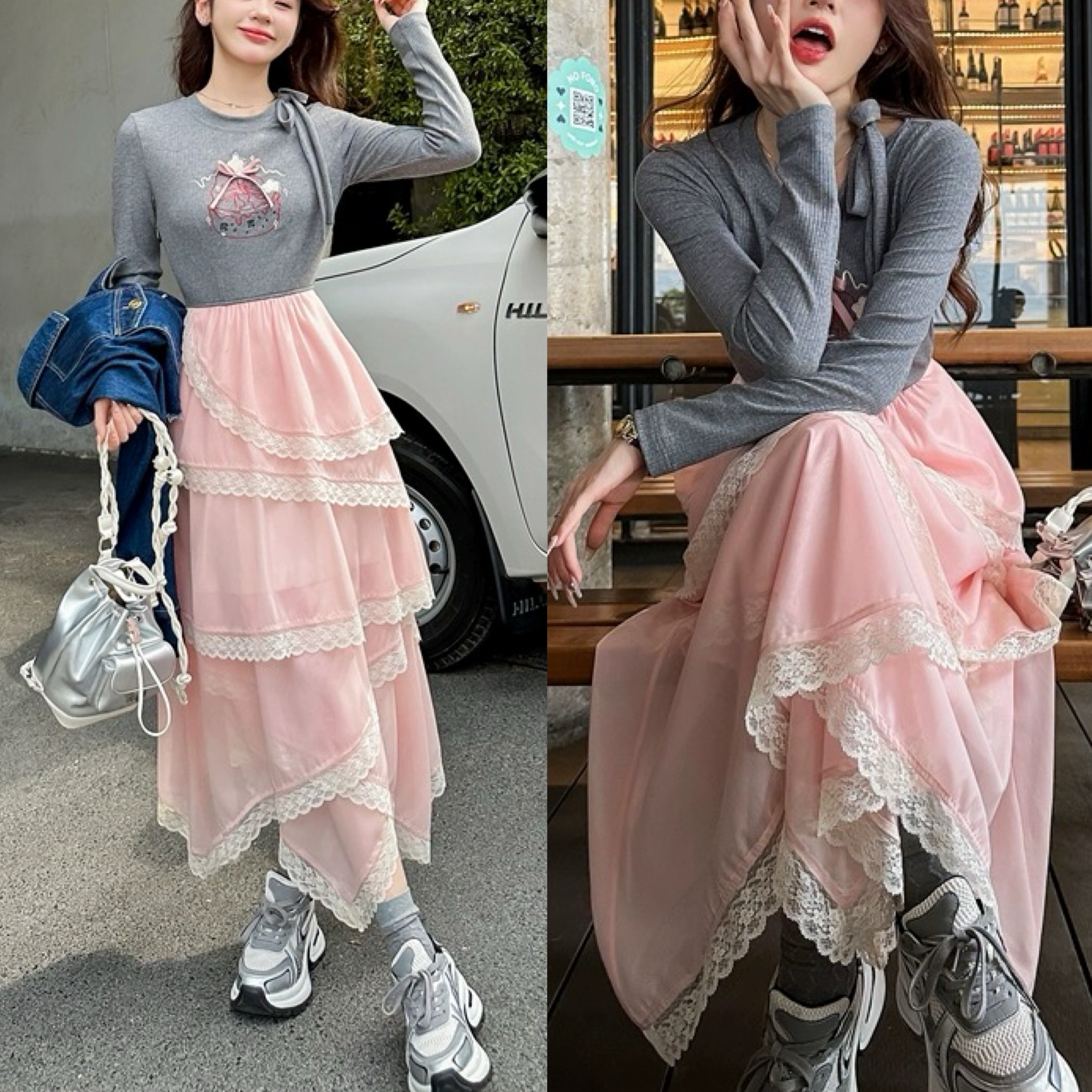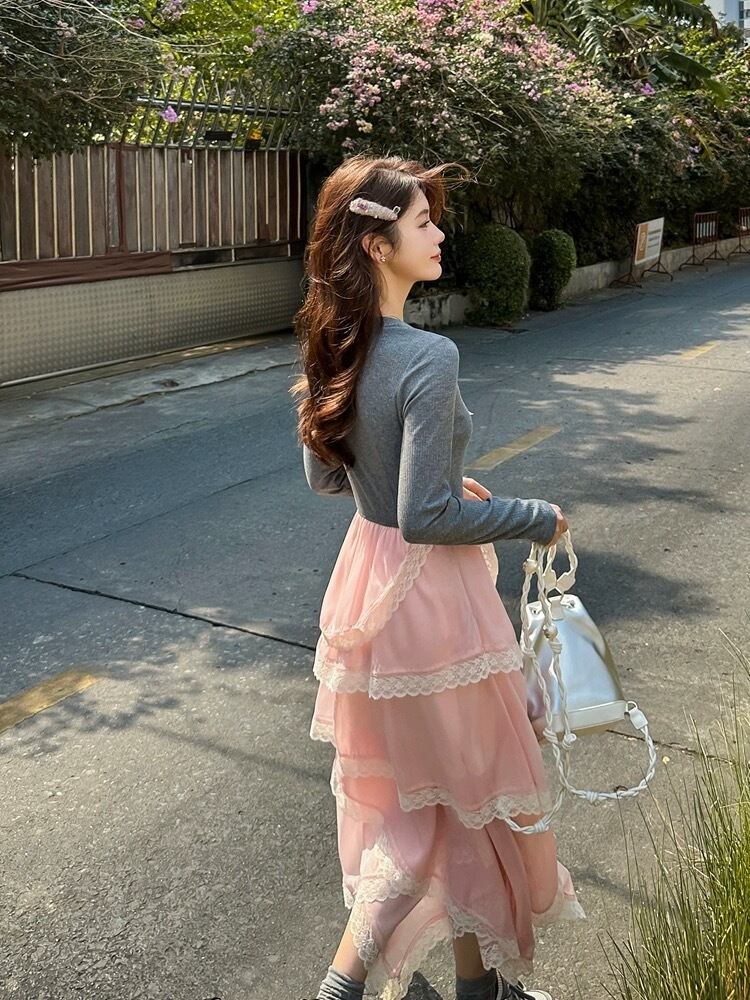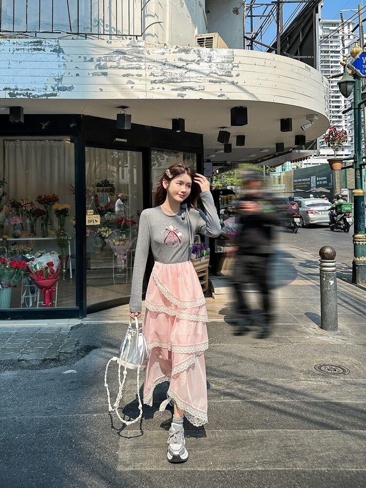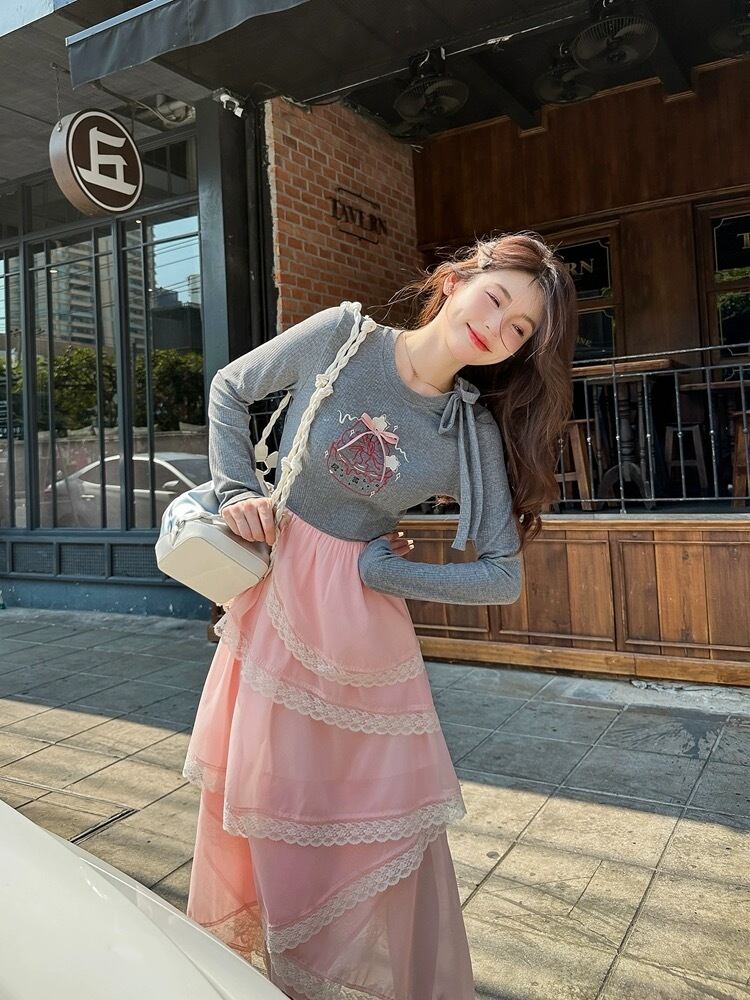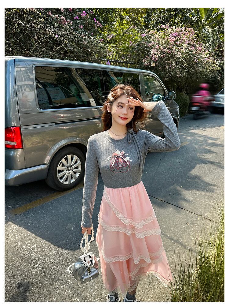 グレー カジュアル ピンク ワンピース XL ガーリー スウェット