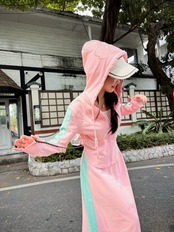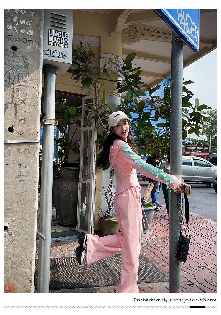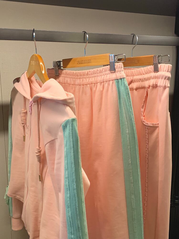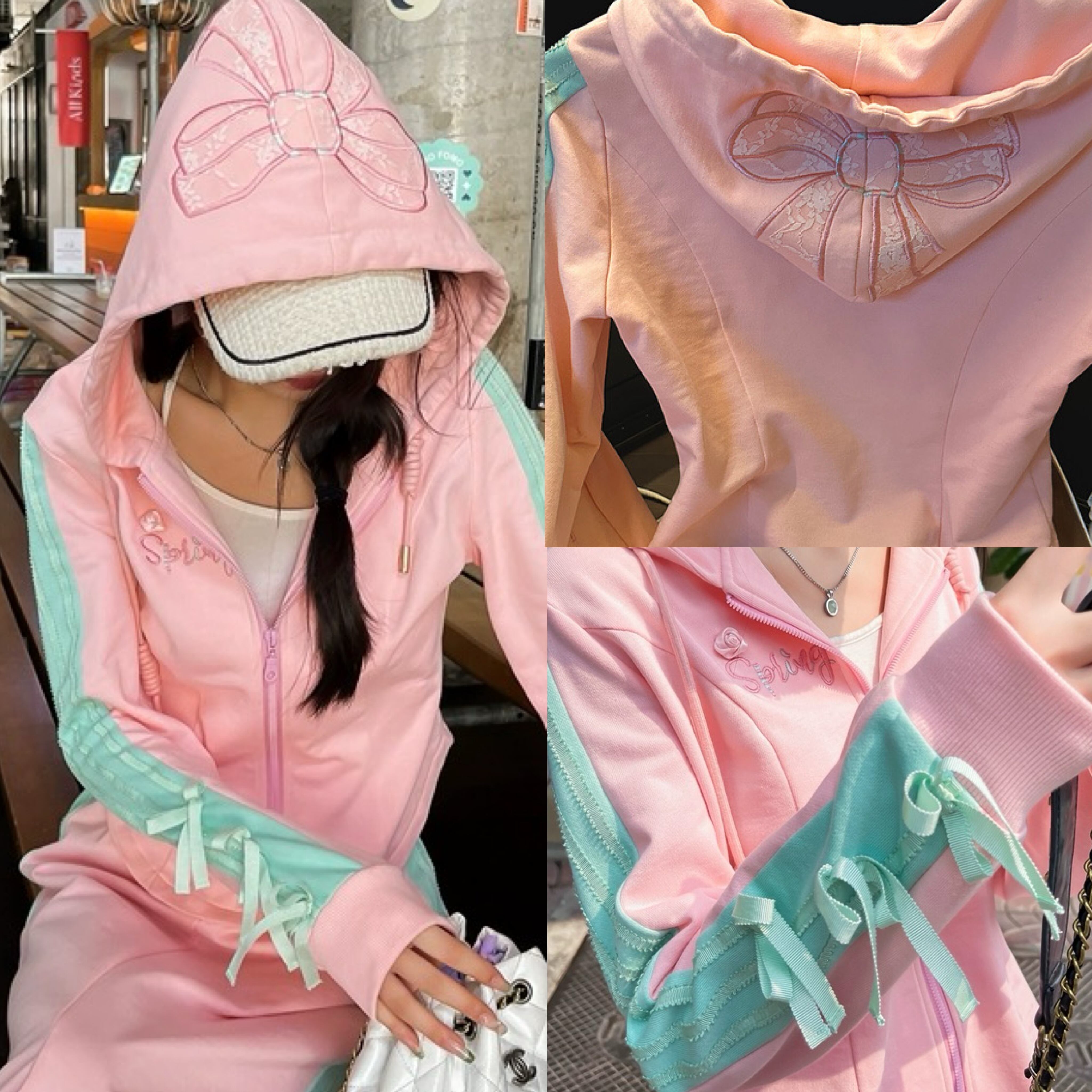 【トップス】ピンク スウェット パーカー 緑 リボン XL カジュアル トレーナー