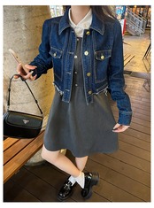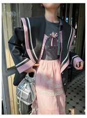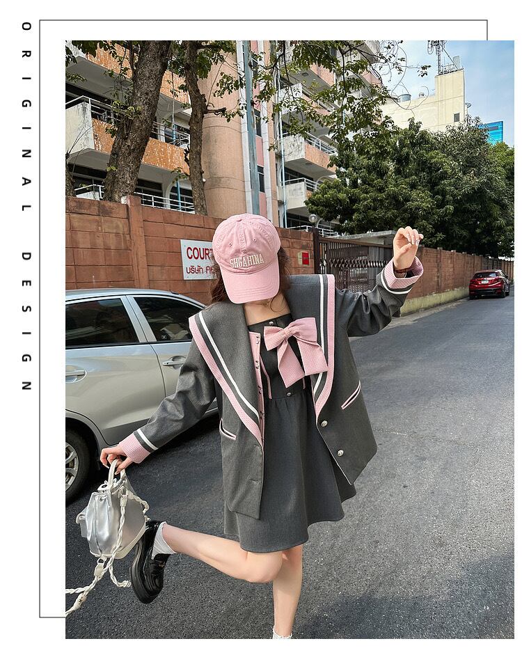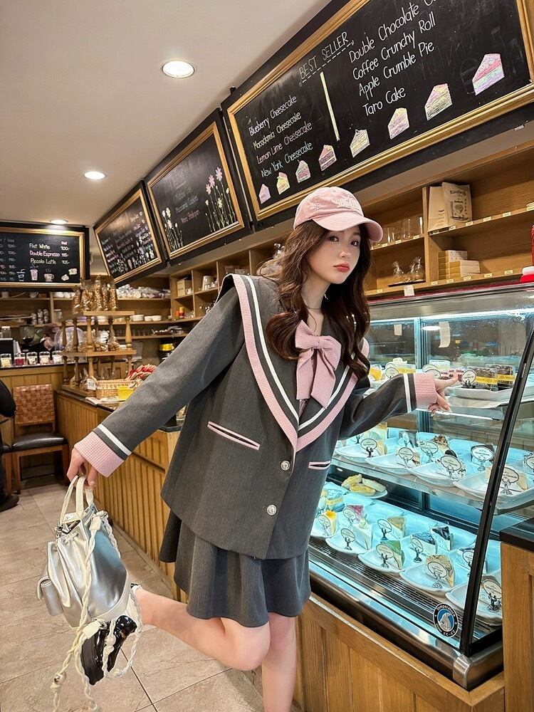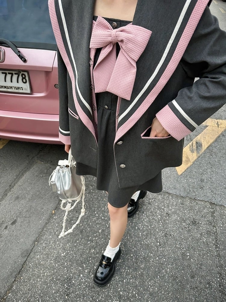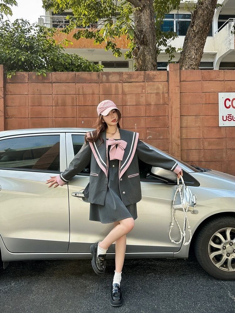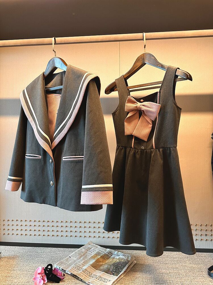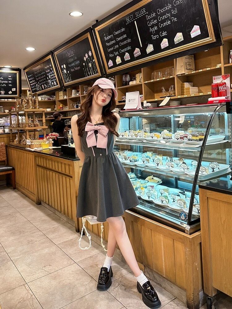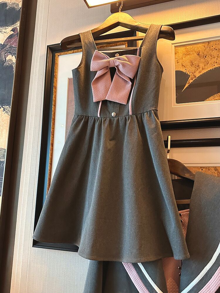 【ワンピース】リボン ピンク スクール 制服 ガーリー グレー 可愛い 原宿 XL