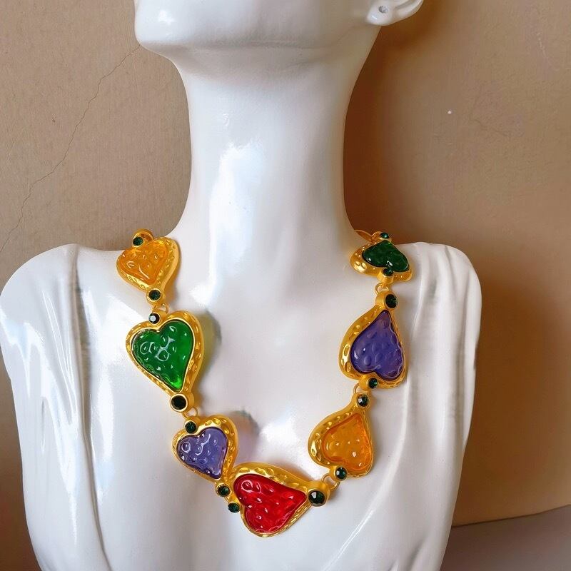 ネックレス ハート ゴールド カラフル 赤 オレンジ