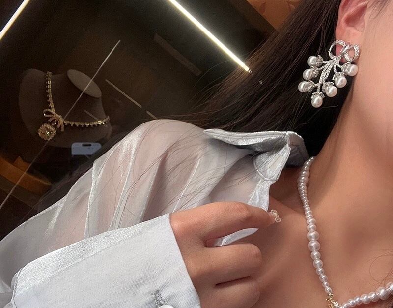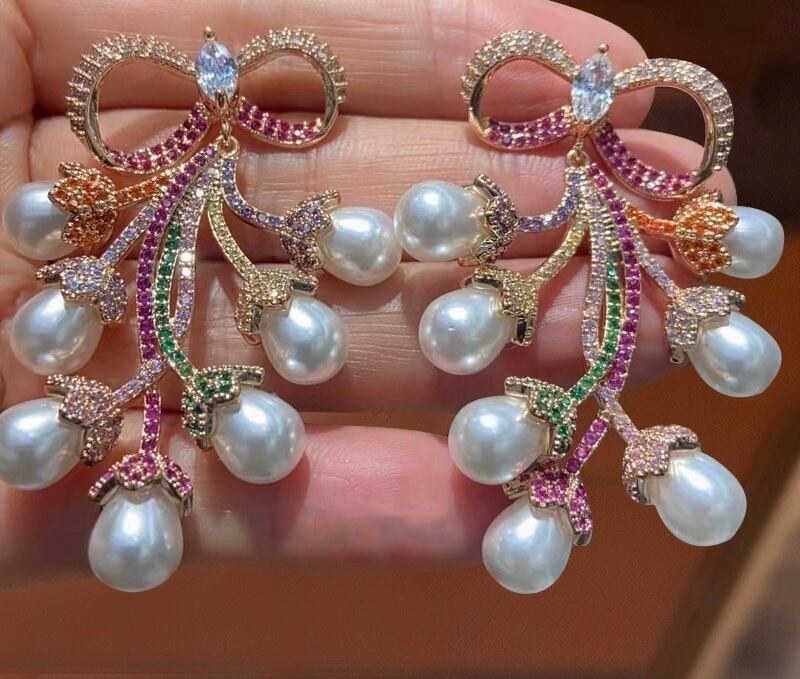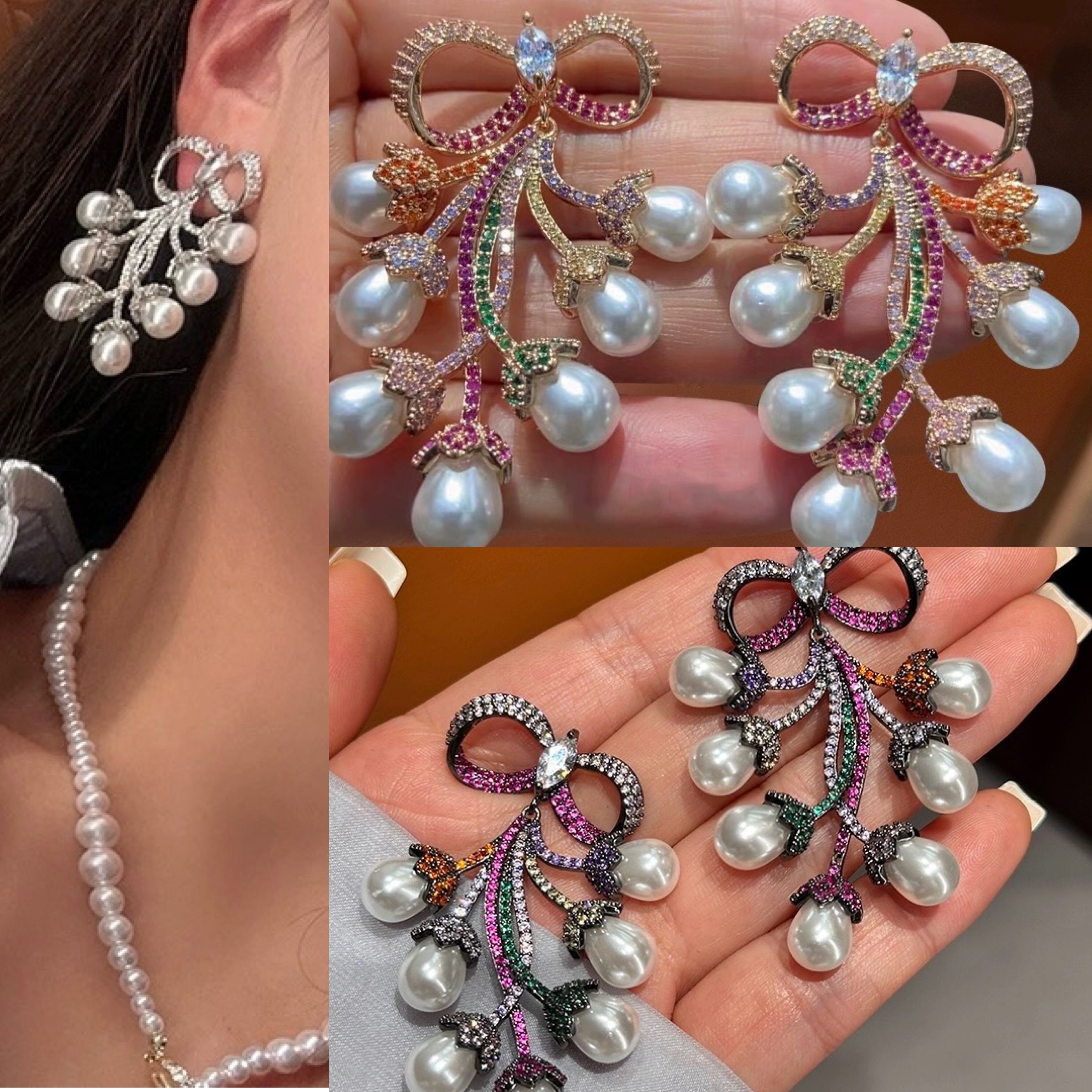 パール ゆらゆら ロング ピアス 白 赤 黒