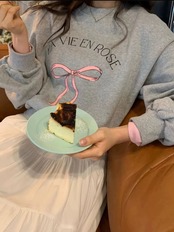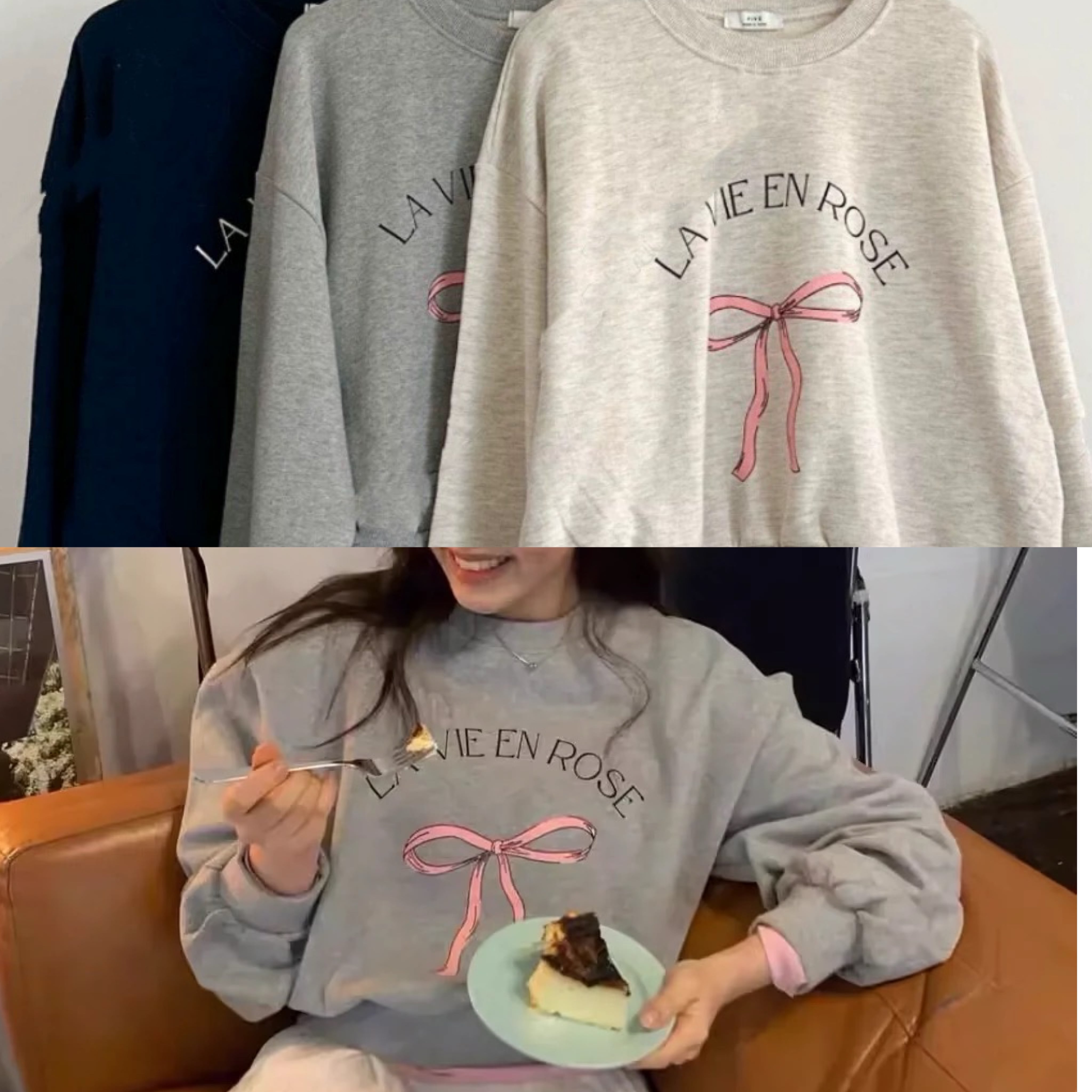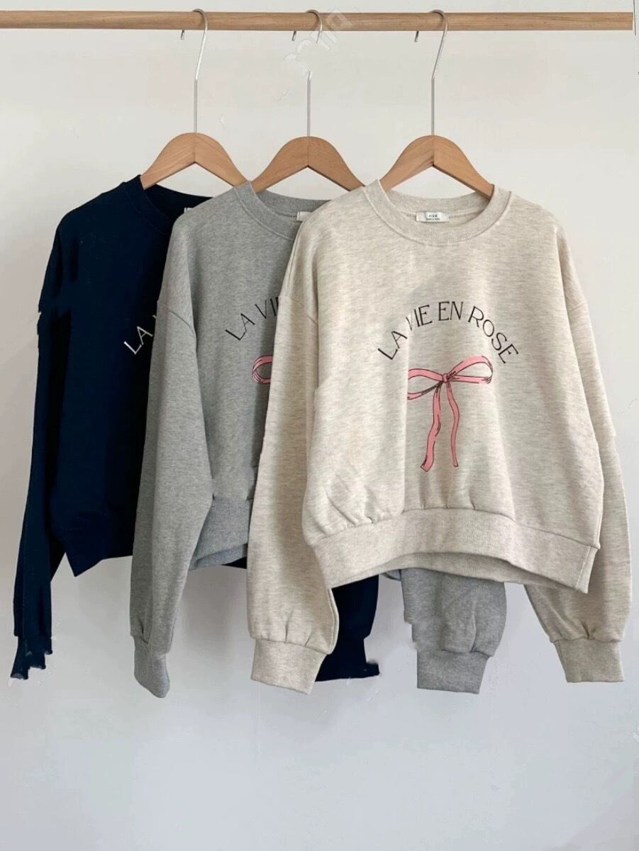 リボン スウェット トレーナー カジュアル トップス グレー ベージュ ピンク