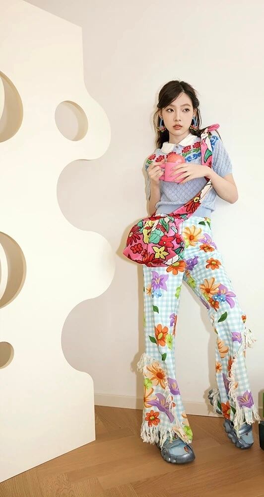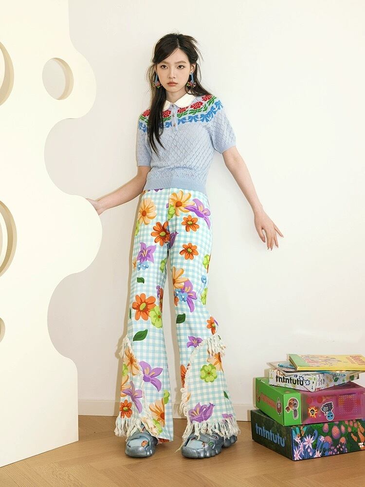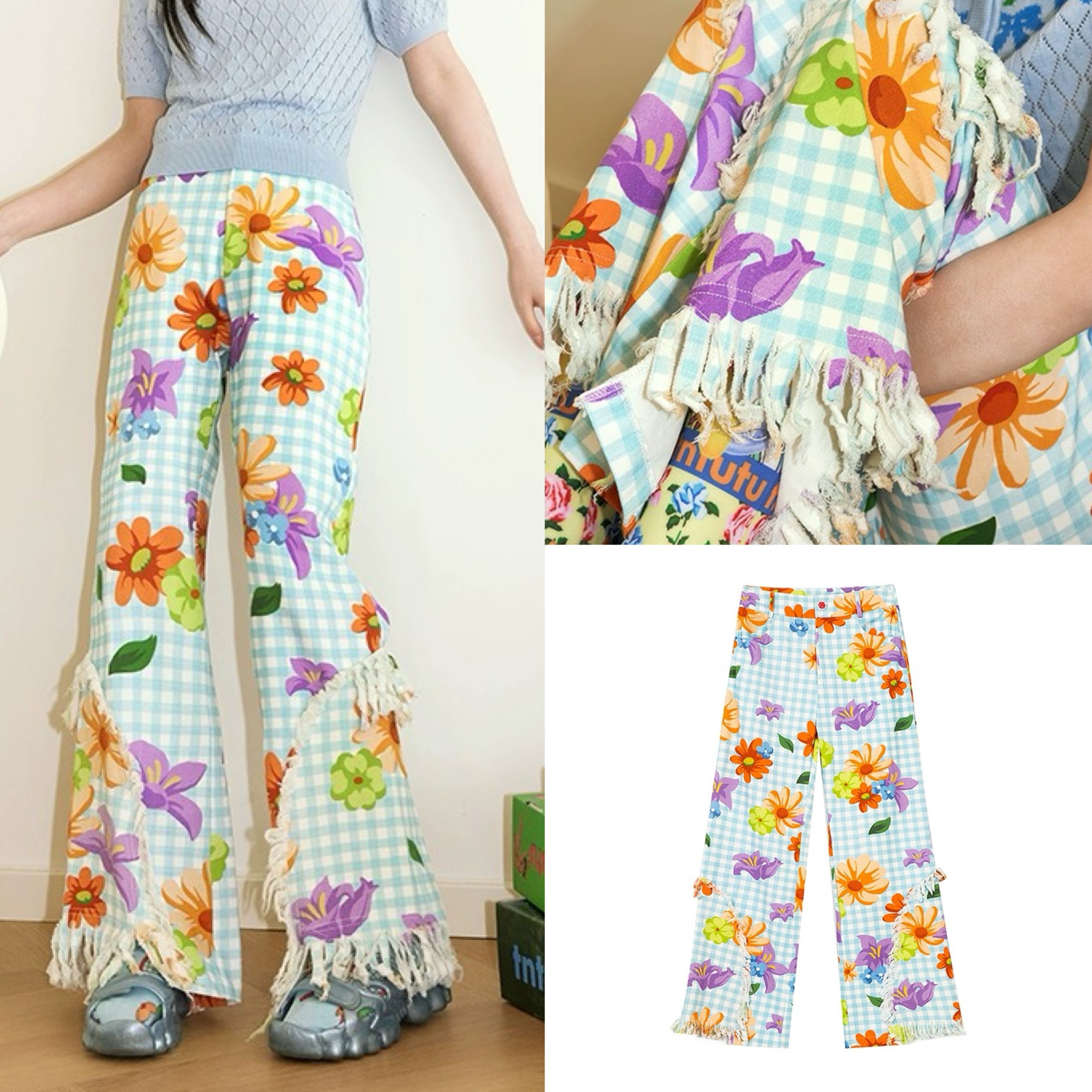 チェック ボトムス 水色 オレンジ カジュアル ズボン 可愛い 原宿 スウェット