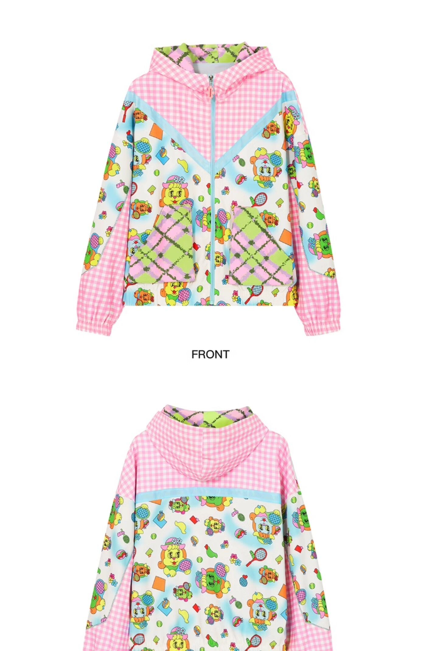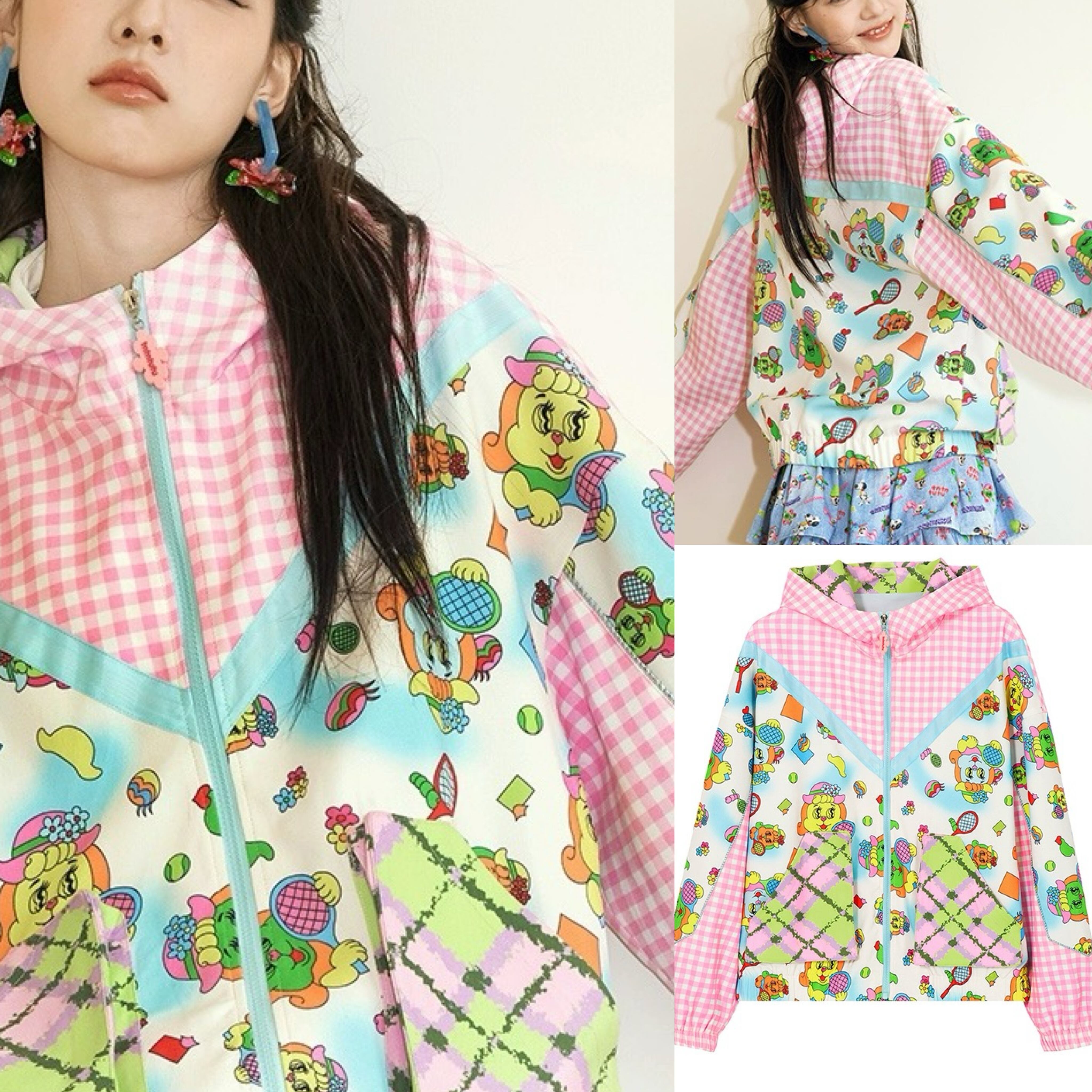 ピンク アニマル チェック 可愛い ジャンパー ジャケット 可愛い パーカー スウェット 緑 紫 ピンク 花柄 フラワー アウター 可愛い 原宿