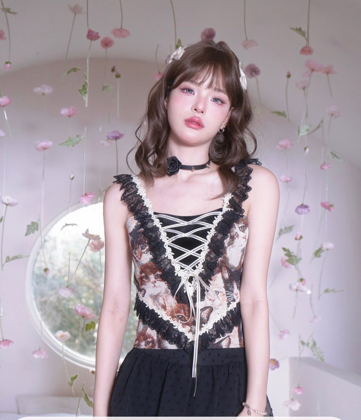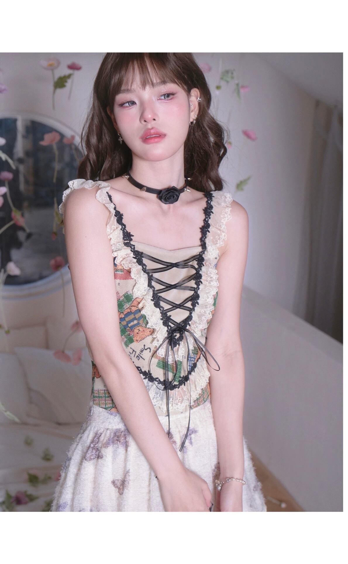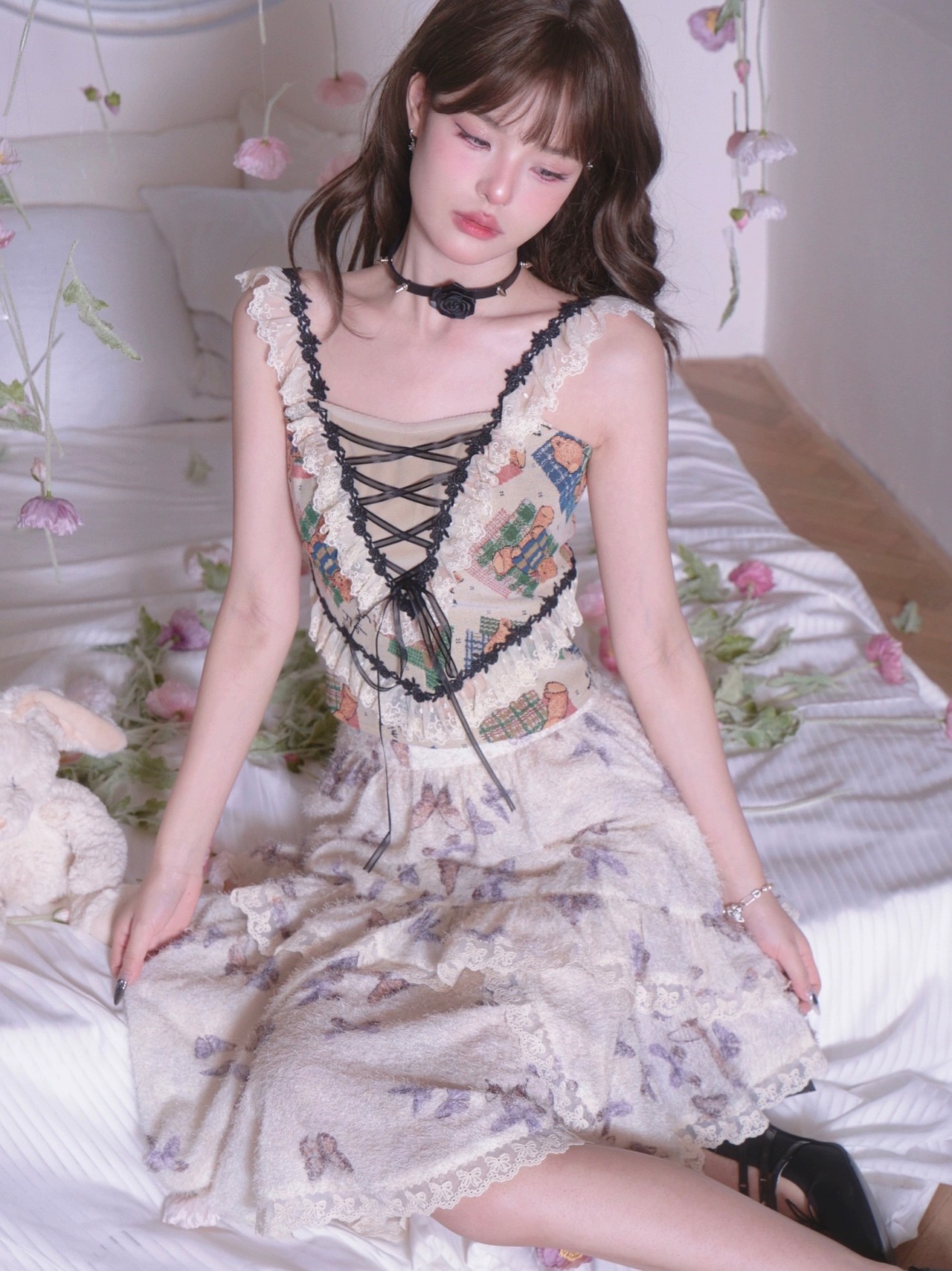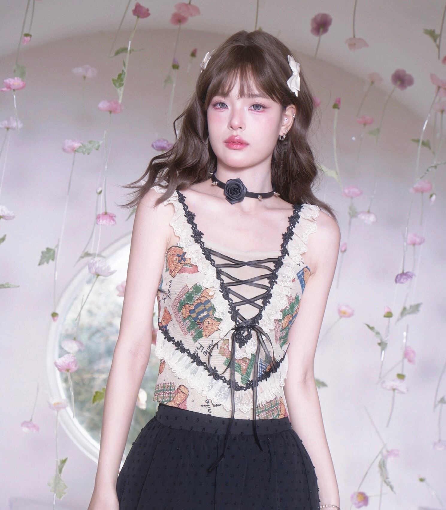 キャミソール ブラウス ベージュ くま ねこ ジャンパー ジャケット 可愛い パーカー スウェット 緑 紫 ピンク 花柄 フラワー アウター 可愛い 原宿 黒 ブラウス トップス リボン コルセット