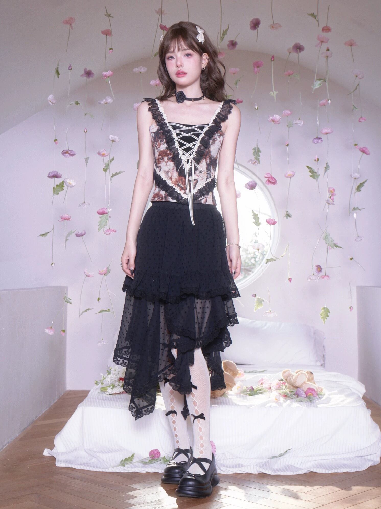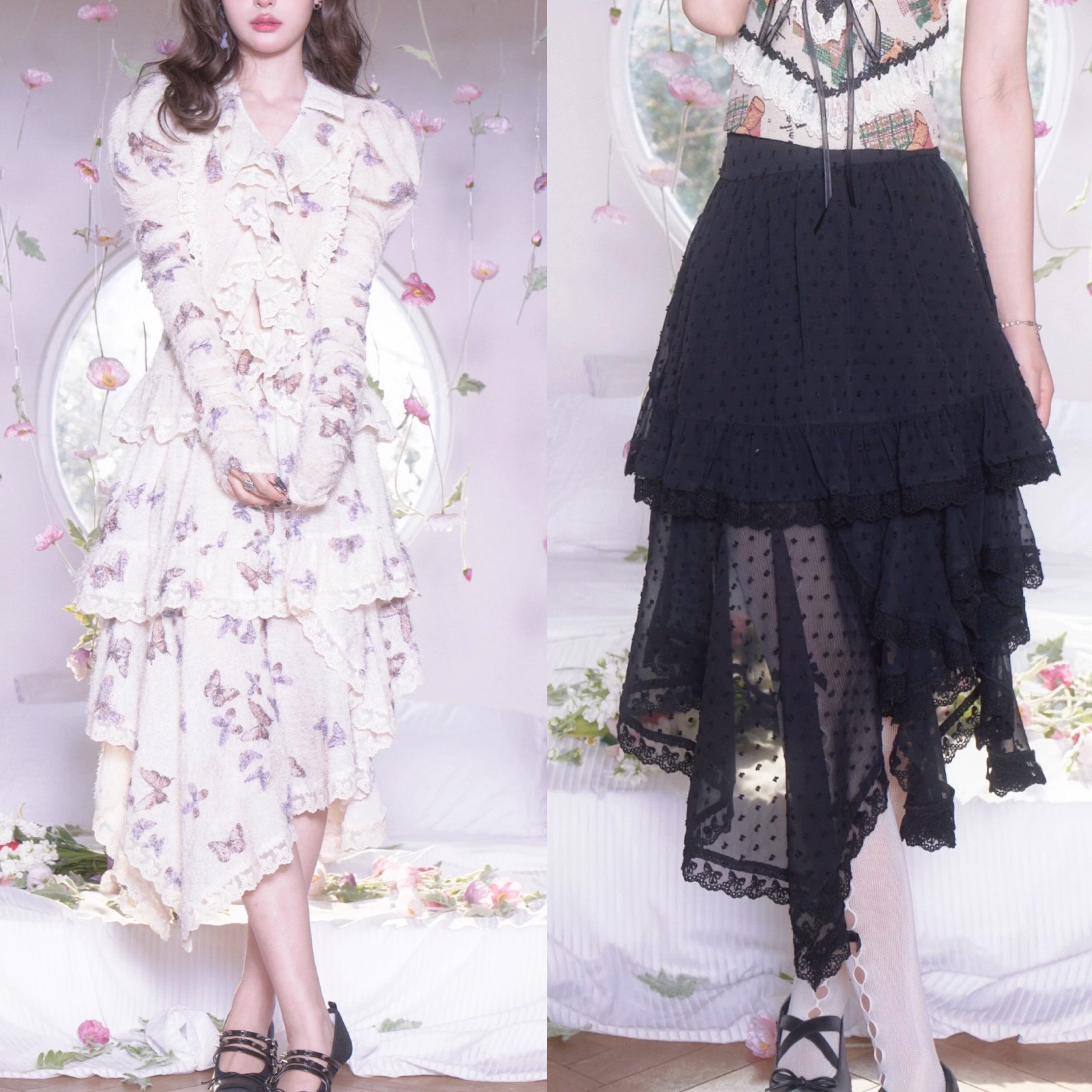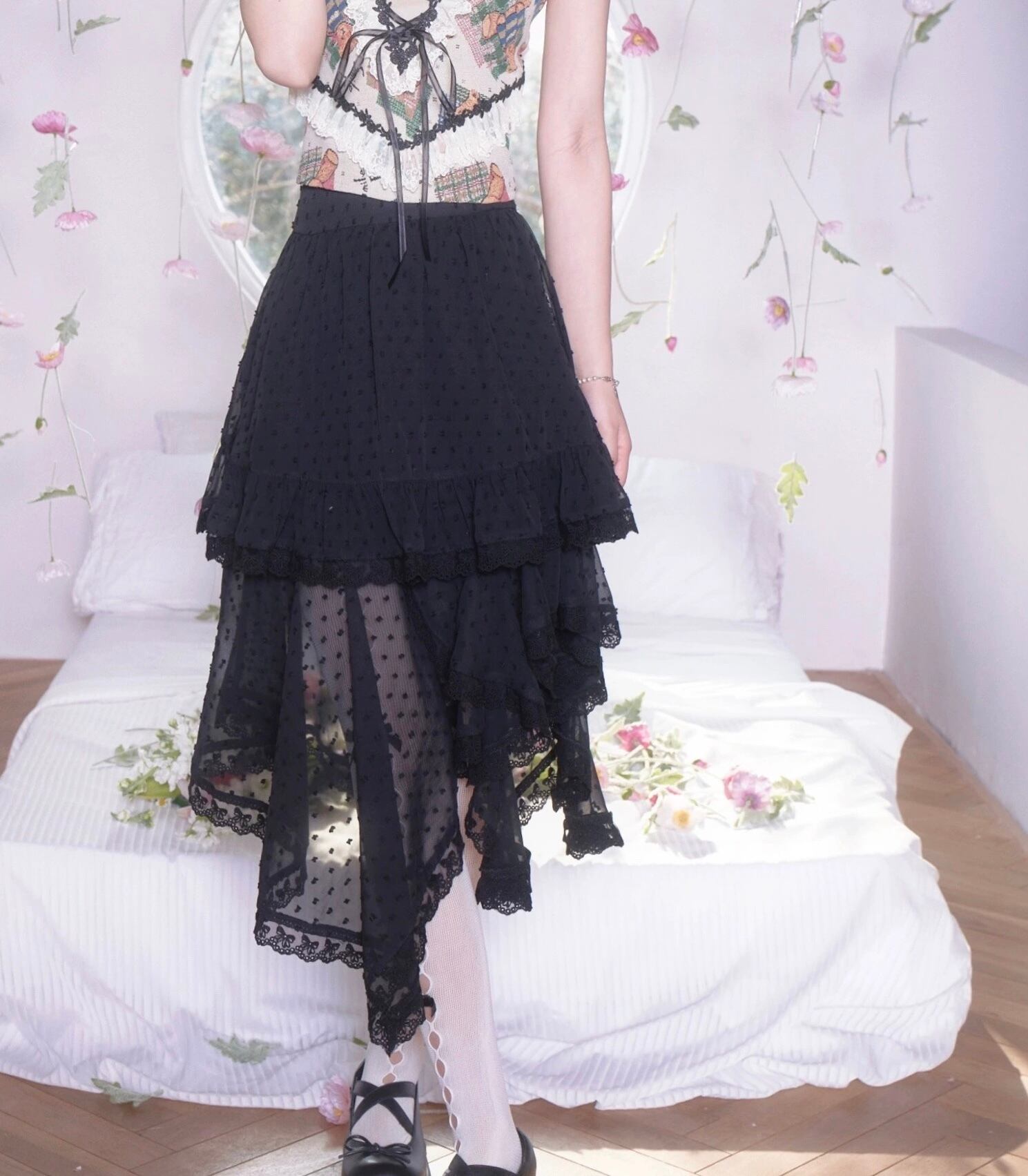 スカート 黒 ボトムス 花柄 紫 白 ガーリー 原宿