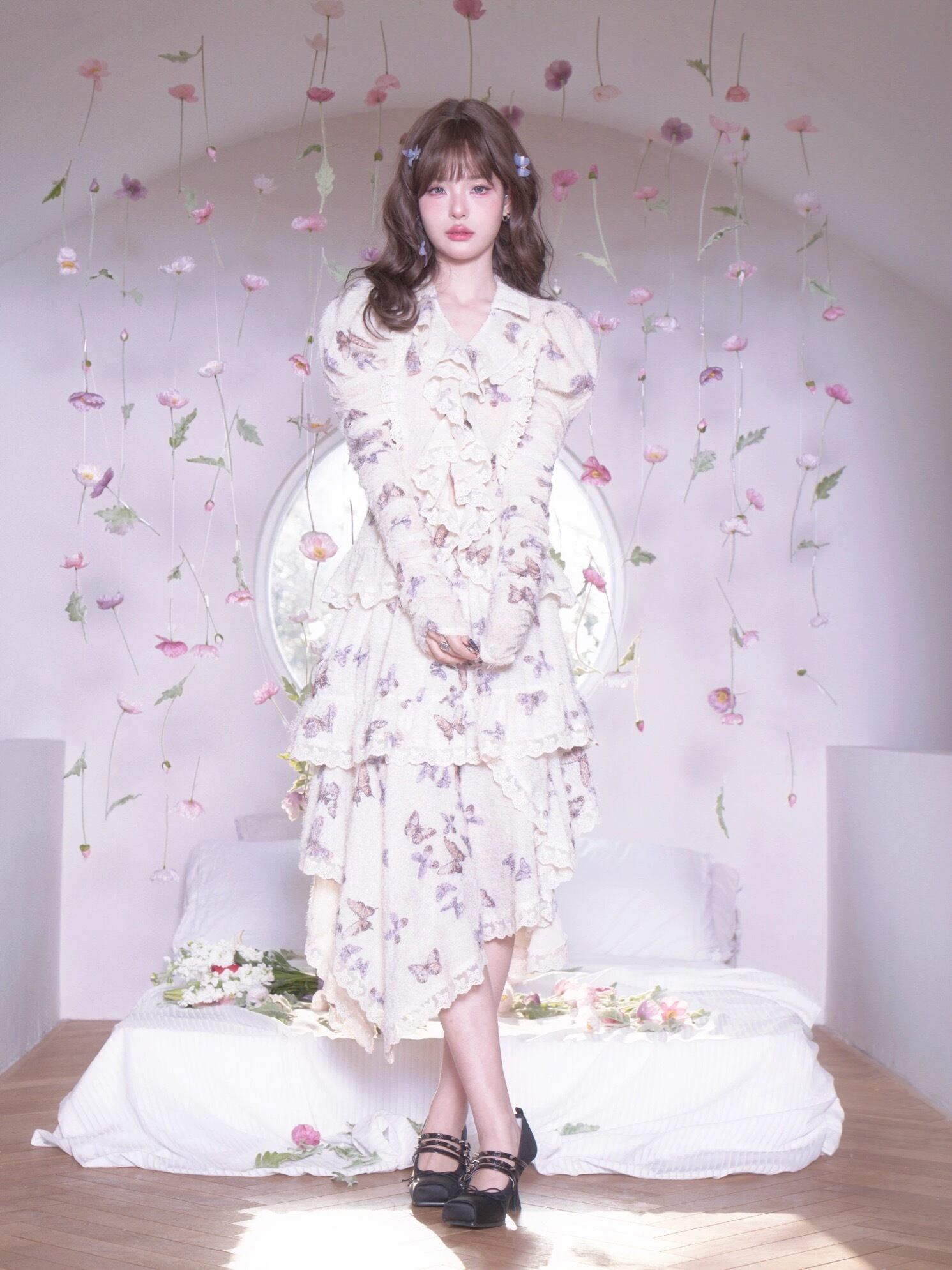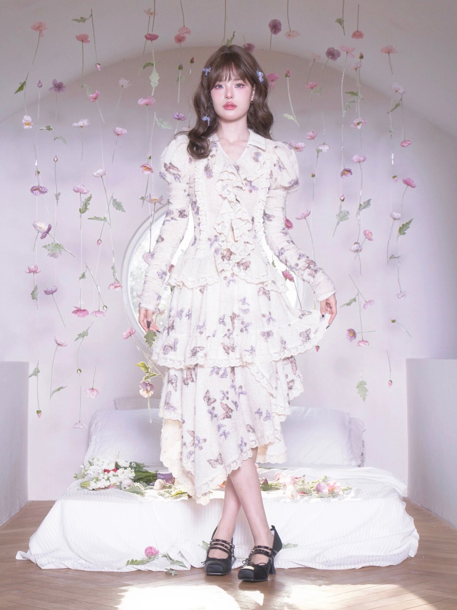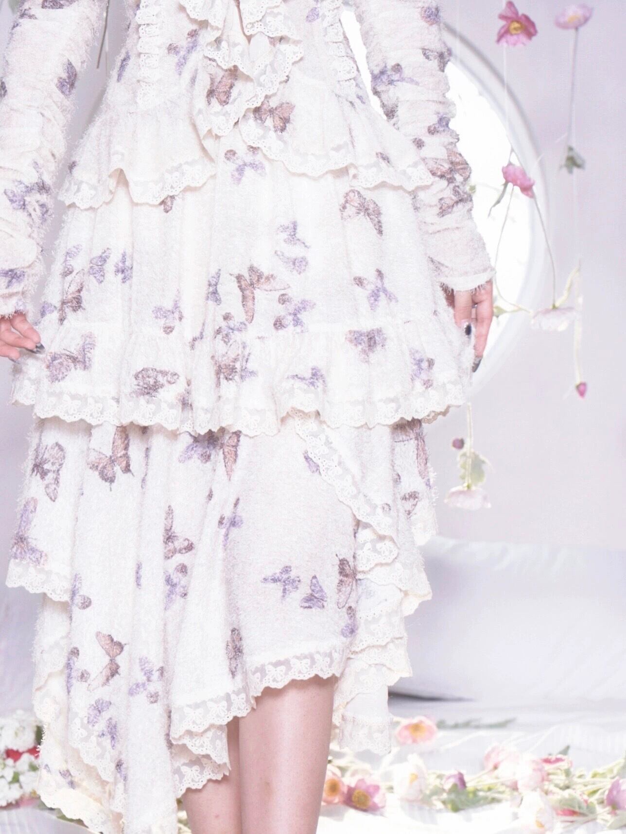 スカート 黒 ボトムス 花柄 紫 白 ガーリー 原宿
