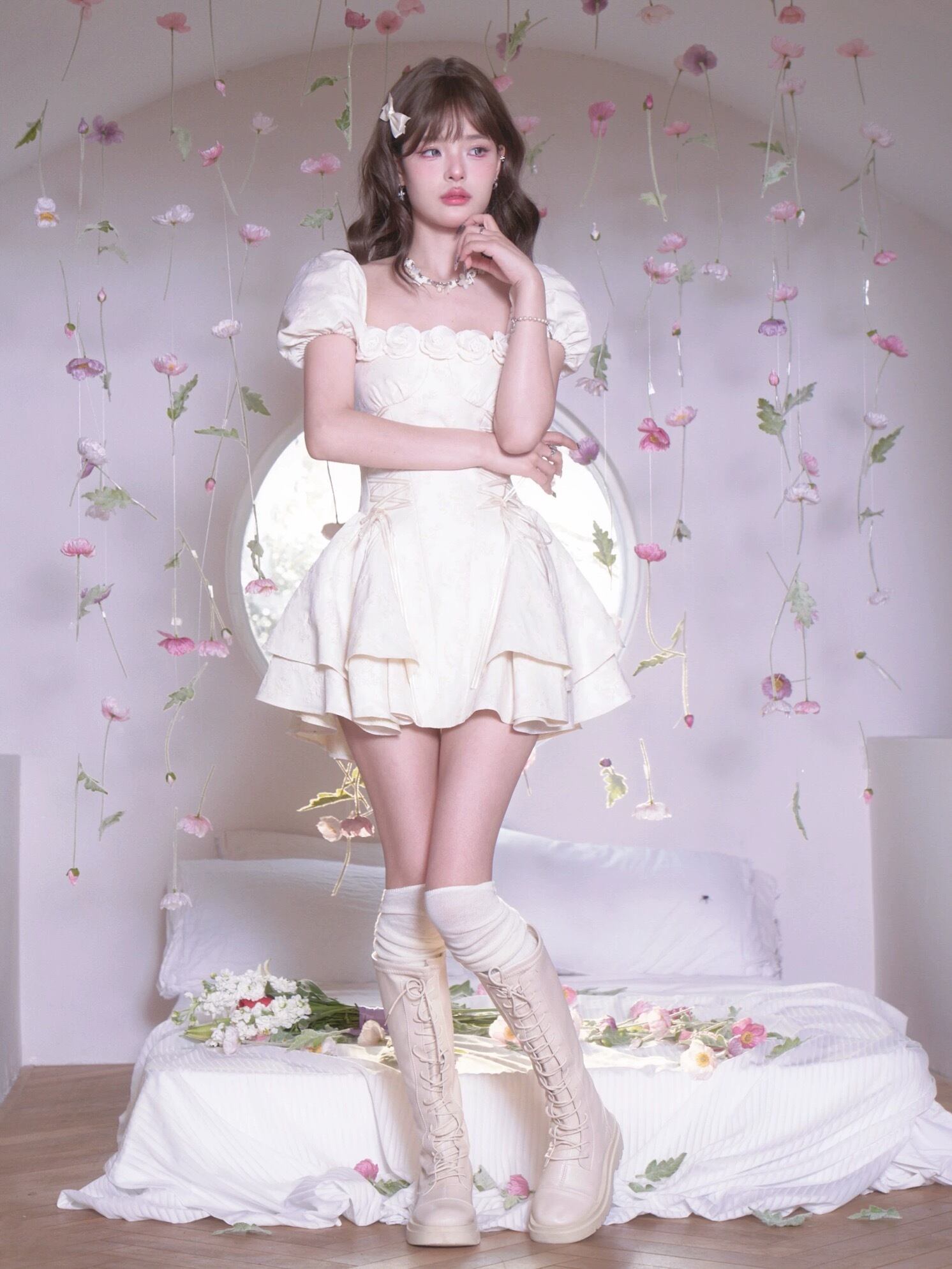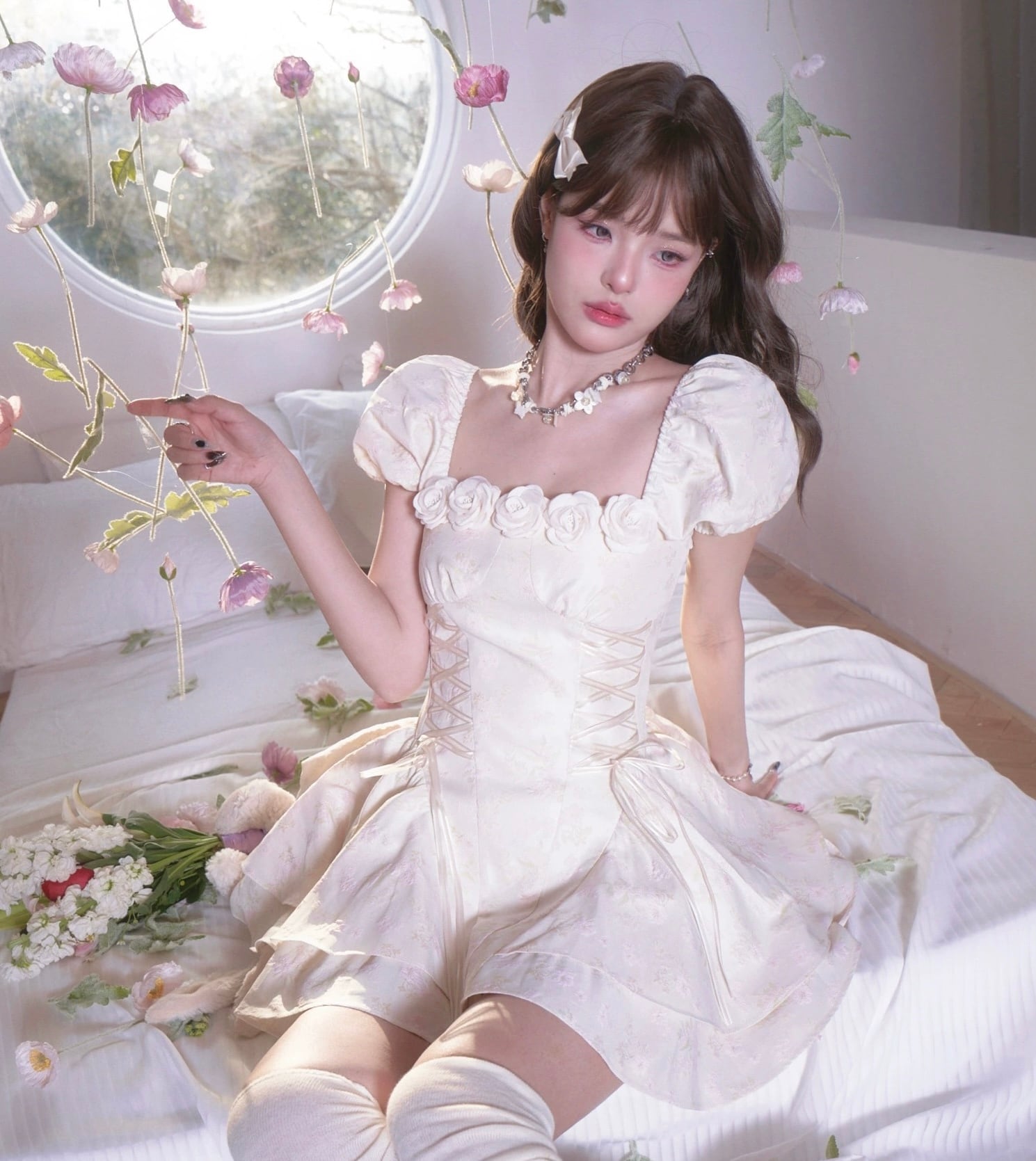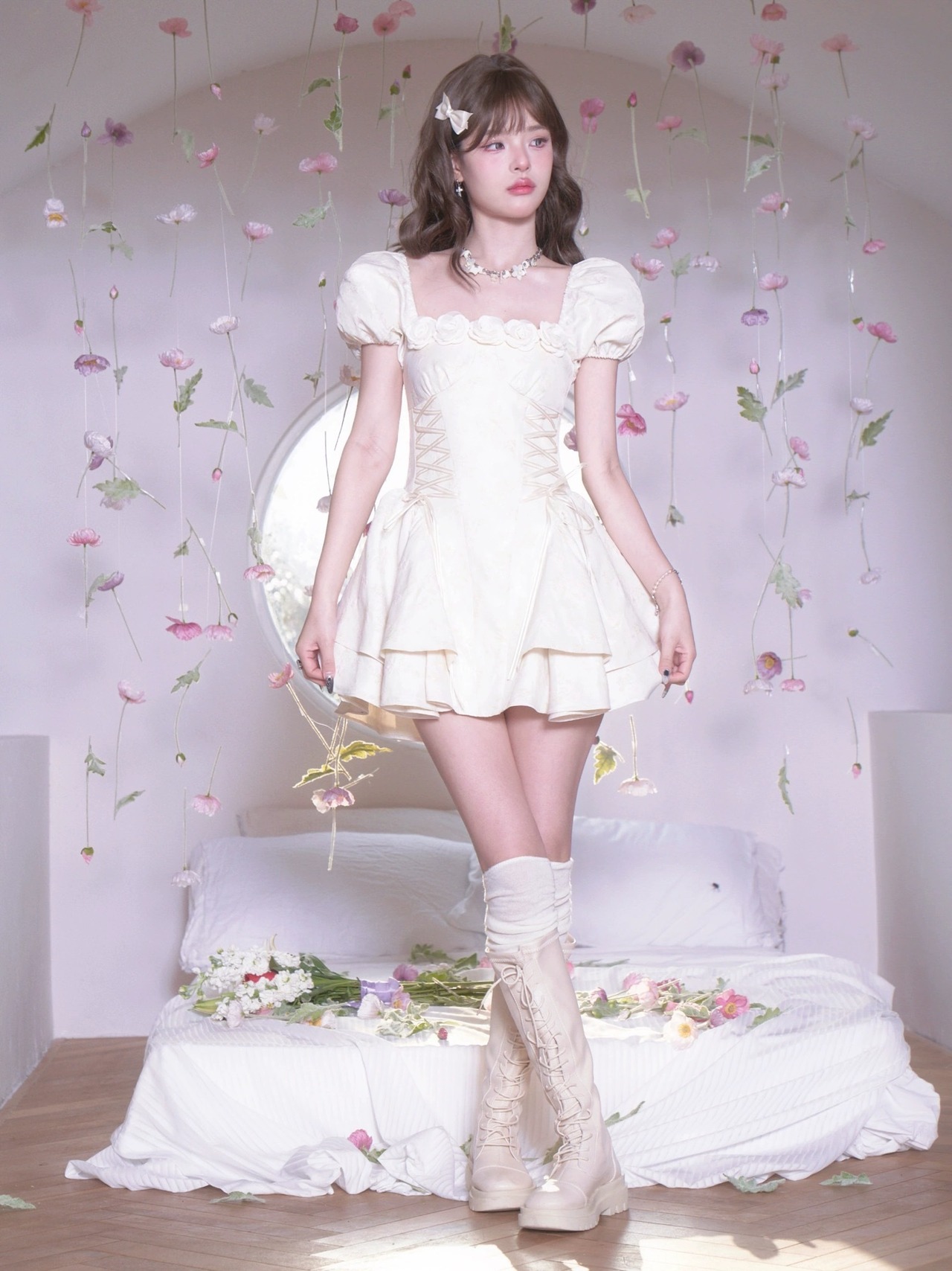 白 ワンピース お嬢様 エレガント ホワイト ガーリー