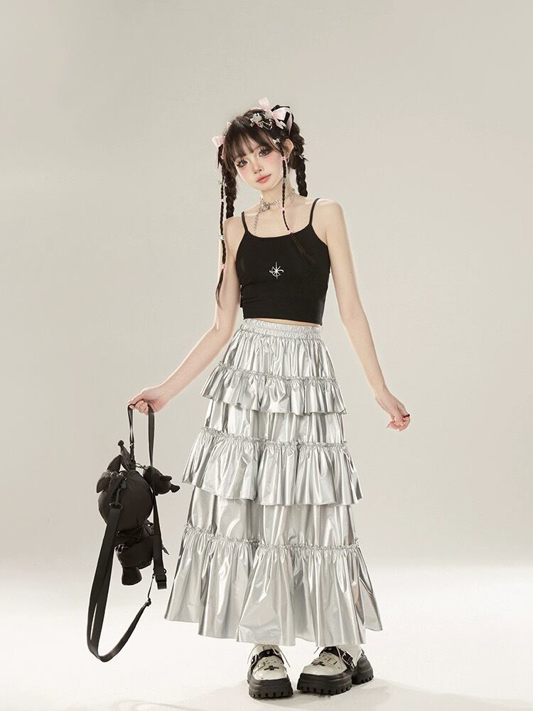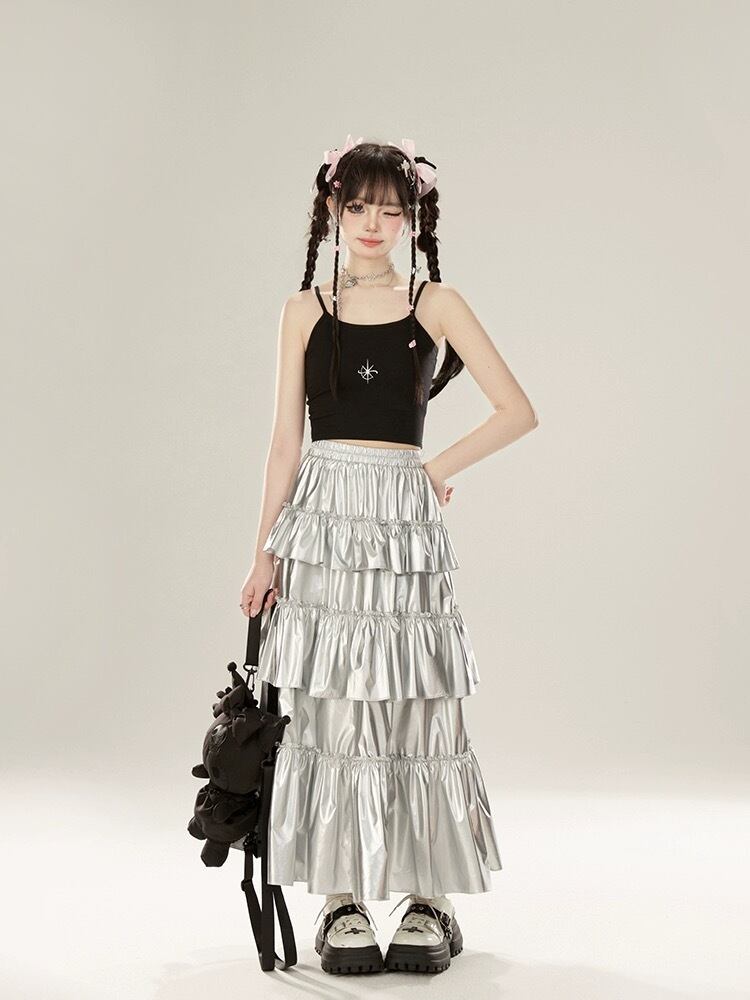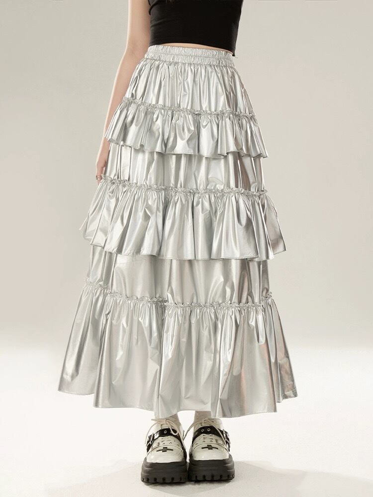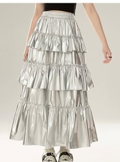 シルバー ガーリー ボトムス スカート カジュアル メタリック 銀色